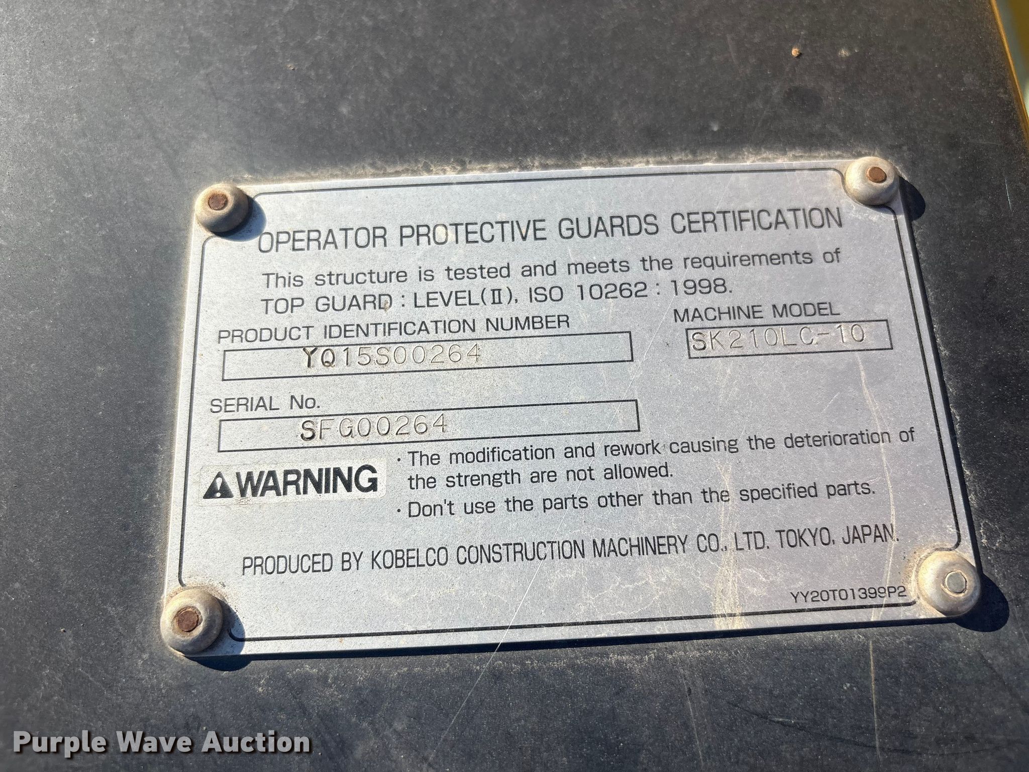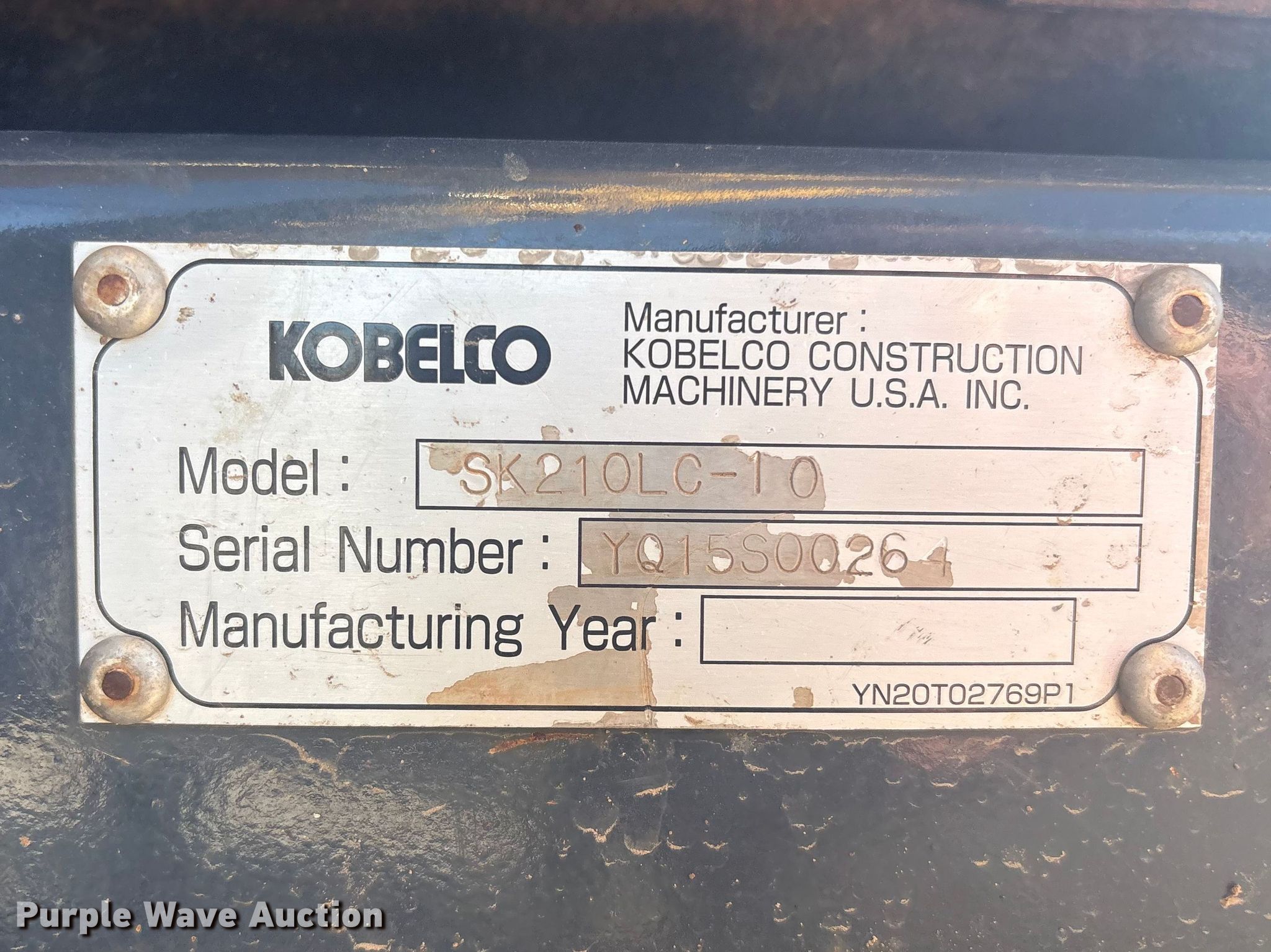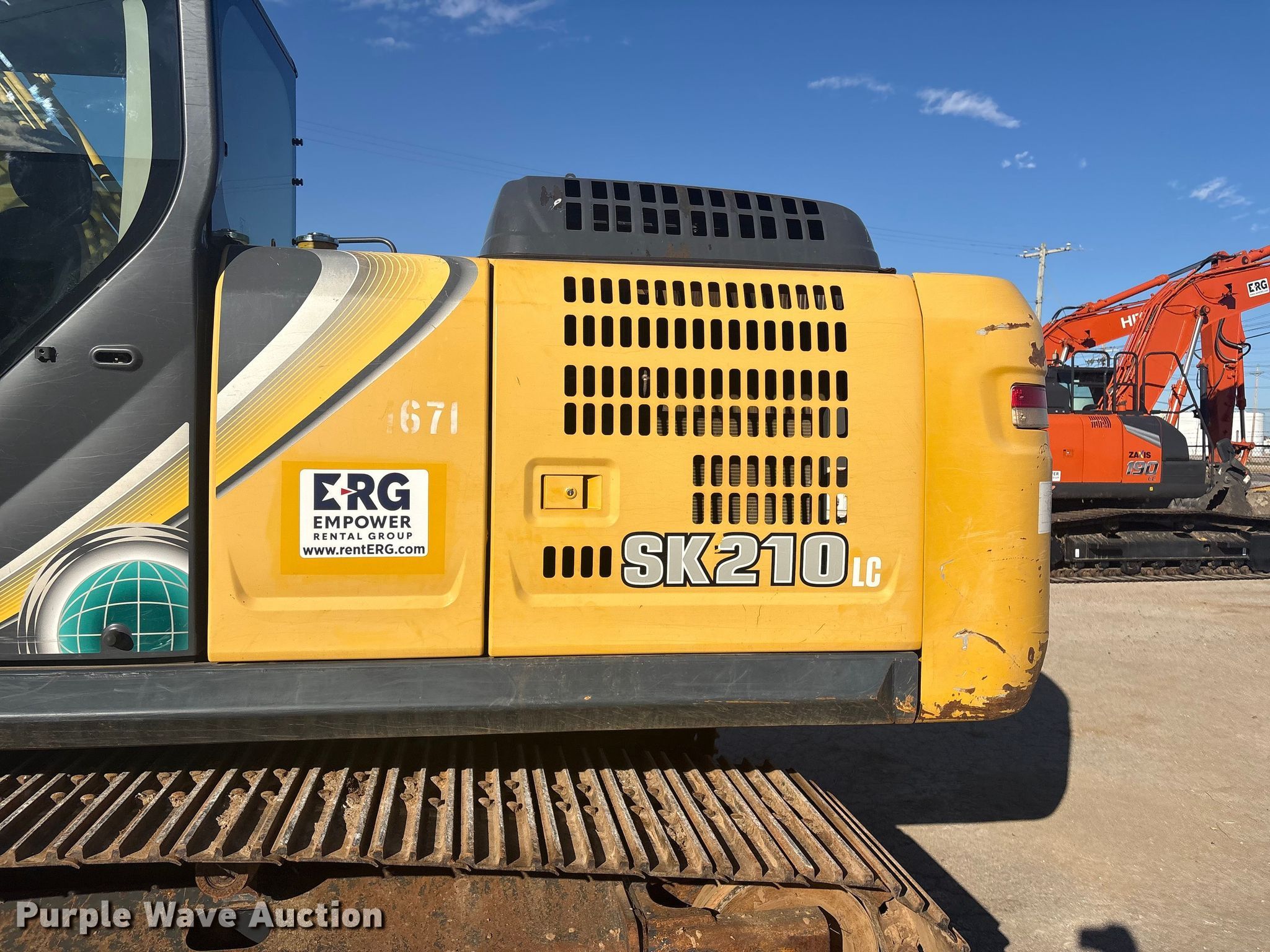 Purple Wave is selling a used Hydraulic Excavator in Oklahoma. This item is a Kobelco SK210LC-10 excavator with the following: Hours: 4,950 on meter, Serial: YQ15S00264, Unit #: 1671