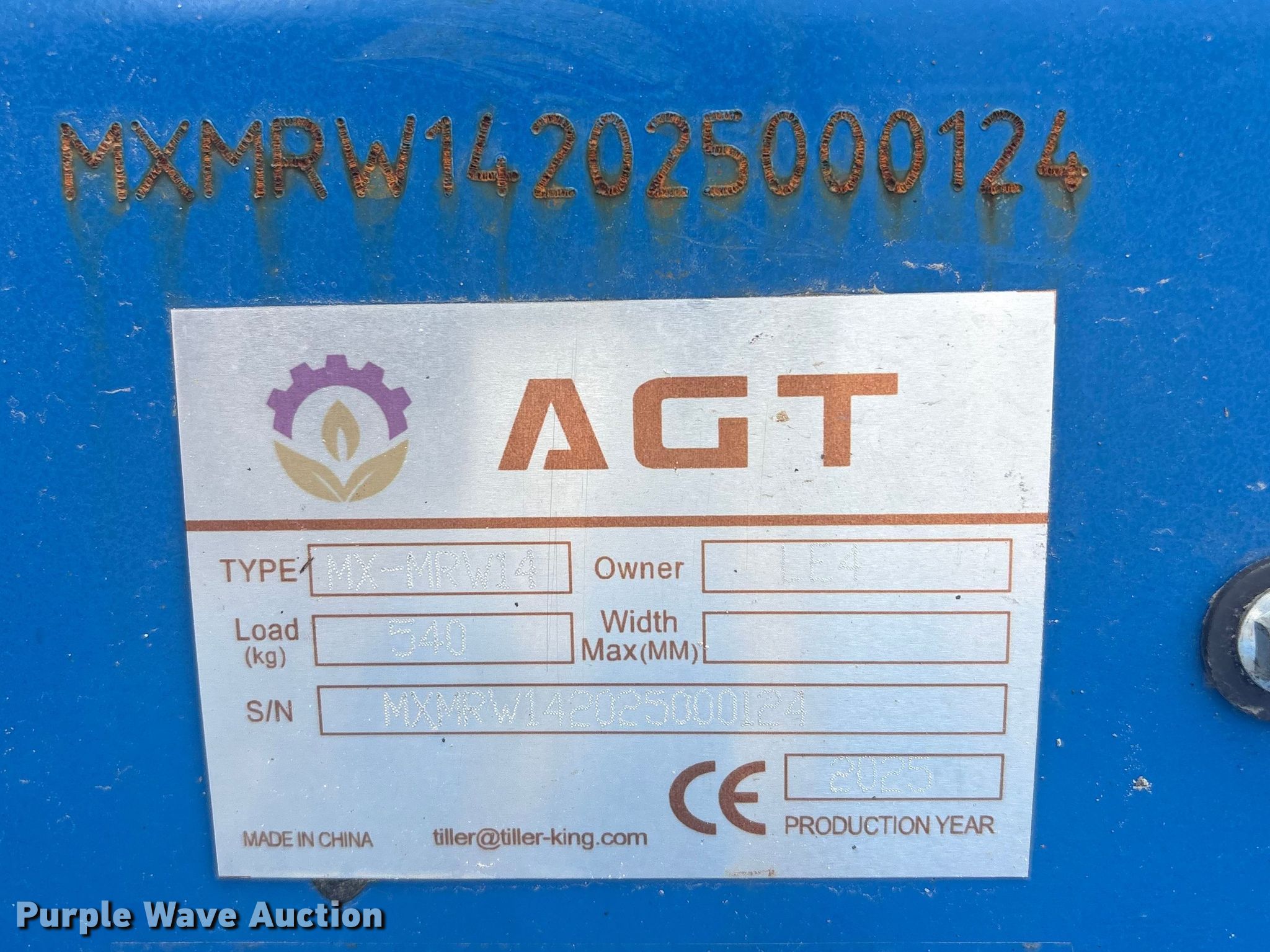 Purple Wave is selling a used Compact Utility Loader in Oklahoma. This item is a 2025 AGT MX-MRW14 compact utility loader with the following: Hours: 2 on meter, Serial: MXMRW142025000124