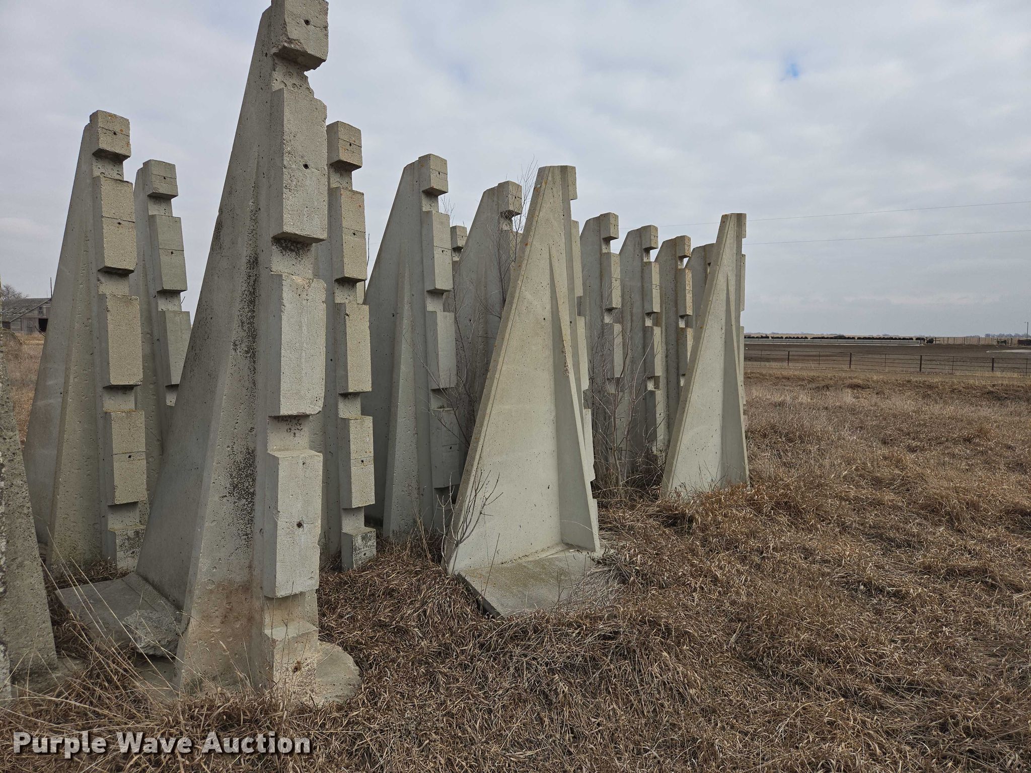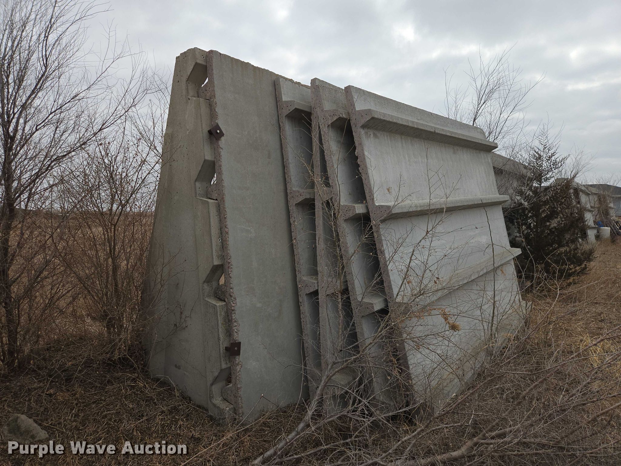Purple Wave is selling a used Building Materials in South Dakota. This item is a Concrete silo parts with the following: Approx. 200' of wall panels, Approx. (80) buttresses, Clamps