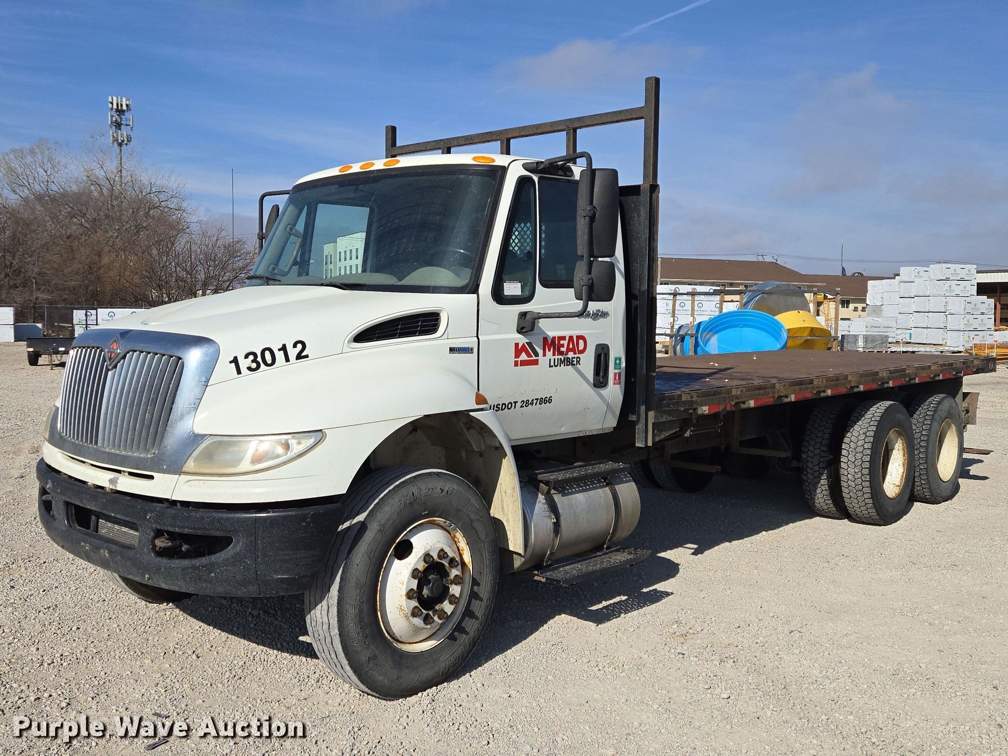 2011 International 4400 SBA flatbed truck. Miles: 432,814 on odometer, Hours: 12,447 on meter, VIN: 1HTMSAZR8BH326414. Engine Displacement: 9.3L, Cylinders: 6, Fuel type: Diesel. Transmission Automatic. Chassis Axles: Tandem, Suspension: Air, Brakes: Air. Interior AC, Heat. Features Bed Flatbed, Length: 21' 6", Width: 91" Forklift mount.. Tires Size: 11R22.5. Notes Engine issues, head gasket needs replaced , Windshield chipped or cracked, Jump start required during on-site data collection. Nebraska title. Title distribution may be delayed up to 14 days from verification of funds. Mead Lumber Company Inc.. Norfolk, NE 68701