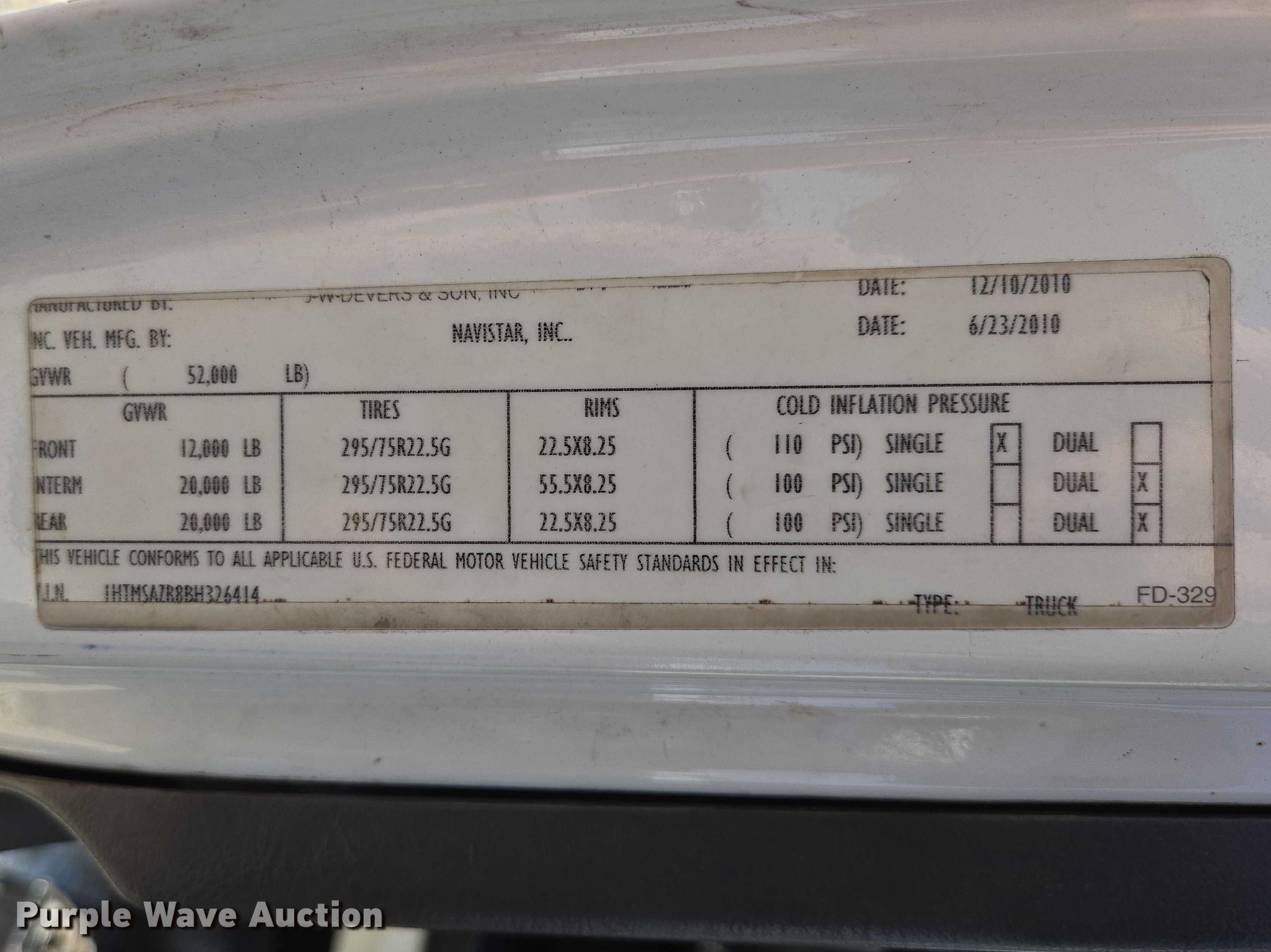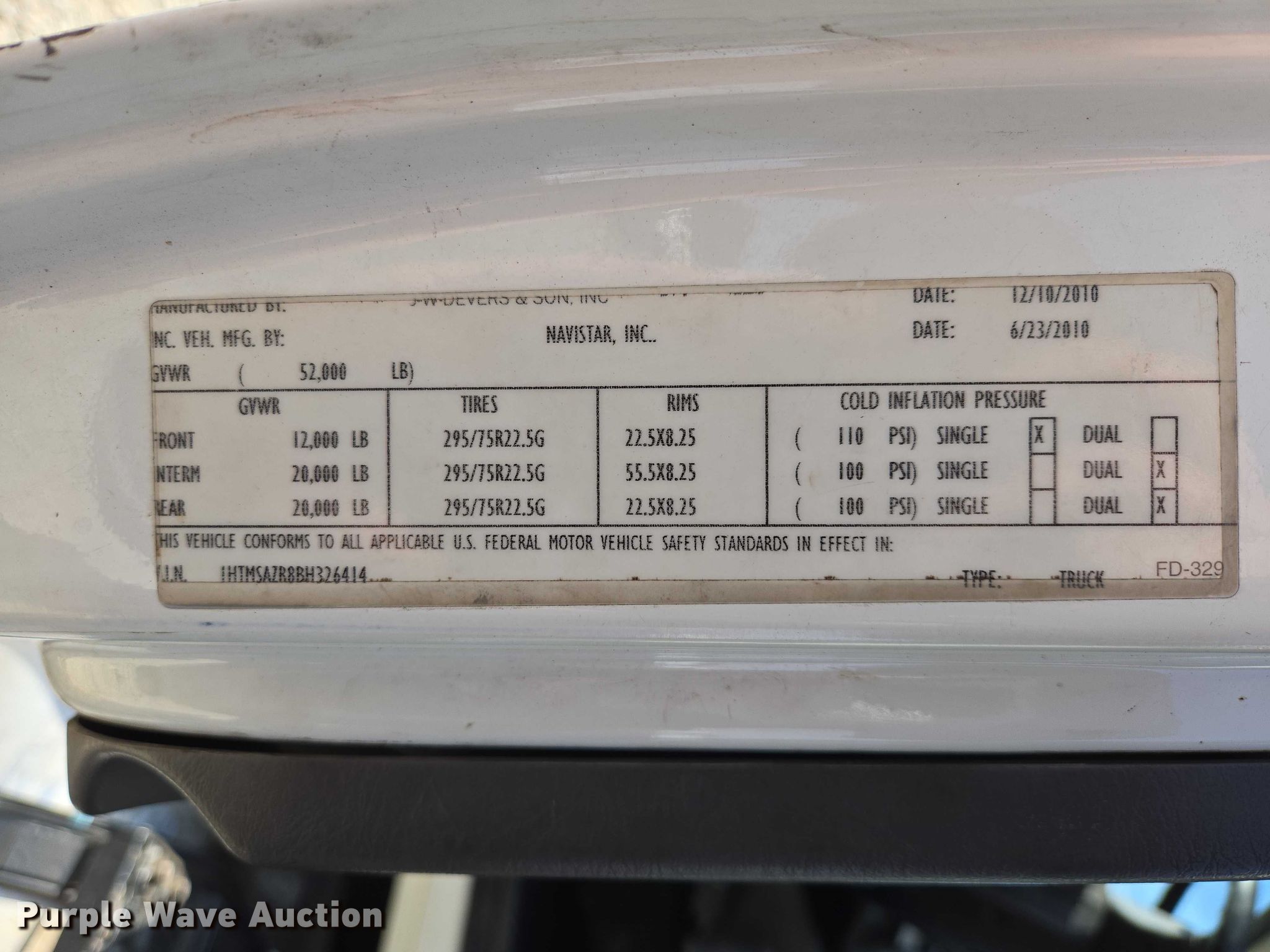 • VIN: 1HTMSAZR8BH326414
