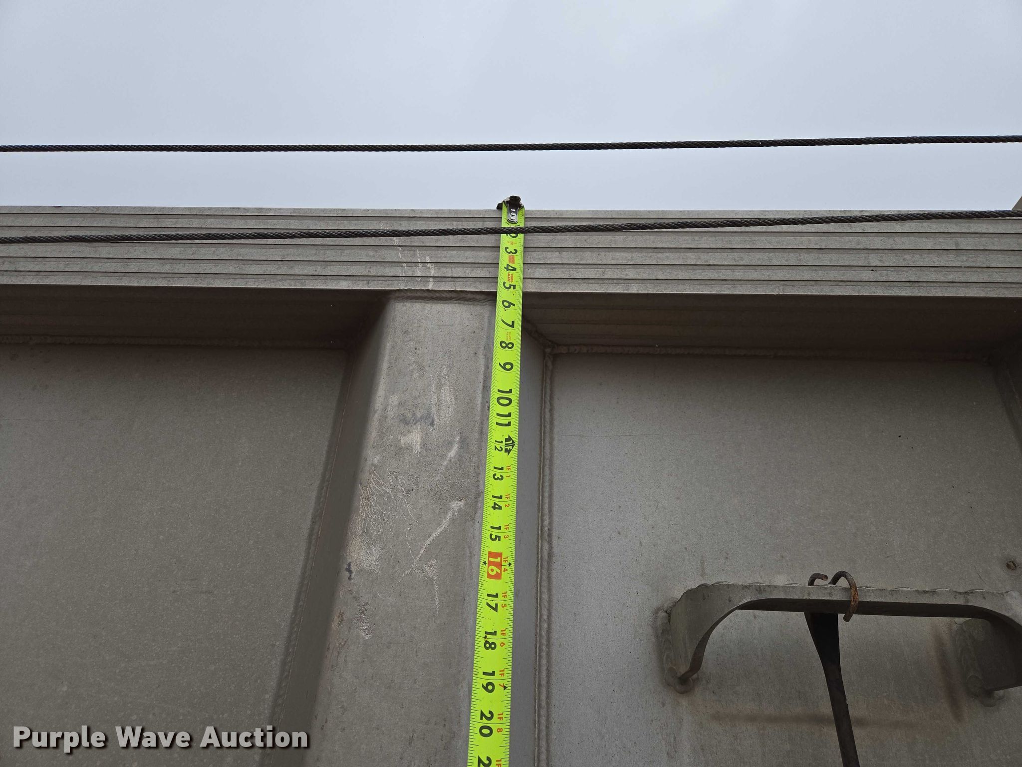 1994 Cornhusker end dump pup trailer. VIN: 1T91C1939R0007048. Dimensions Overall Length: 40', Width: 96", Body Length: 14' 2", Width: 94", Side height: 58". Features Body type: Aluminum, Ram: Single, End gate: Air operated. Chassis Hitch: Pintle, Landing gear: Single, Suspension: Spring, Brakes: Air, Axles: Triple. Tires Steel wheels, Size: 11R22.5. South Dakota title. Title distribution may be delayed up to 14 days from verification of funds. Wynia Construction. Hot Springs, SD 57747