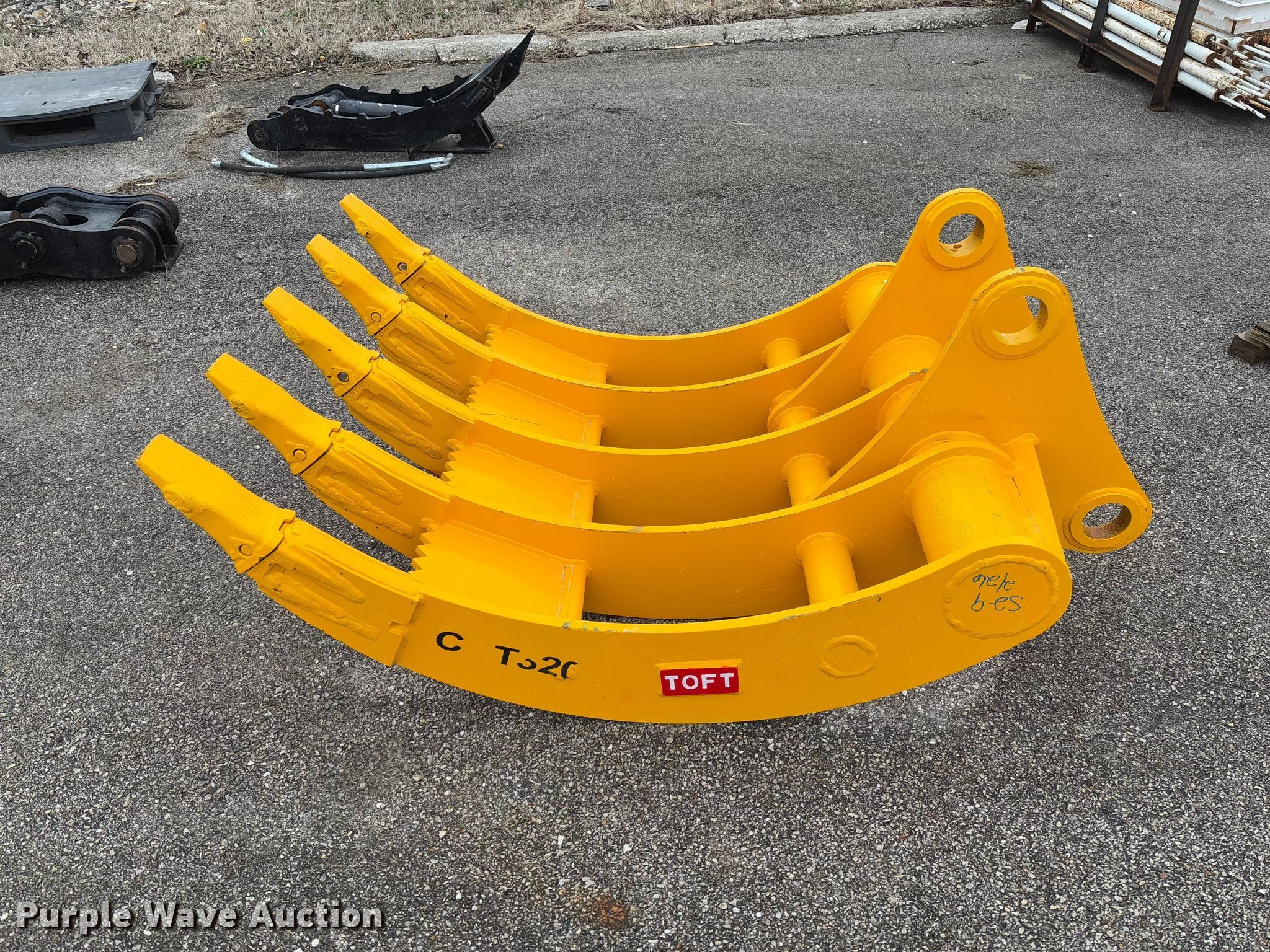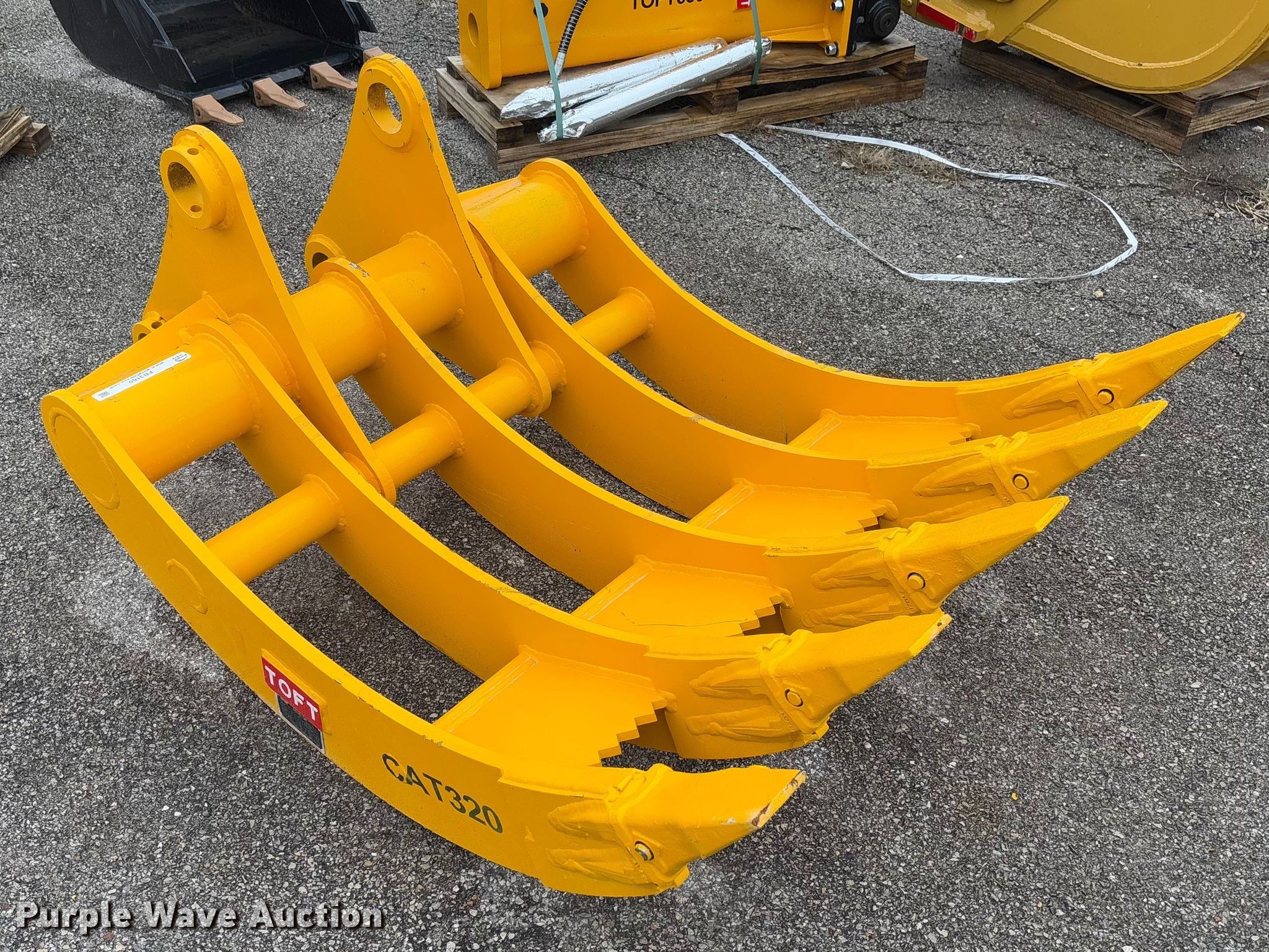 Purple Wave is selling a used Excavator Attach. in Missouri. This item is a 2025 Toft 08R excavator Rake with the following: Serial: TOFTER25804, Width: 42", Fits Caterpillar 320 hydraulic excavator
