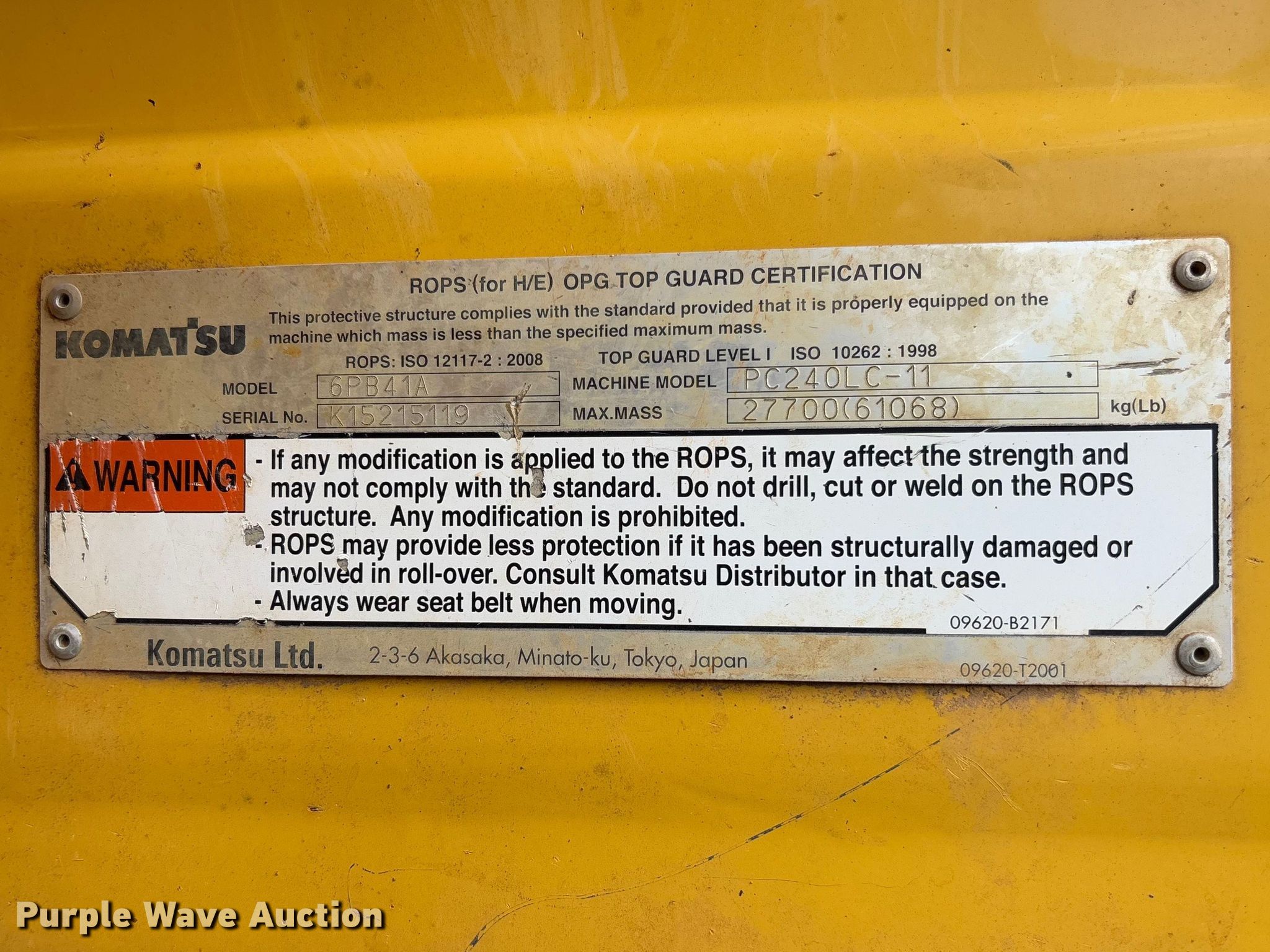 This 2016 Komatsu PC240LC-11 excavator will sell to the highest bidder regardless of price.