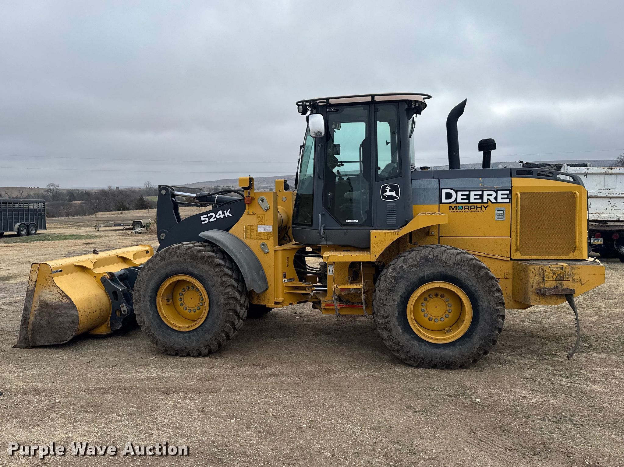 Purple Wave is selling a used Wheel Loader in Kansas. This item is a 2013 John Deere 524K wheel loader with the following: Hours: 2,071 on meter, Serial: 1DW524KZKDE651289