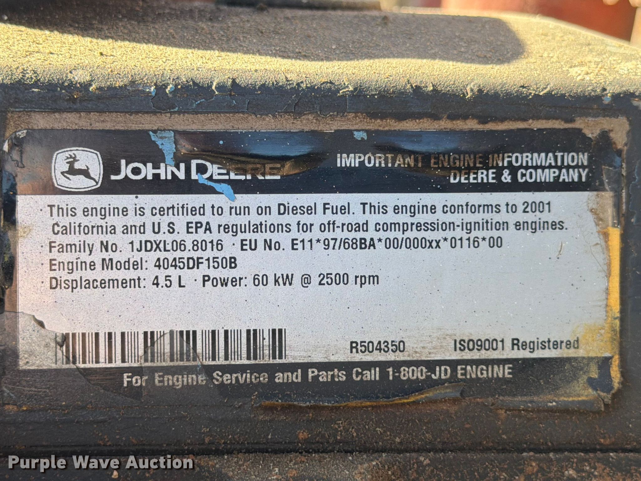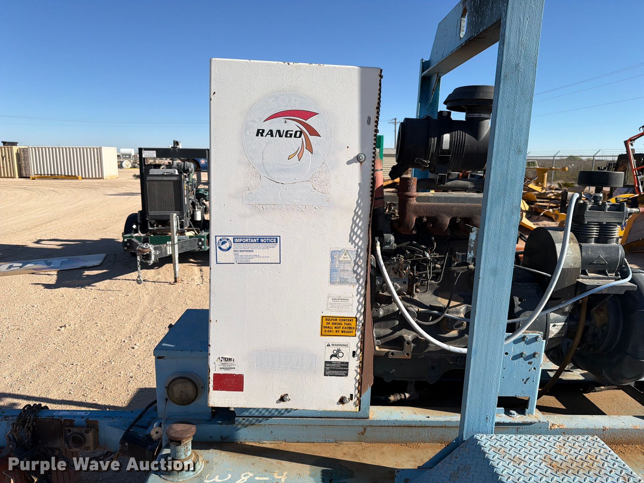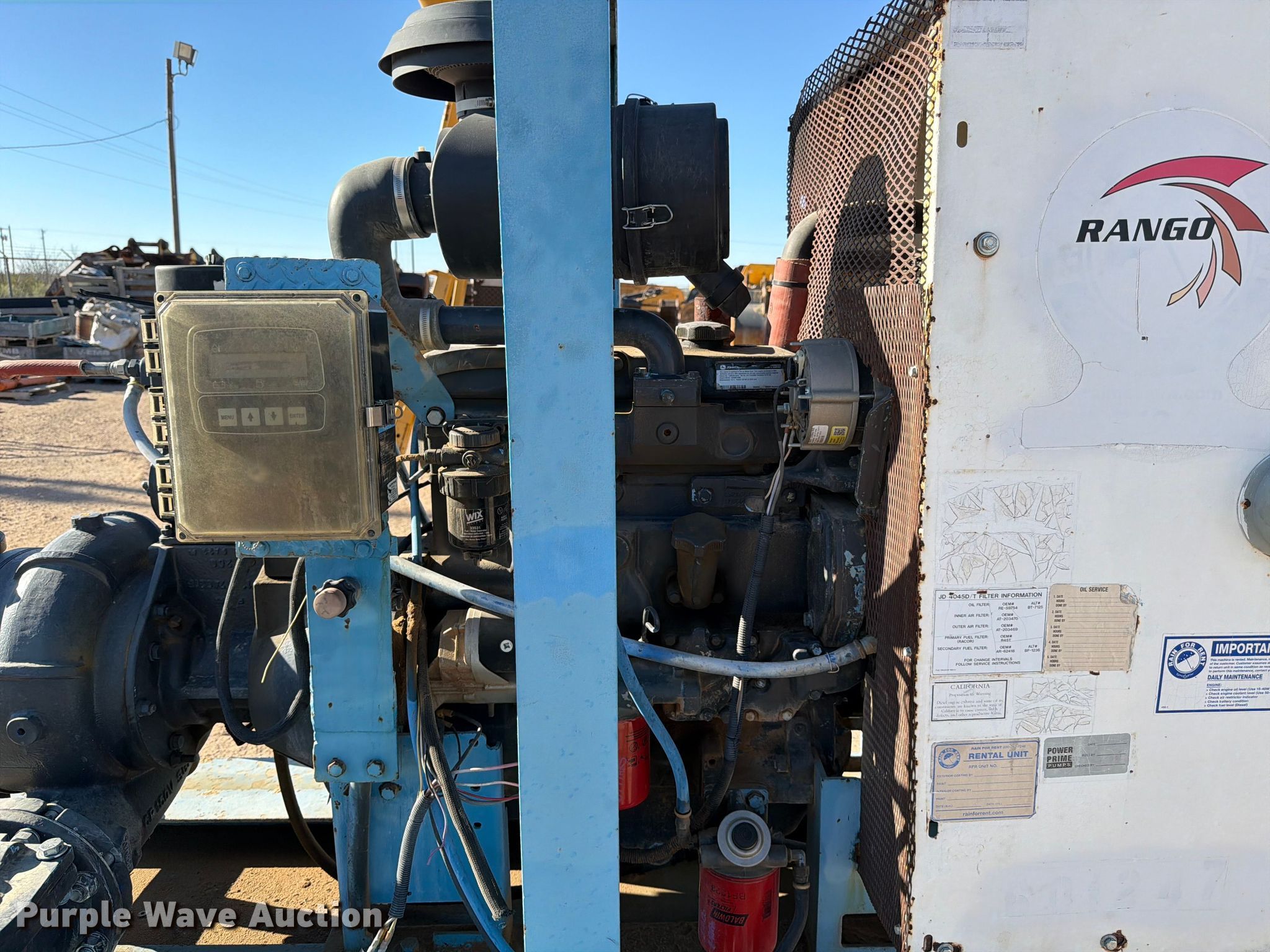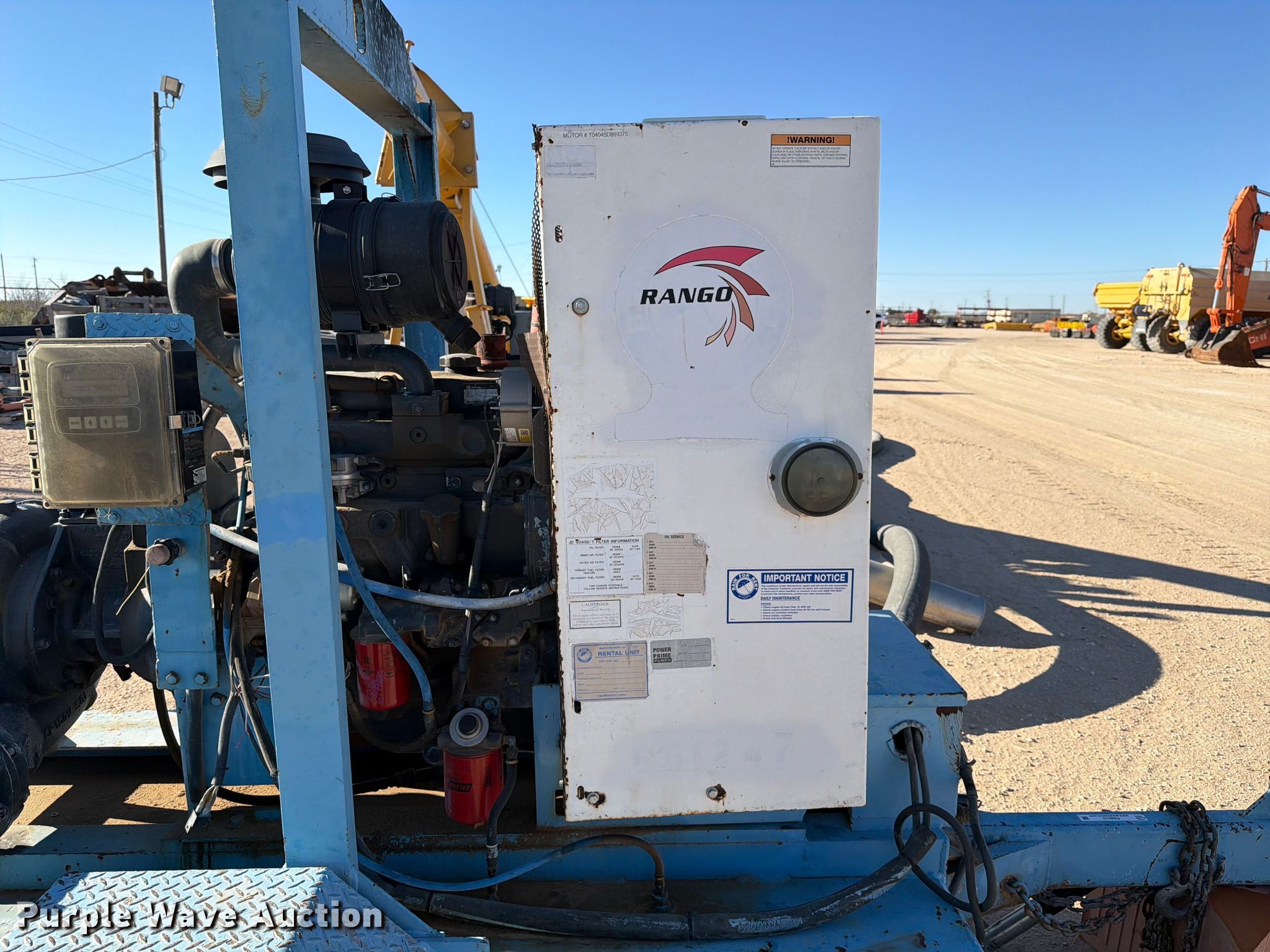 2023 Sykes CP1501 water pump. Hours: 6,841 on meter, Serial: 1564058. Dimensions Overall Length: 11', Width: 63". Engine John Deere 4045, Displacement: 4.5L, Cylinders: 4, Fuel type: Diesel, kW: 60. Features Inlet/outlet: 6", Fuel tank, Hitch: Pintle, Brakes: Electric. Tires Rear: 225/75R15. Notes Trailer jack not attached, Emissions system modified. This is worksite support equipment and will not come with a title. Transfer of ownership documentation will be a bill of sale. Rango. Monahans, TX 79756