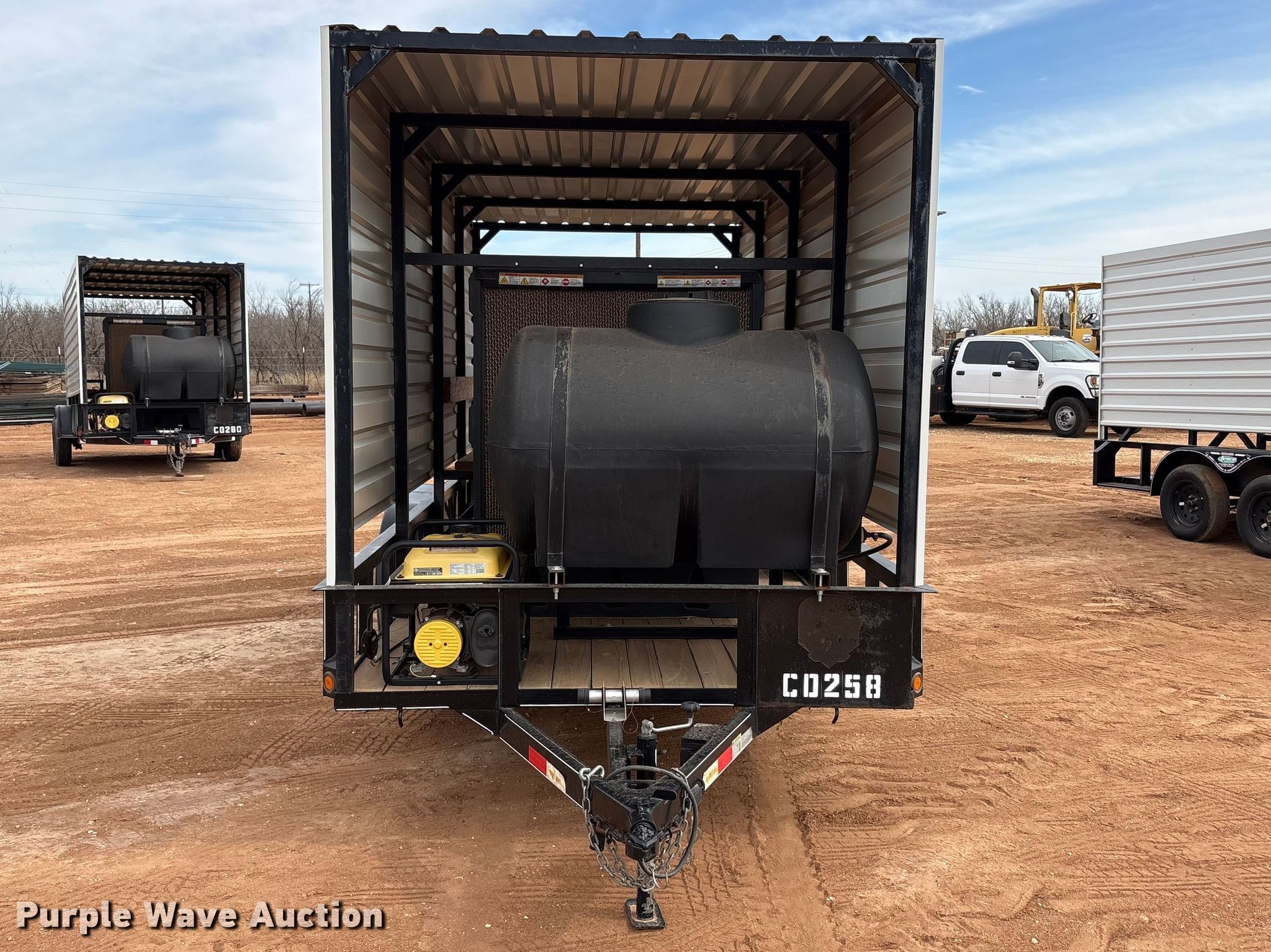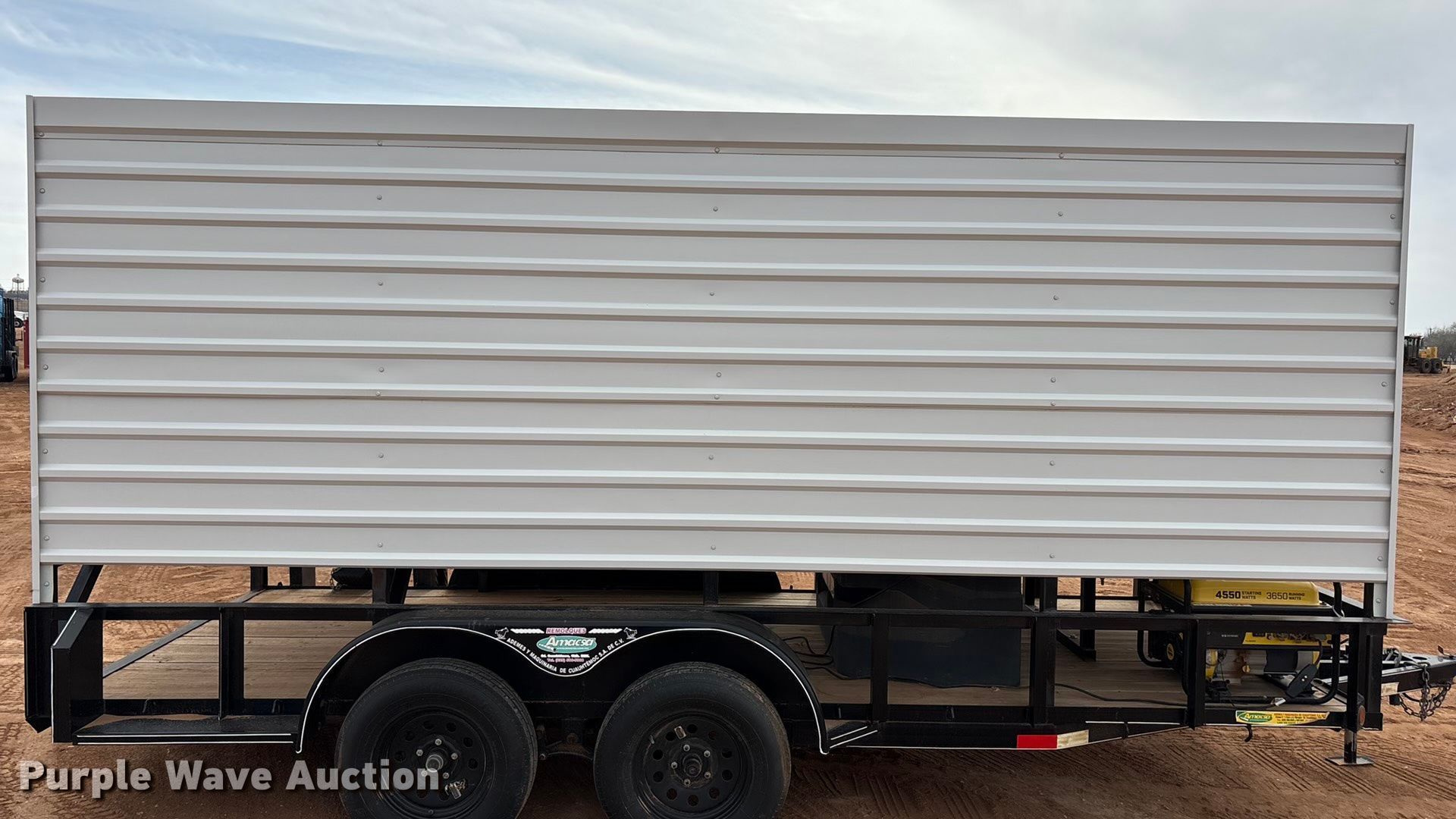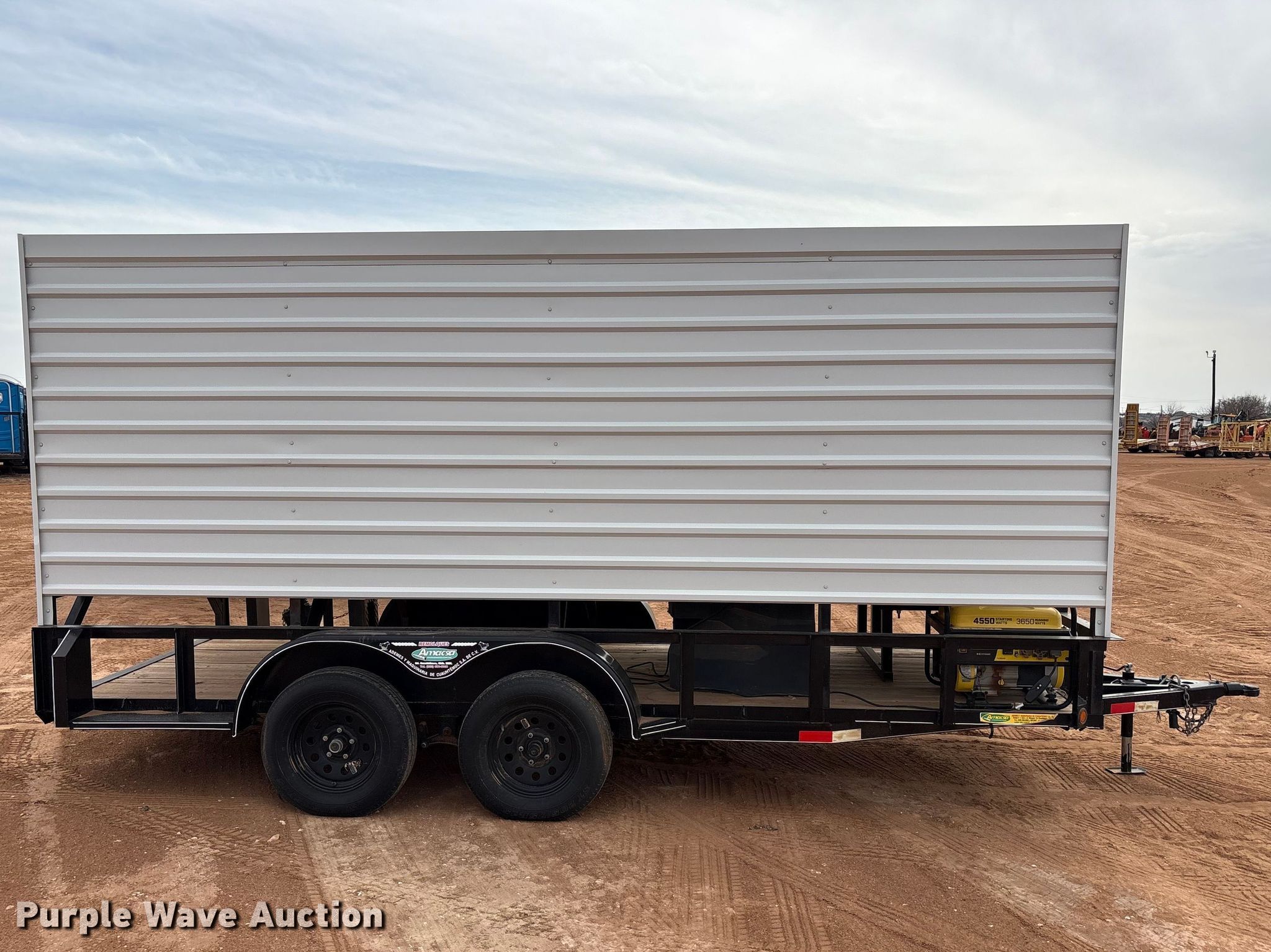 2022 Amacsa CB76X16ABPM3T cooling trailer. VIN: 3DCBCH2FONA000156, Unit #: CD258. Dimensions Overall Length: 19' 8", Width: 8' 1", Deck Length: 16', Width: 7' 1", Side height: 1' 4", Deck height: 1' 8". Features Deck type: Wood, Champion generator, PortaCool fan, Water tank. Chassis Ball hitch: 2", Landing gear: Single, Suspension: Spring, Brakes: Electric, Axles: Tandem, GVWR: 7,000 lbs, GAWR: 3,500 lbs. Tires Steel wheels, Size: 205/75R15. Texas title. Title distribution may be delayed up to 14 days from verification of funds. Caliper Energy Services. Snyder, TX 79549