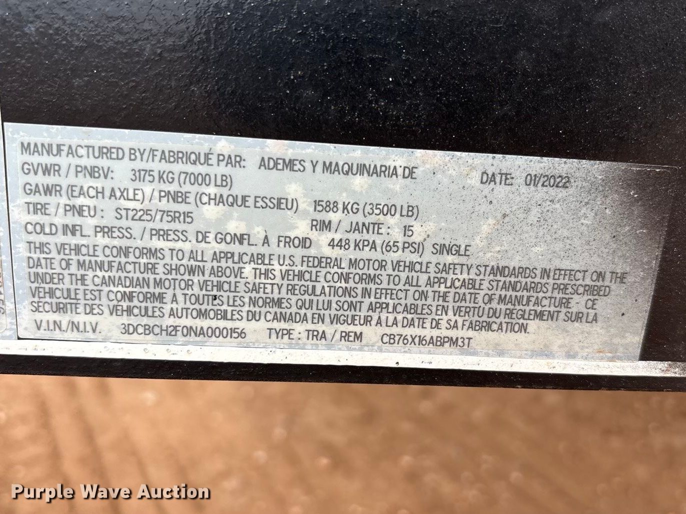 Purple Wave is selling a used Trailer Other in Texas. This item is a 2022 Amacsa CB76X16ABPM3T cooling trailer with the following: VIN: 3DCBCH2FONA000156, Unit #: CD258