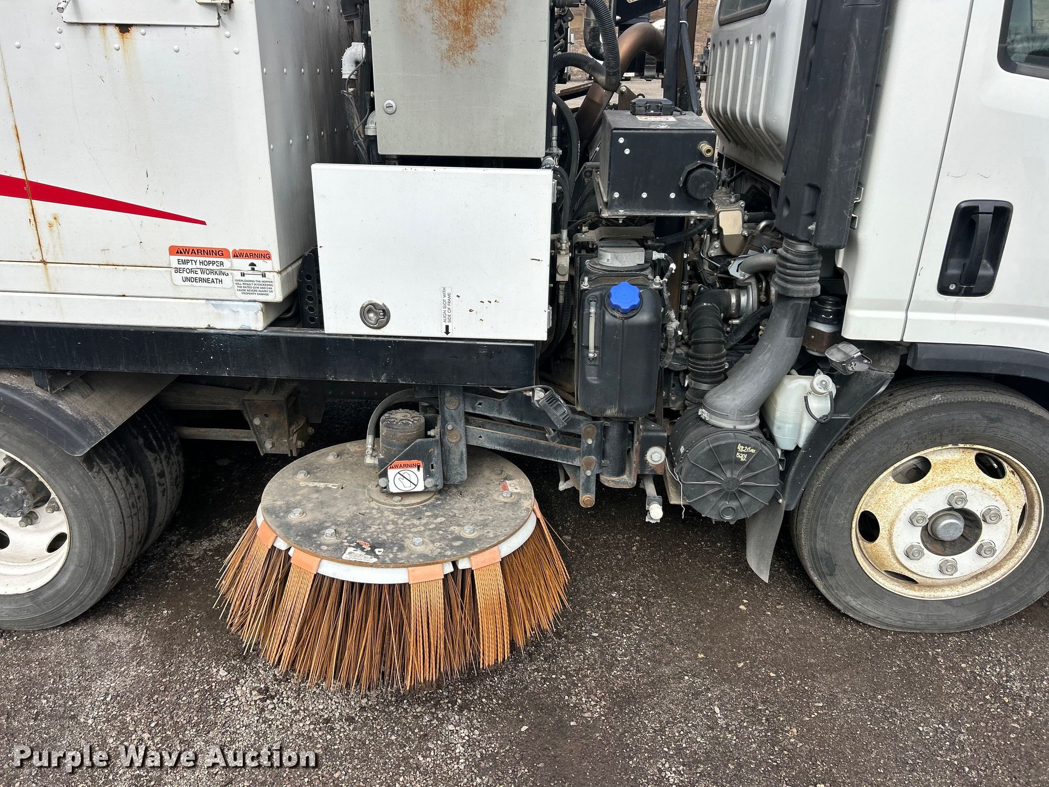 Purple Wave is selling a used Street Sweeper Truck in Missouri. This item is a 2018 Isuzu NRR street sweeper truck with the following: Miles: 48,581 on odometer, Hours: 5,252 on meter, VIN: JALE5W161J7303194
