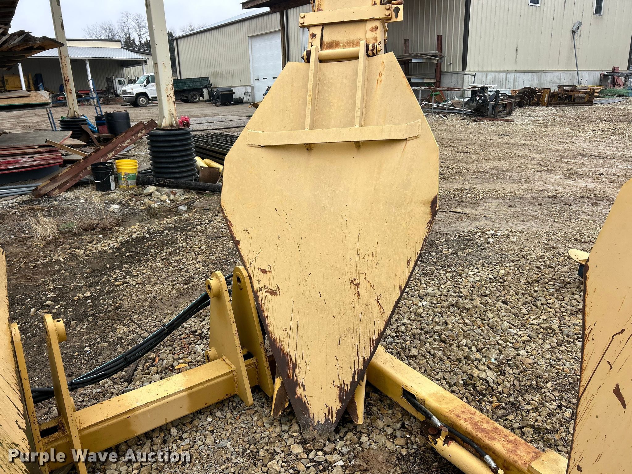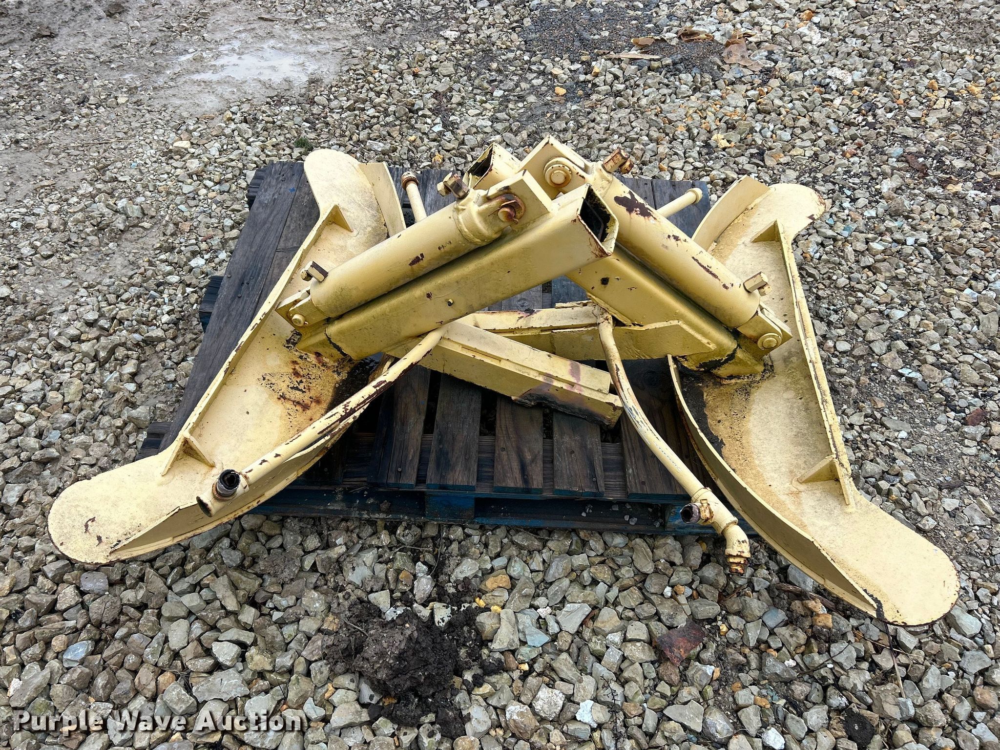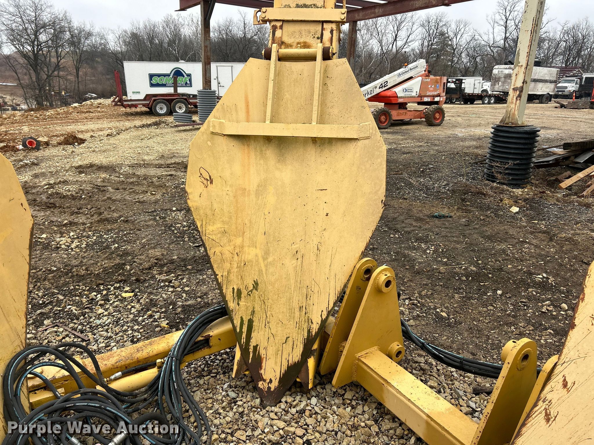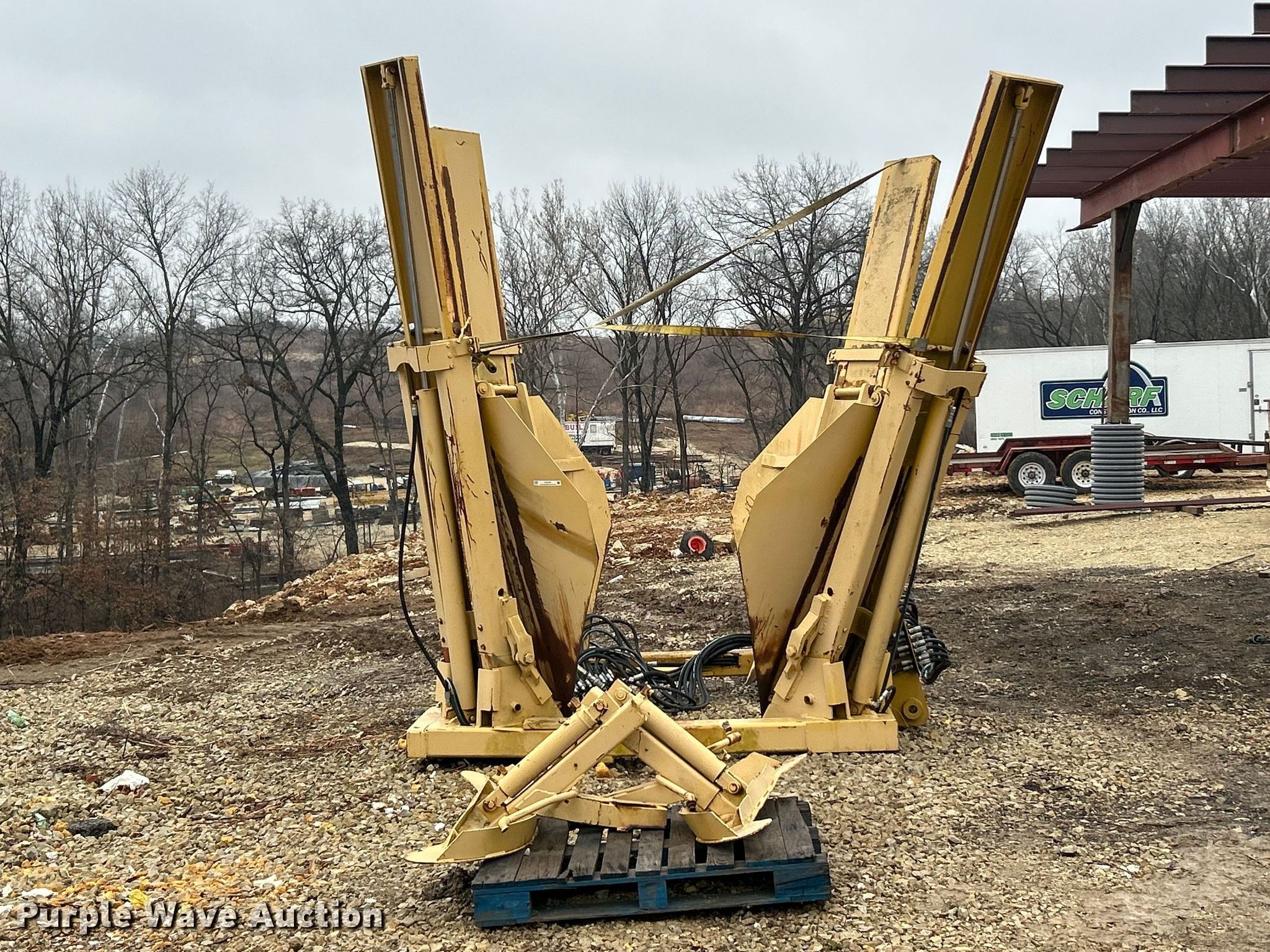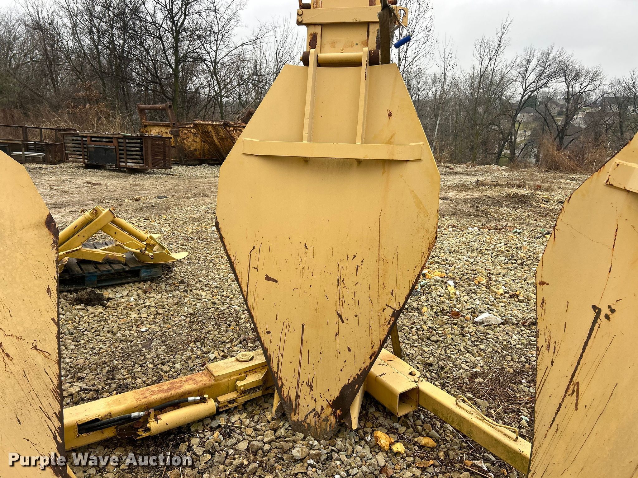Vermeer TS44 tree spade. Dimensions. Overall Length: 98", Width: 91", Height: 138". Features Pin: 1 3/4 ". Notes Pads included, Removed from Caterpillar 955 track loader. K.J. Unnerstall Construction Co.. Washington, MO 63090
