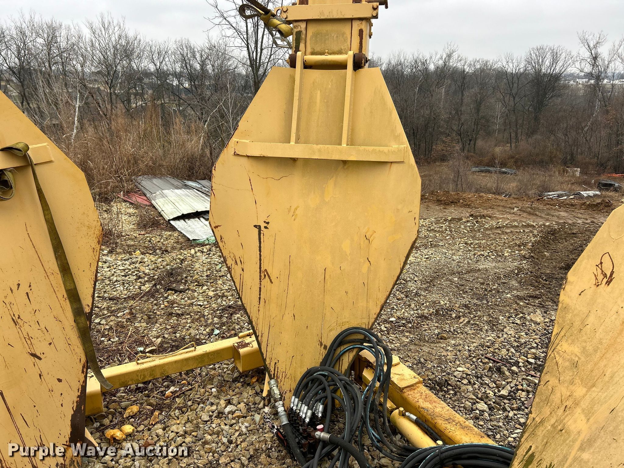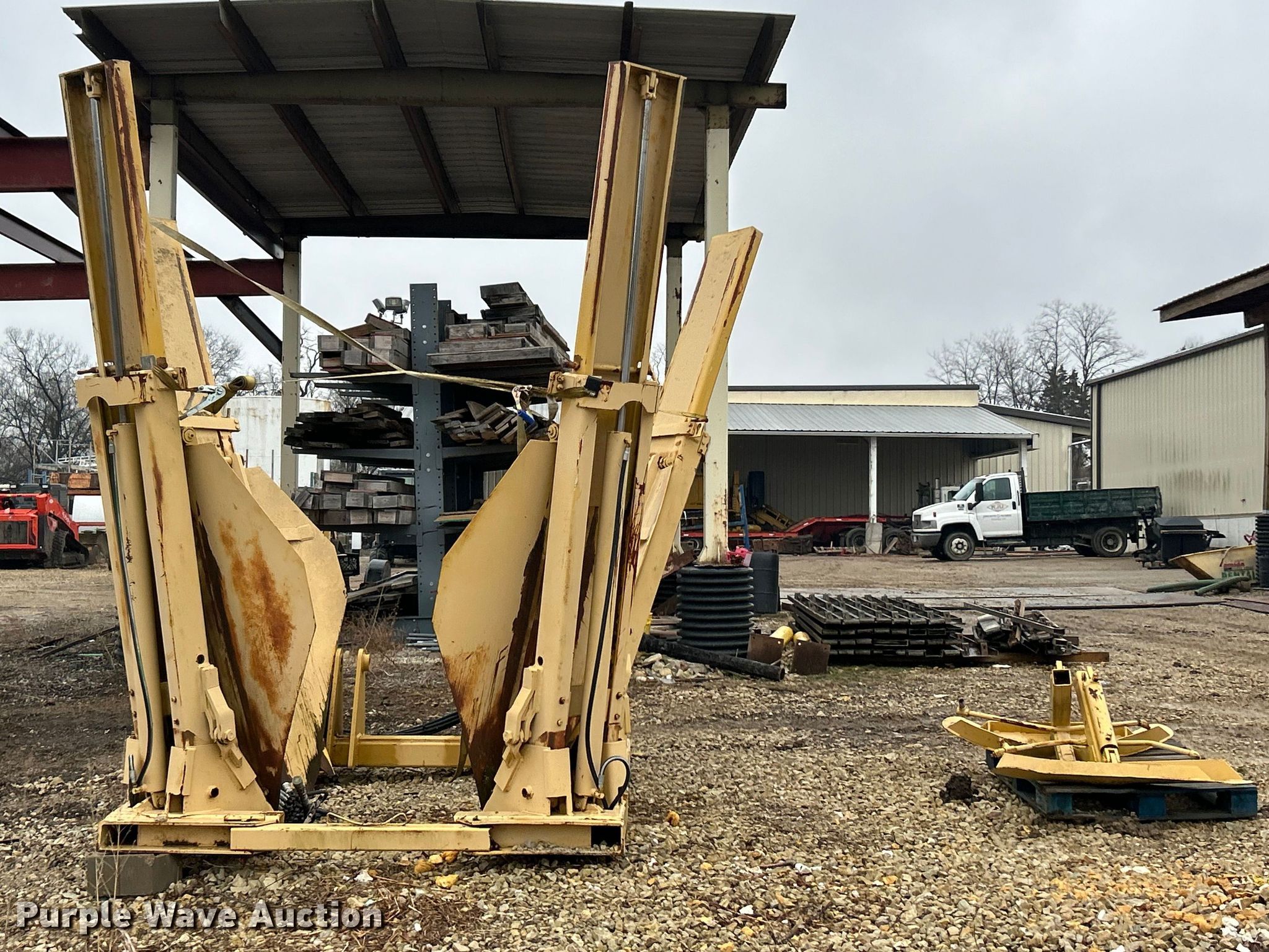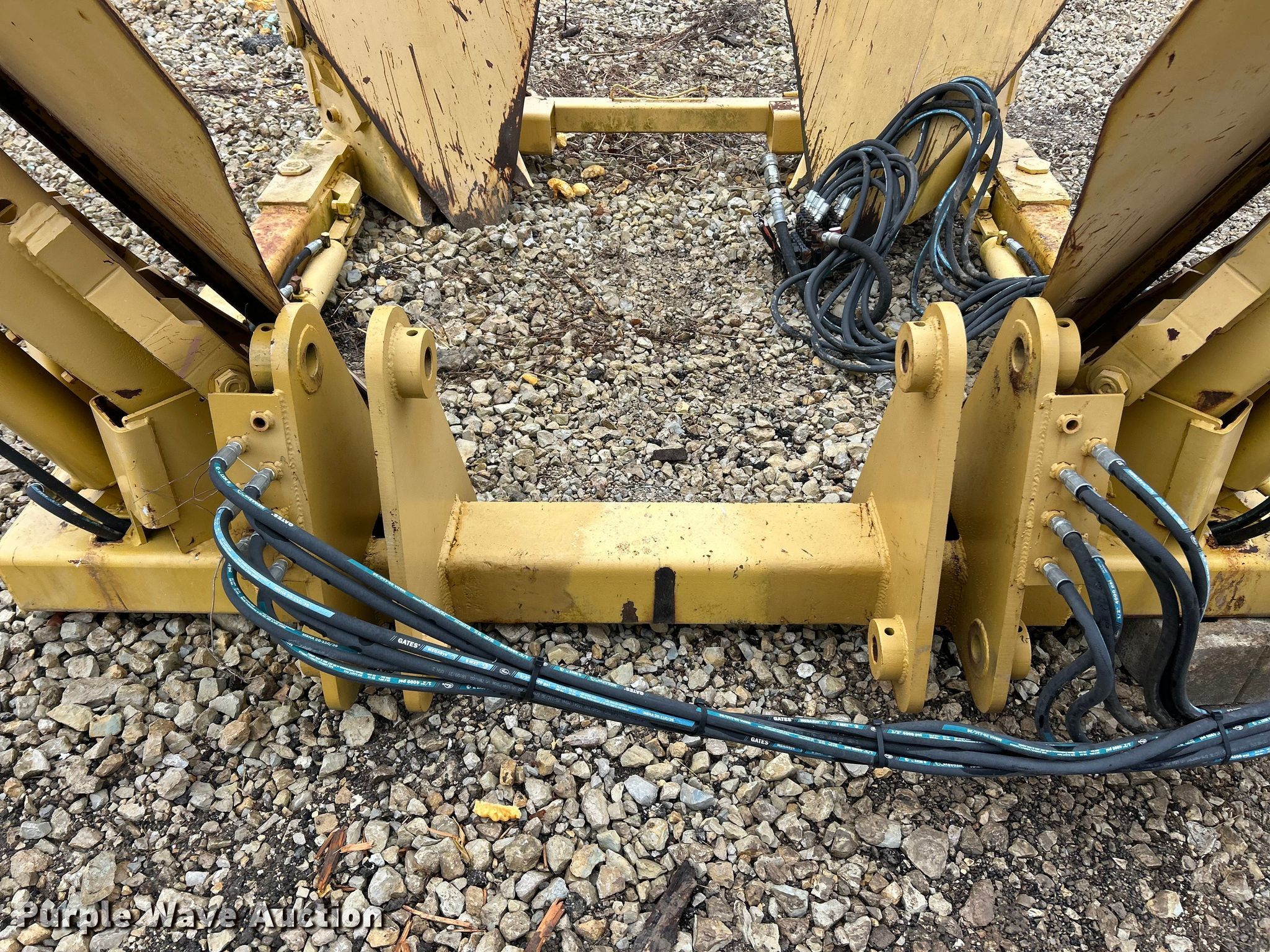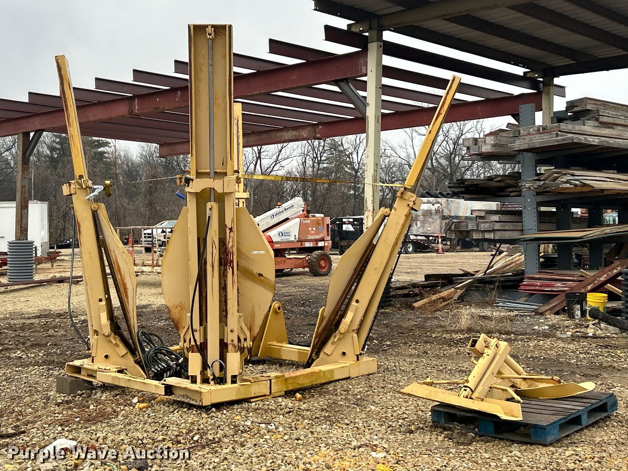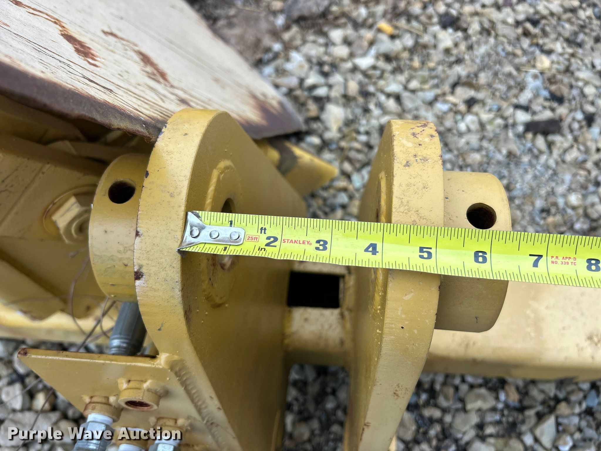 Vermeer TS44 tree spade. Dimensions. Overall Length: 98", Width: 91", Height: 138". Features Pin: 1 3/4 ". Notes Pads included, Removed from Caterpillar 955 track loader. K.J. Unnerstall Construction Co.. Washington, MO 63090