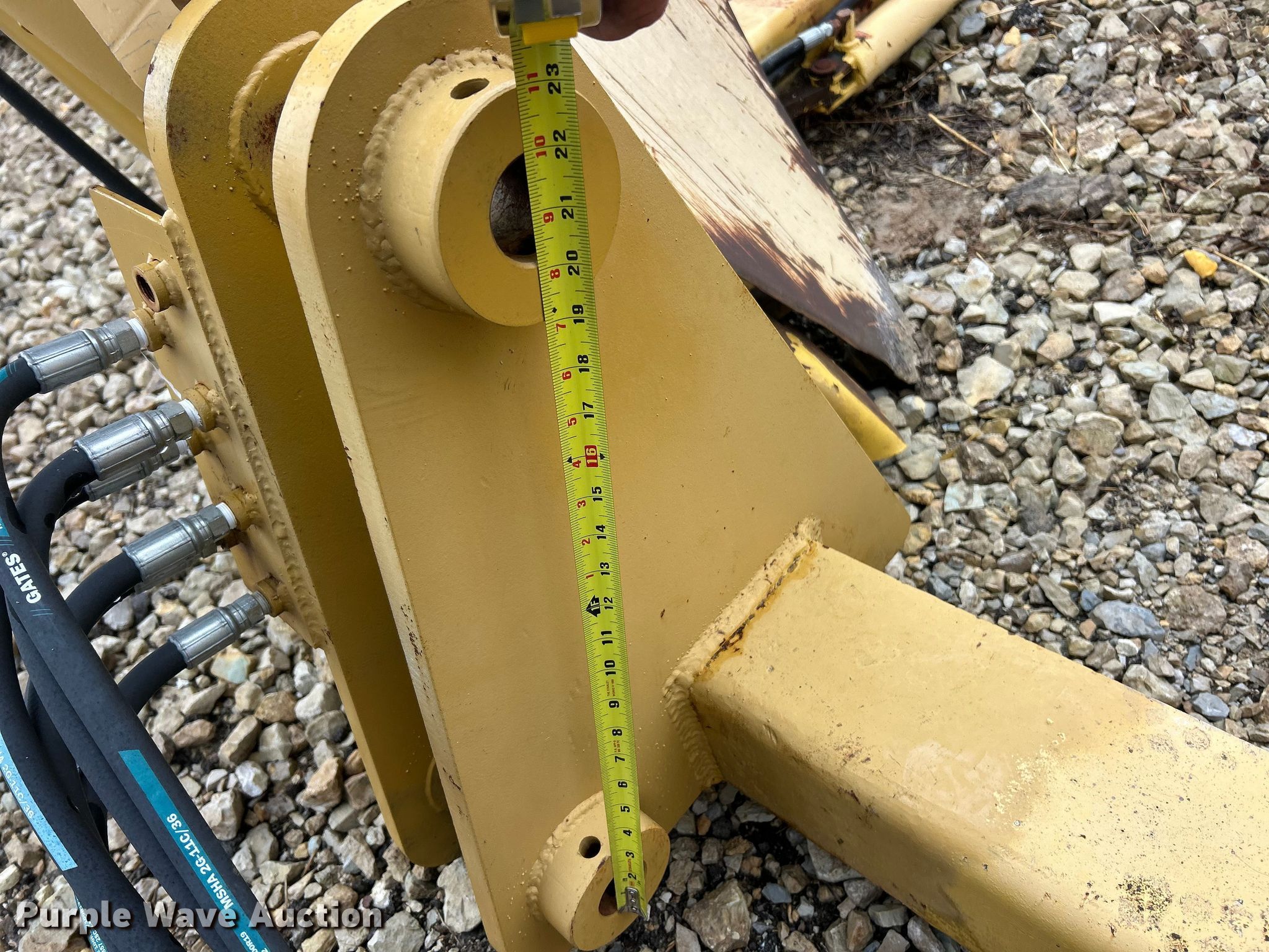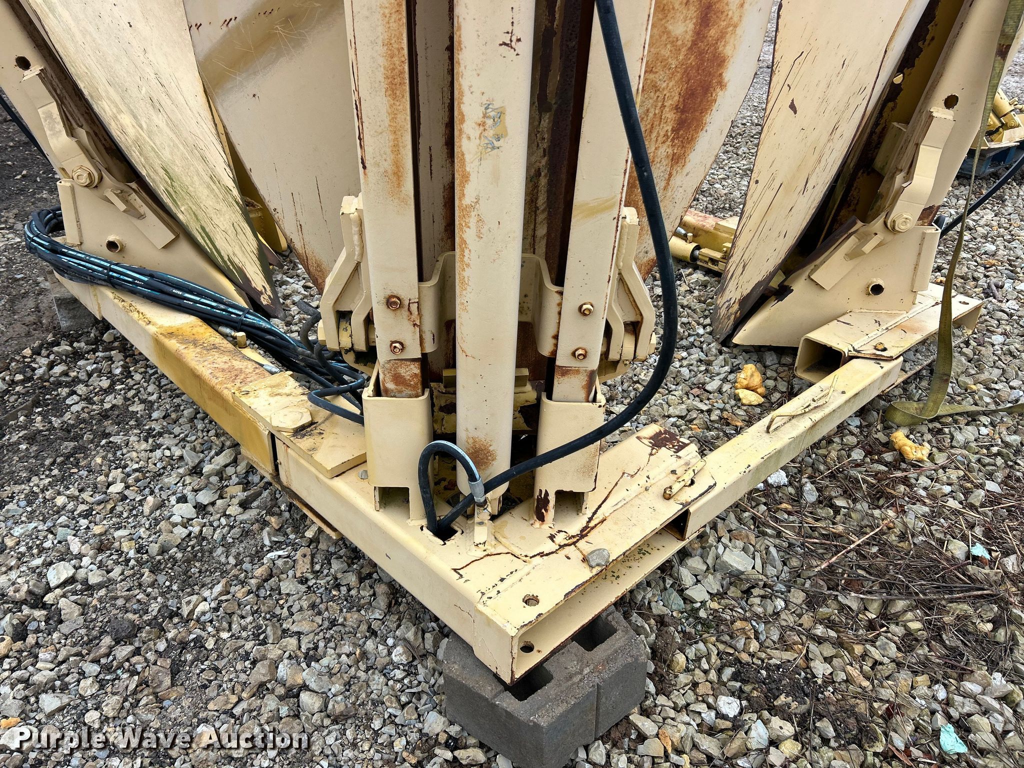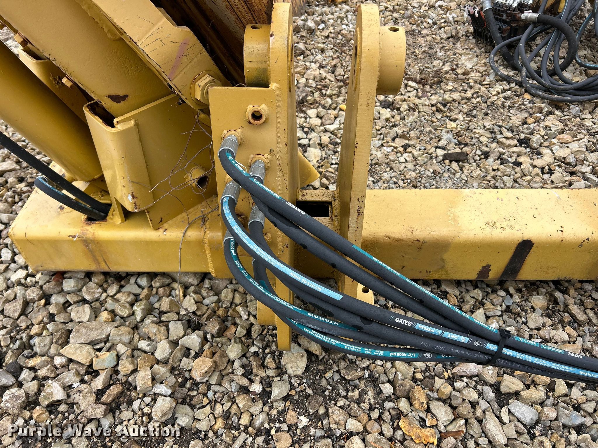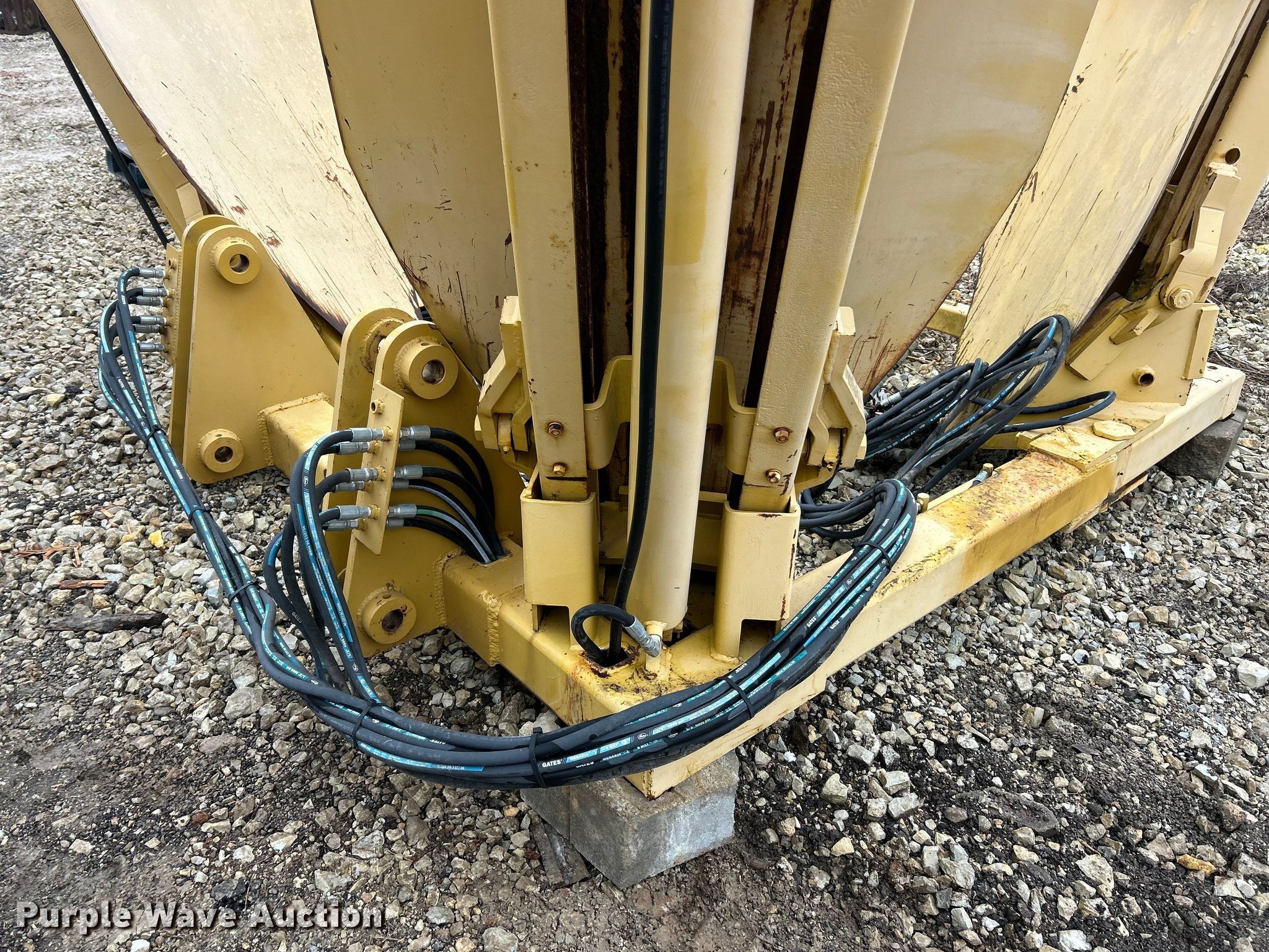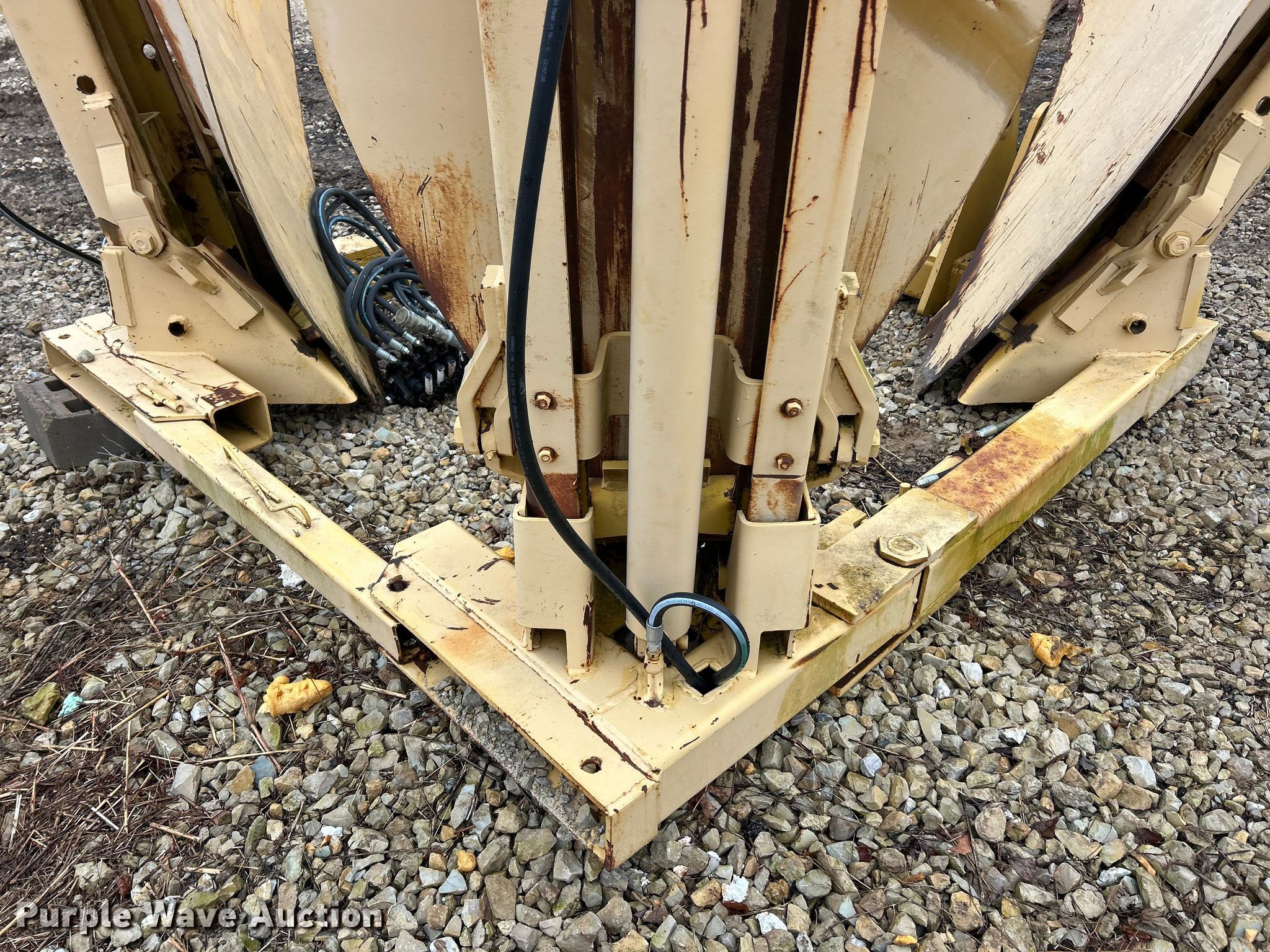 Vermeer TS44 tree spade. Dimensions. Overall Length: 98", Width: 91", Height: 138". Features Pin: 1 3/4 ". Notes Pads included, Removed from Caterpillar 955 track loader. K.J. Unnerstall Construction Co.. Washington, MO 63090