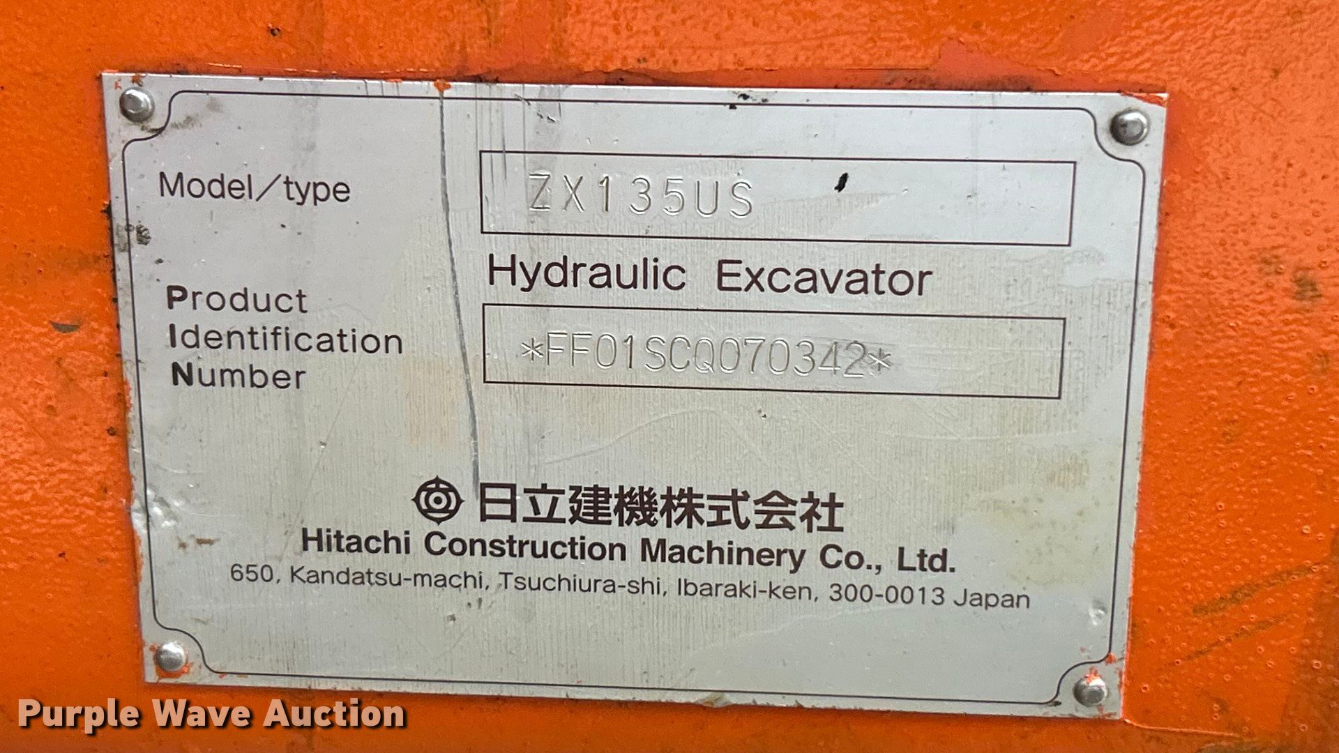 Purple Wave is selling a used Hydraulic Excavator in Missouri. This item is a 2008 Hitachi ZX135US excavator with the following: Hours: 8,248 on meter, Serial: FF01SC0070342