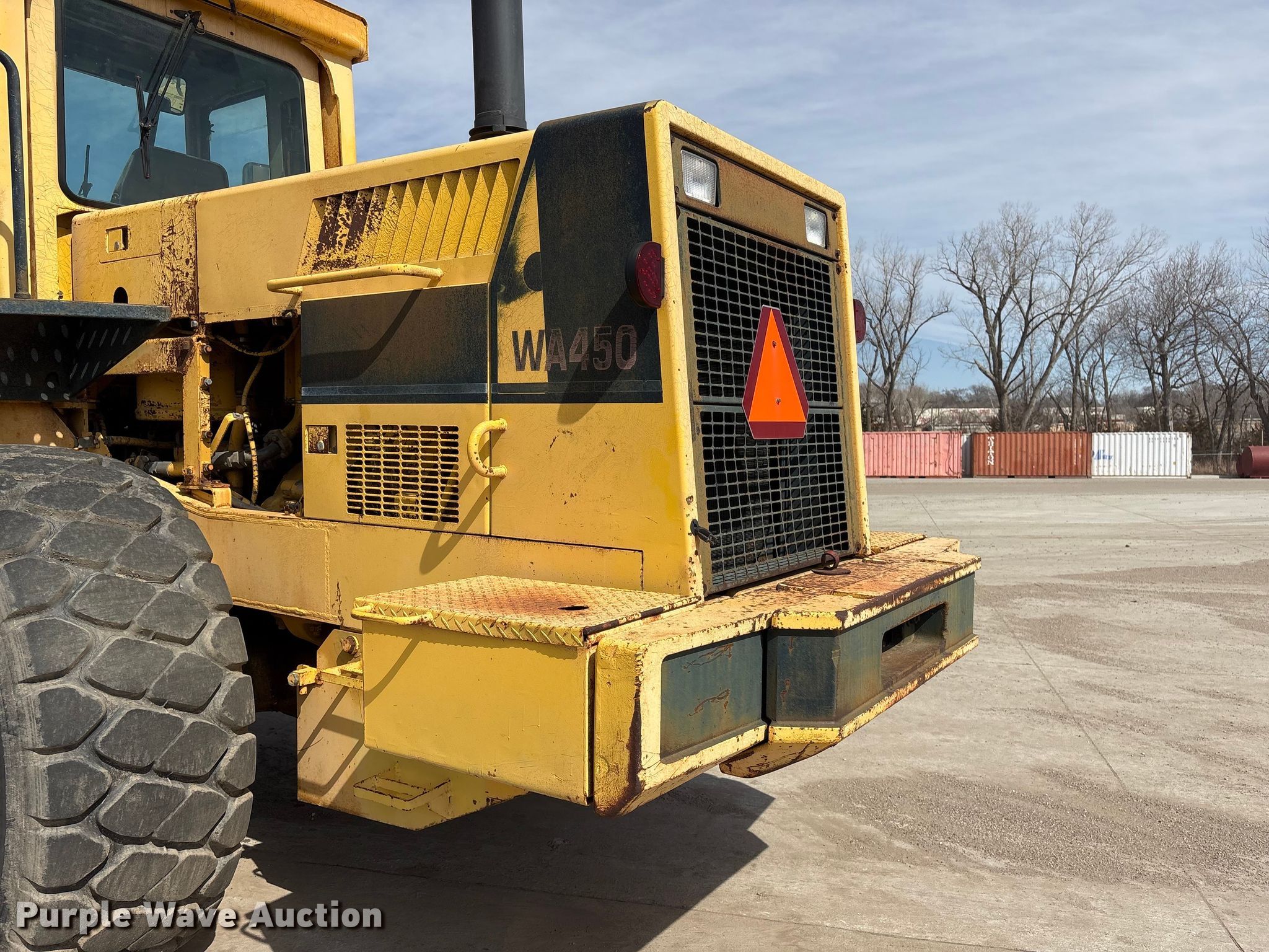 1988 Komatsu WA450-1L wheel loader. Hours: 11,982 on meter, Serial: 11090. Engine Komatsu, Cylinders: 6, Fuel type: Diesel. Transmission Powershift, 4F - 4R. Operators station Enclosed cab, Heat, Bucket controls: Two-lever. Features Counter weights, Bucket Width: 124", Cutting edge: Bolt-on. Tires Size: 23.5R25. Notes Engine cranks but does not start , Fuel system issues , Non-operational unit. Northstar International. Council Bluffs, IA 51501