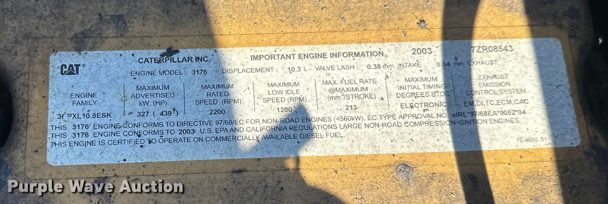 Caterpillar 345B L excavator. Hours: 8,013 on meter, Serial: CAT0345BHALB00345. Engine Caterpillar 3176, Serial: 7ZR08543, Displacement: 10.3L, Cylinders: 6, Fuel type: Diesel, HP: 439, kW: 327. Transmission Hydrostatic, Two speed travel. Operators station Enclosed cab, AC, Heat. Features Boom Standard, Stick Stick length: 15' 9", Bucket Width: 69", Teeth: 6. Tracks Width: 36", Steel, Grouser pads: Triple. S&A Land Clearing Inc. Hugo, MN 55038