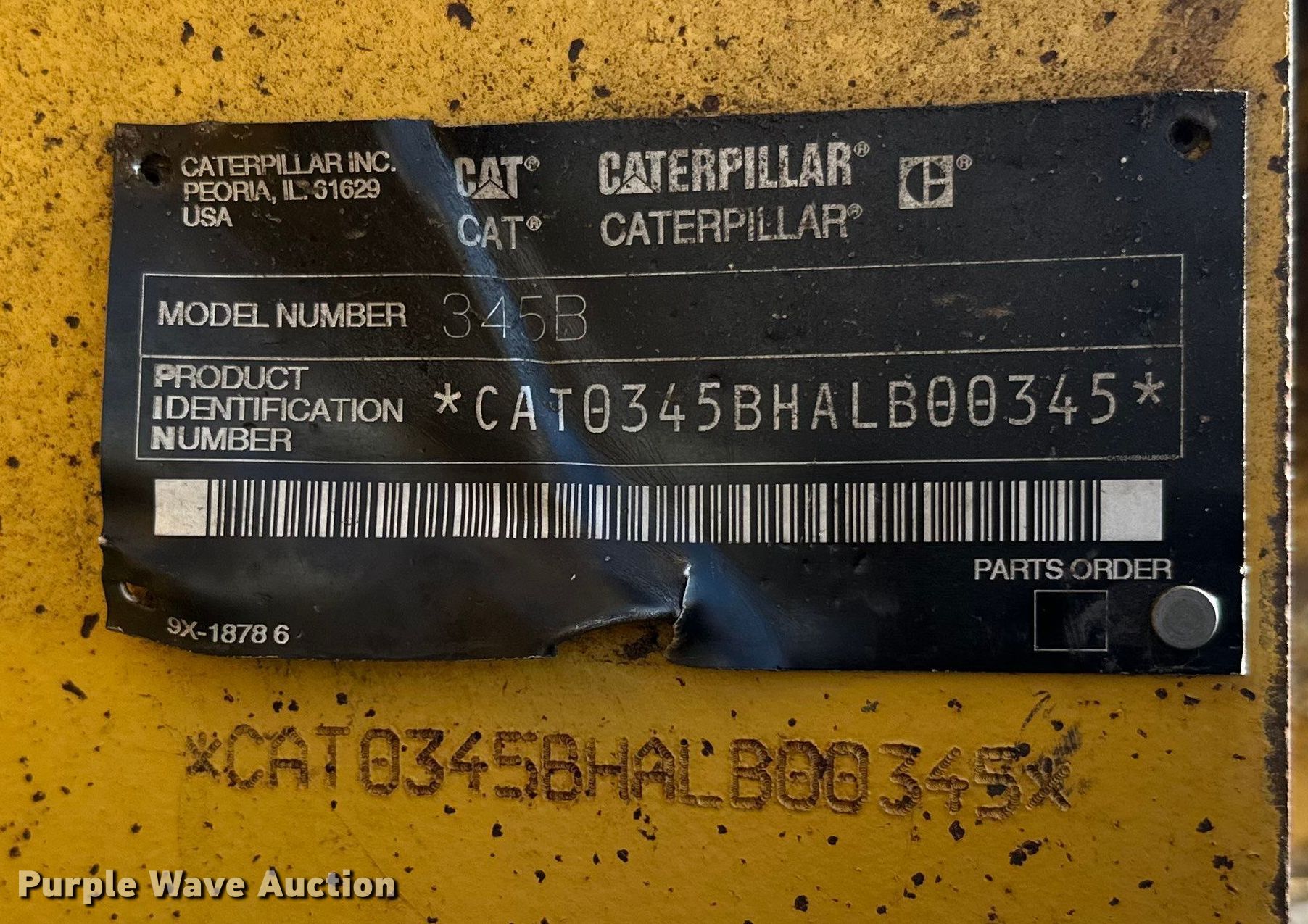 Purple Wave is selling a used Hydraulic Excavator in Minnesota. This item is a Caterpillar 345B L excavator with the following: Hours: 8,013 on meter, Serial: CAT0345BHALB00345