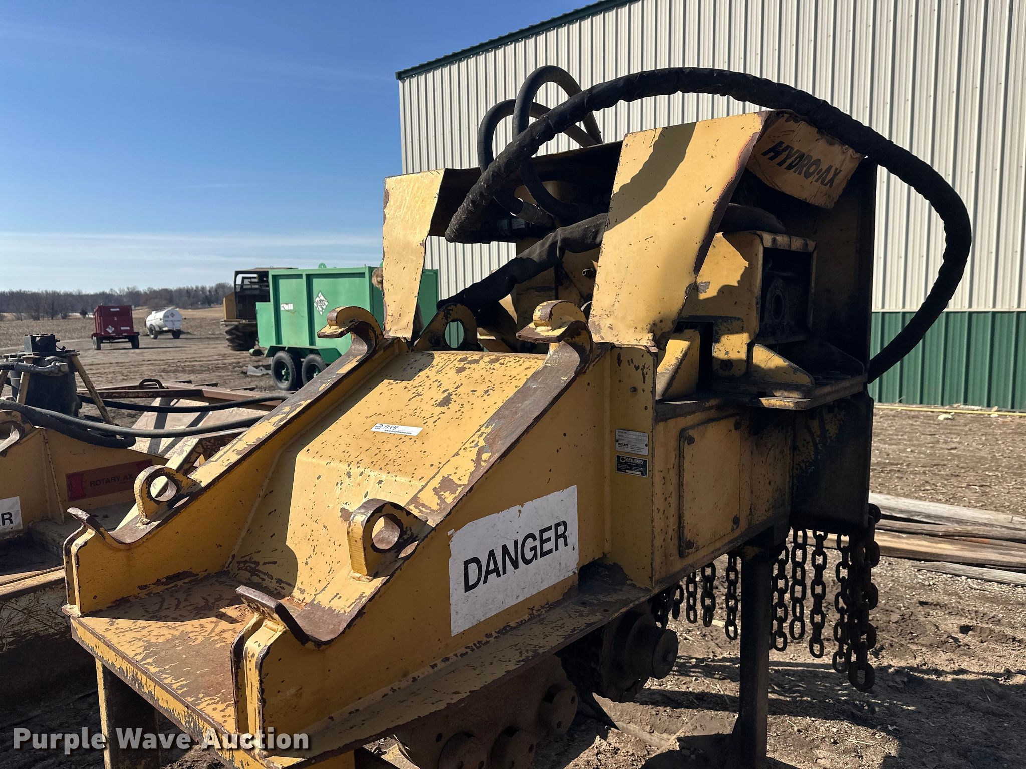 2001 Hydro-Ax 721E mulcher. Hours: 9,119 on meter, Serial: 7863. Engine John Deere Power Tech, Displacement: 8.1L, Cylinders: 6, Fuel type: Diesel. Transmission Hydrostatic, Two speed travel. Chassis Four wheel drive. Operators station Enclosed cab, AC, Heat, Controls: Joystick. Features Felling head Blount 220HSAW, Serial: SA15104, Cutting capacity: 20", Throat opening: 34", Hydro-Ax stump grinder Serial: SA15158-4, Width: 36", Blount grinding wheel, Rotary Ax brush mower Serial: 801, Width: 8'. Tires Size: 28L-26. S&A Land Clearing Inc Retirement - Open House March 26th - 8 a.m. to 4 p.m.. Hugo, MN 55038
