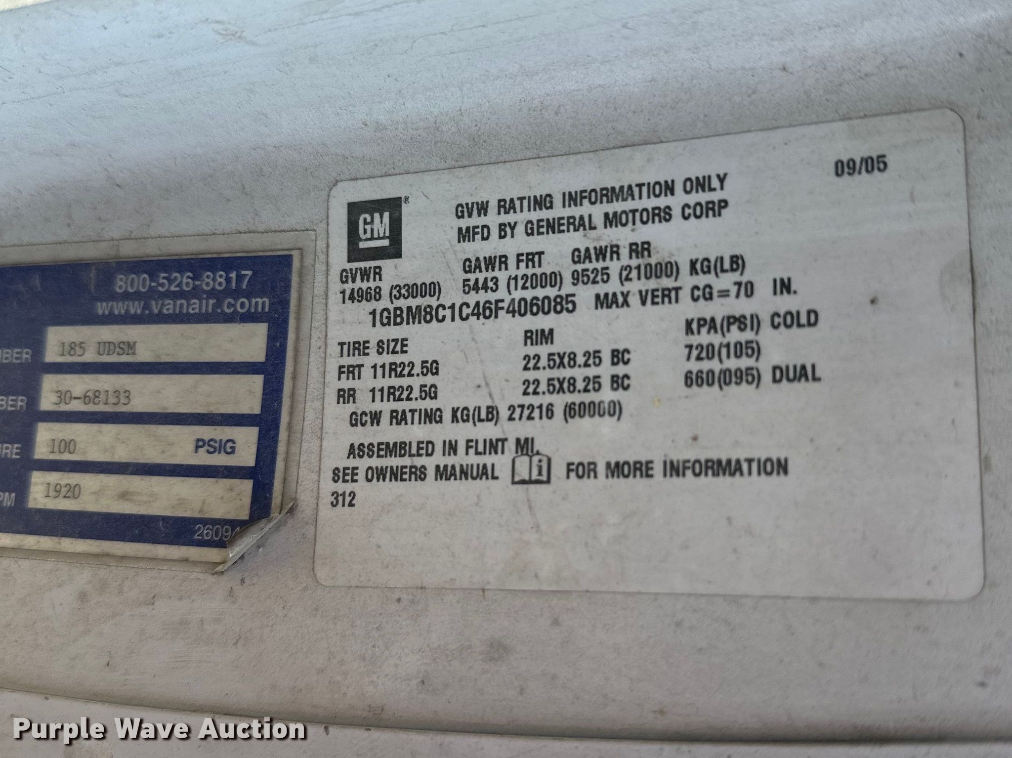 - VIN: 1GBM8C1C46F406085