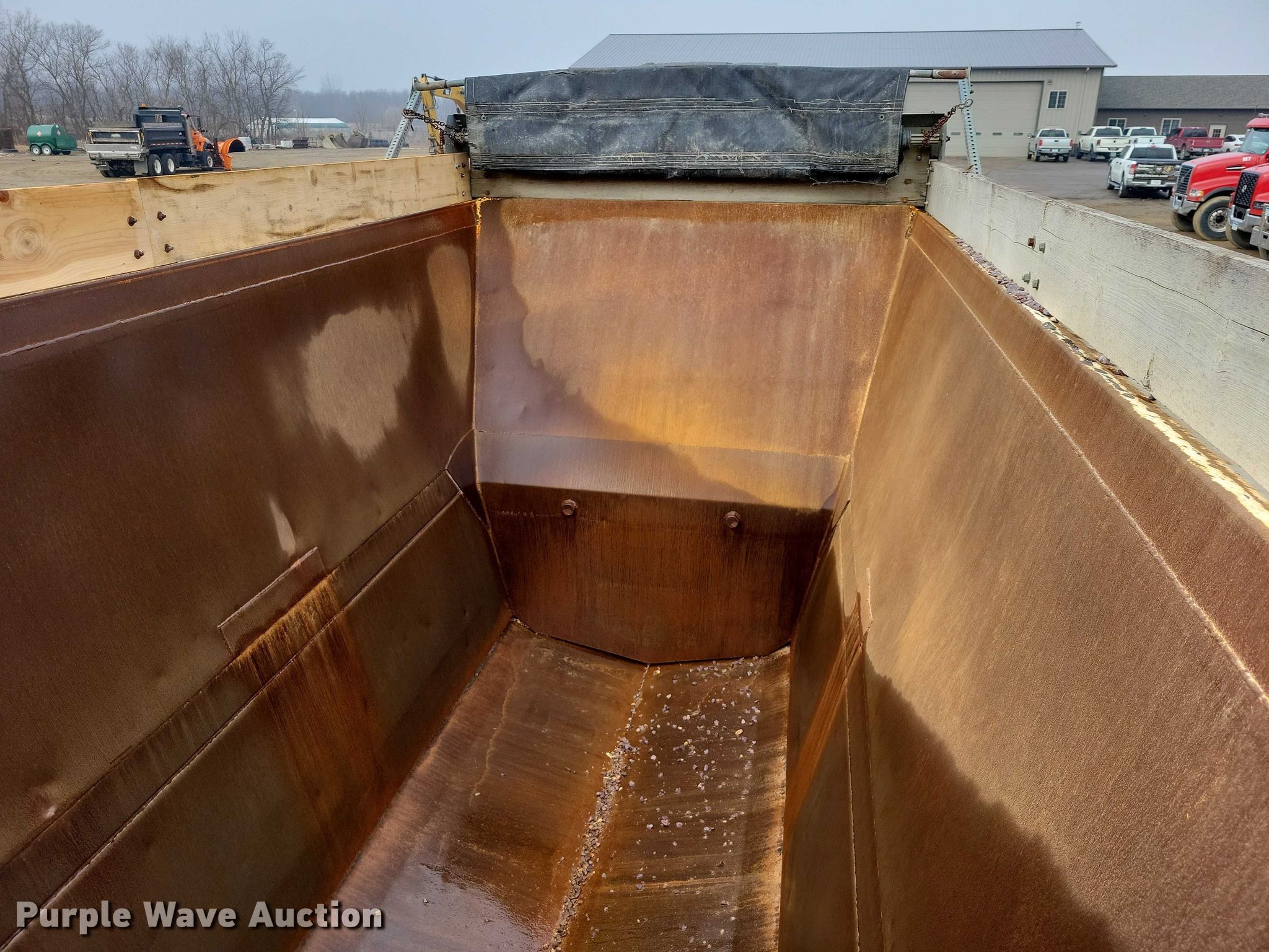 2012 Manac LBD42 bottom dump trailer. VIN: 5MC114225CP013135. Dimensions Overall Length: 44', Width: 96", Body Length: 10', Width: 96", Side height: 6', Sideboard height: 10". Features Body type: Steel, Ram: Dual, Clamshell gate: Air operated, Trailer controls, Rear push block, Roll tarp. Chassis Landing gear: Dual, Suspension: Spring, Brakes: Air, Axles: Tandem, GVWR: 77,000 lbs, GAWR: 21,000 lbs. Tires Steel wheels, Size: 11R22.5. Minnesota title. Title distribution may be delayed up to 14 days from verification of funds. Jensen Excavating & Trucking, LLC.. Albert Lea, MN 56007