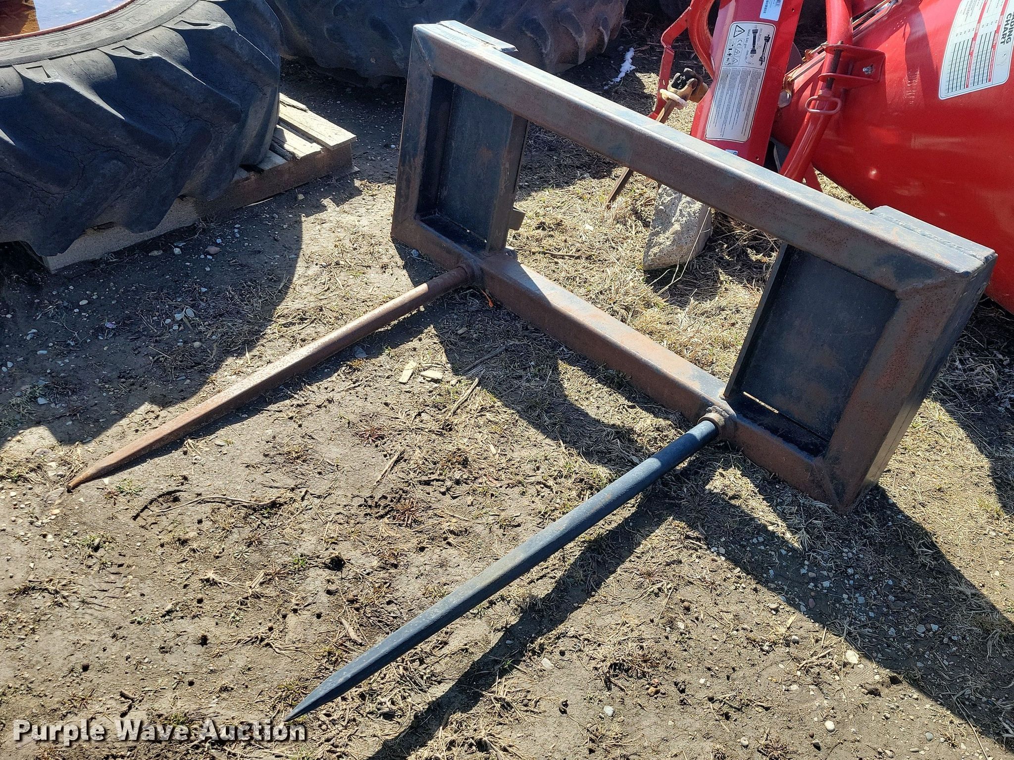 Purple Wave is selling a used Ag Tractor Loader or Attach. in Iowa. This item is a John Deere bale spear with the following: Length: 41"
