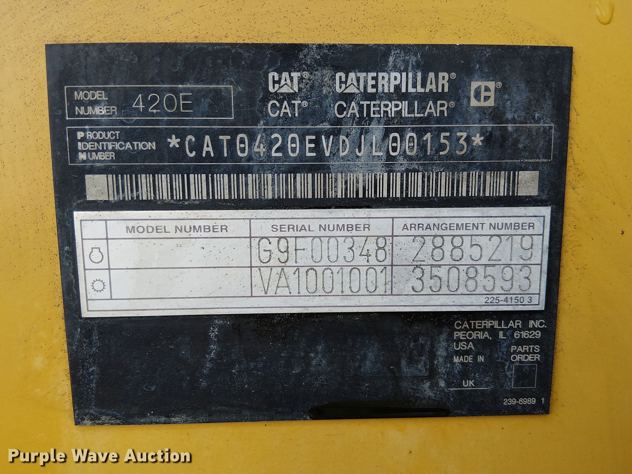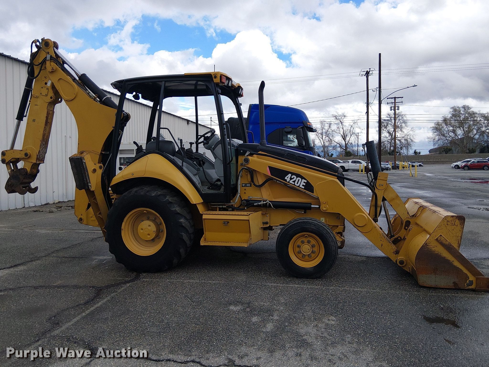 Purple Wave is selling a used Industrial Loader Tractor in California. This item is a 2010 Caterpillar 420E backhoe with the following: Hours: 3,536 on meter, Serial: CAT0420EVDJL00153