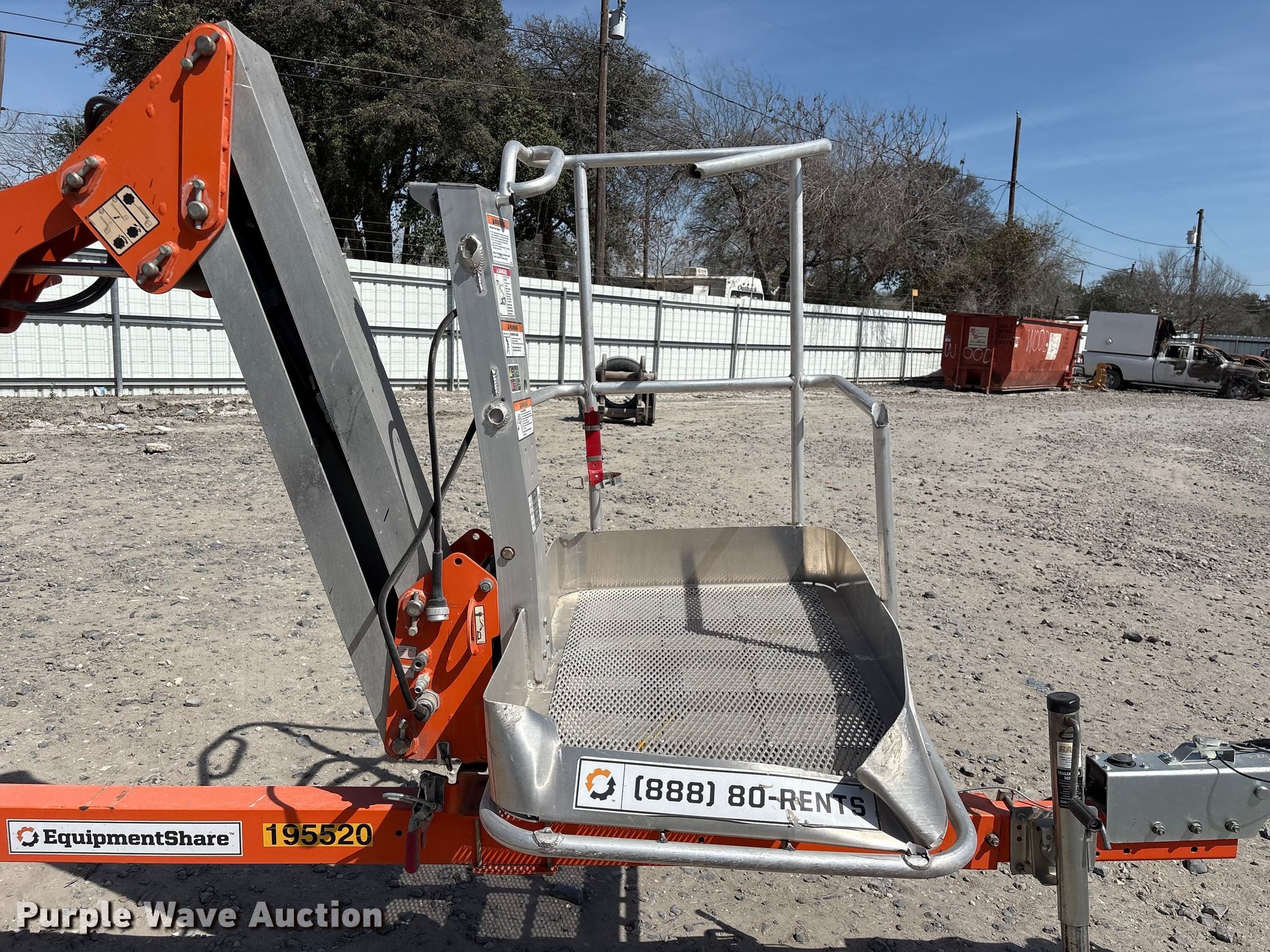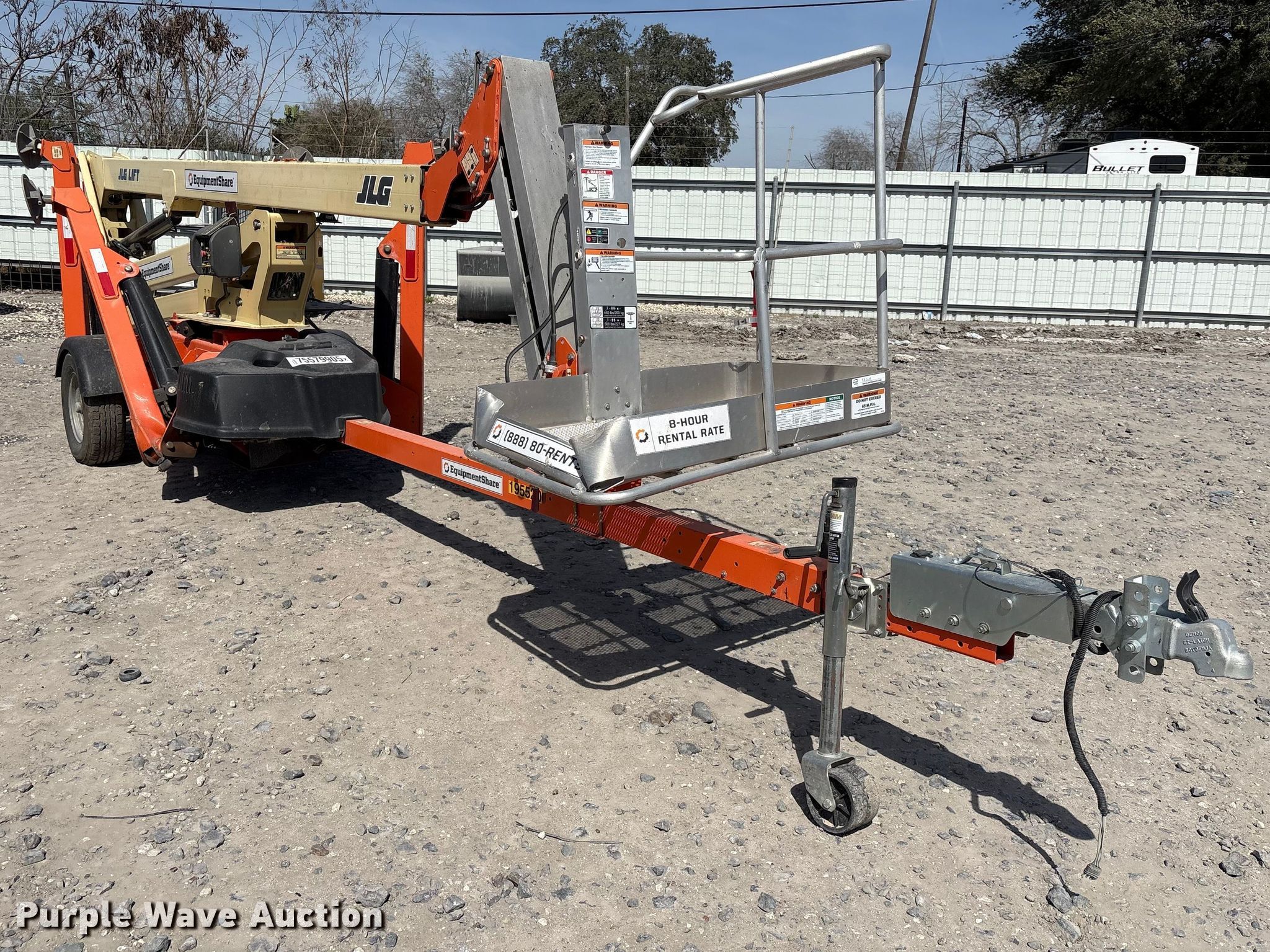 2022 JLG T500J boom lift. Hours: 459 on meter, VIN: 5DYACJ1J2MP013770, Serial: 0030013770, Unit #: 75579905. Engine Honda, Displacement: 270cc, Fuel type: Gas. Features Tow behind, Boom type: Articulating, Telescopic, Maximum lift capacity: 440 lbs, Maximum lift height: 50', Hydraulic outriggers, Hydraulic extendable jib, Hydraulic leveling, Platform: 29" L x 45" W, AC power outlet, Air outlet, Controls: Ground, Safety alarm. Tires Tire size: 225/75R15. Notes Jump start required during on-site data collection, Collision damage, Possible engine issues, turns over but will not start , Unknown operating condition. Buyer responsible for all aspects of loadout and removal. Insurance salvage, stored at a secured facility. Please review REQUIRED REMOVAL INSTRUCTIONS. This is worksite support equipment and will not come with a title. Transfer of ownership documentation will be a bill of sale. Insurance Salvage. 3200 Agnes Street. Corpus Christi, TX 78405