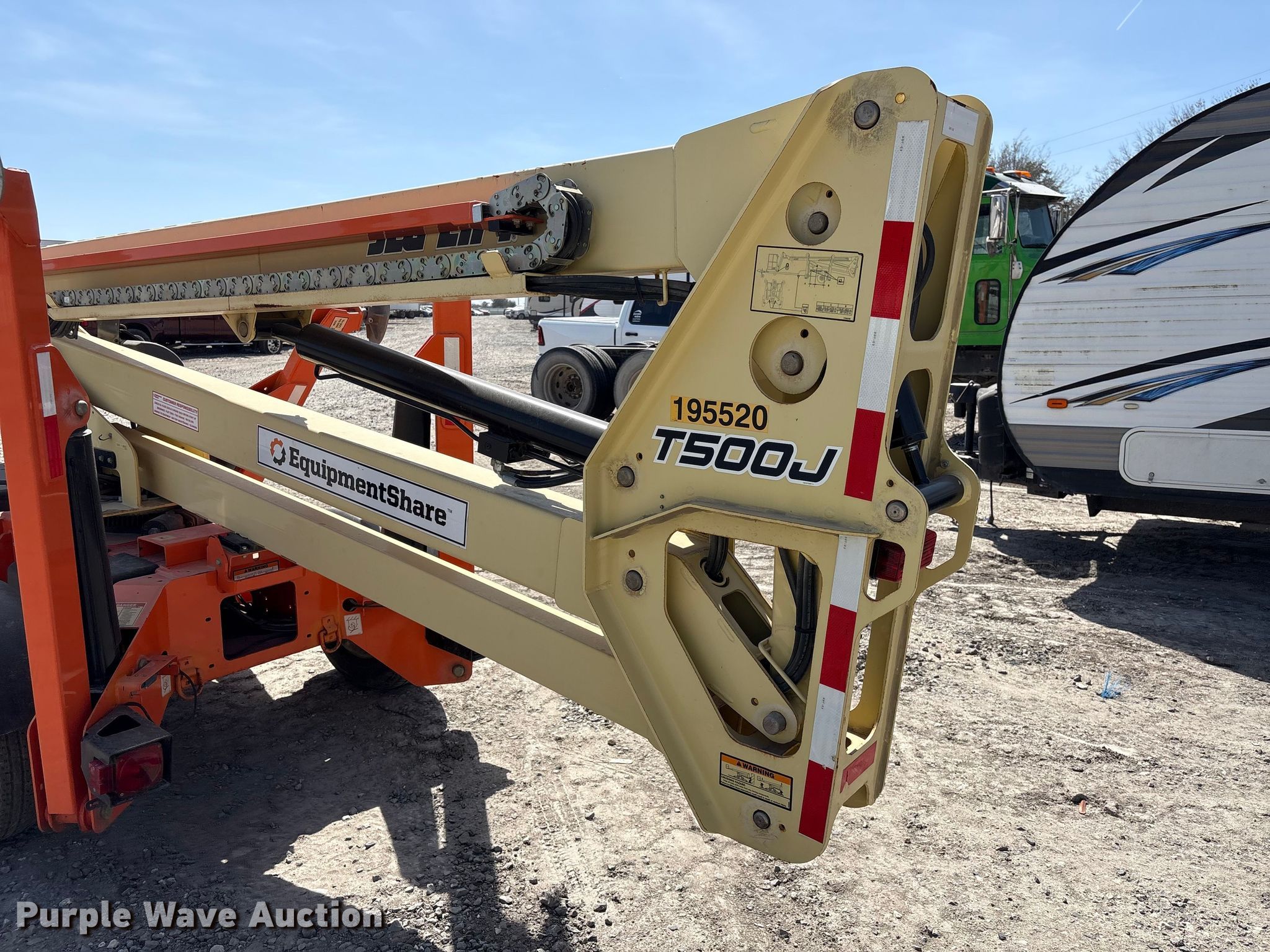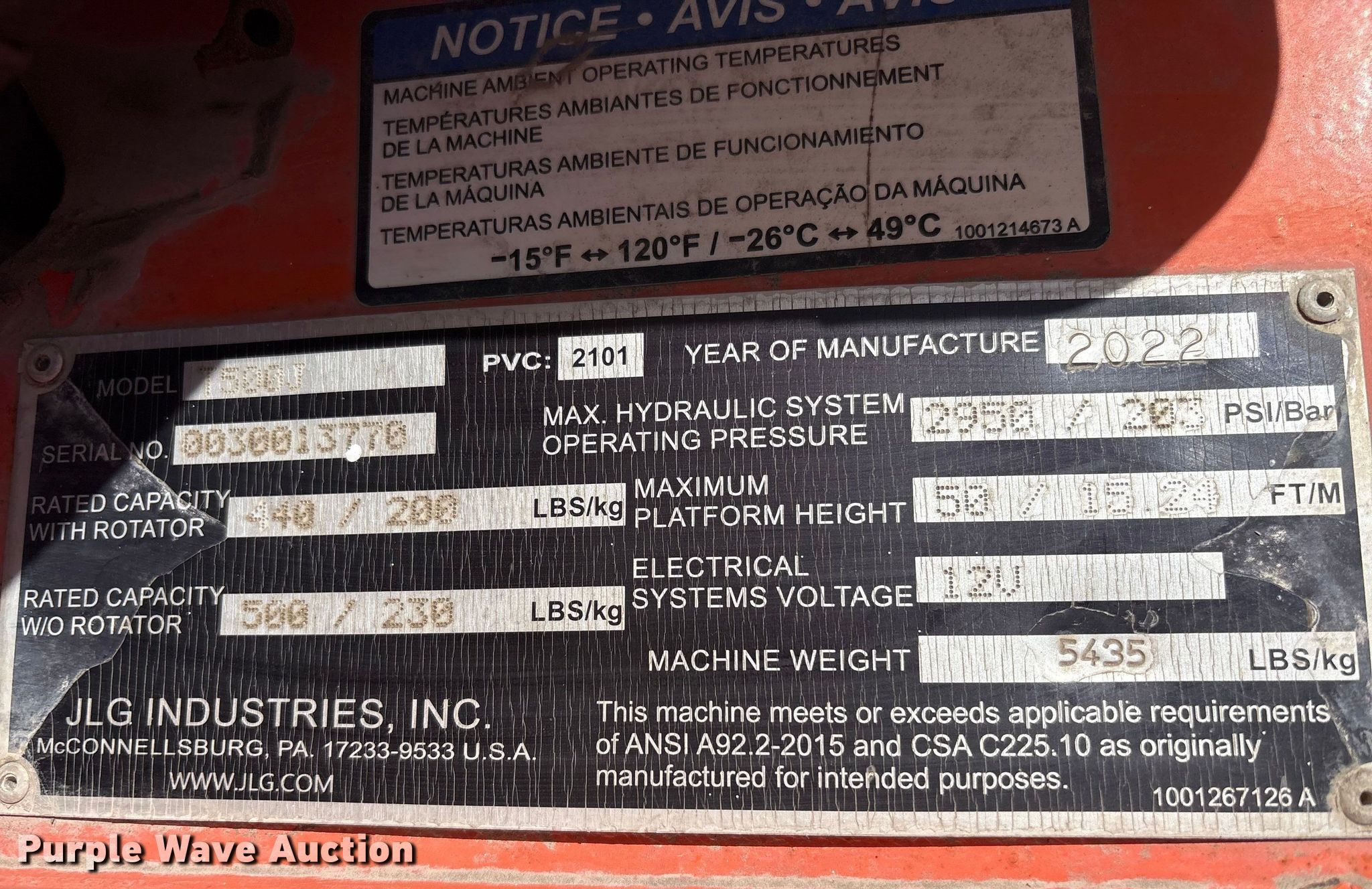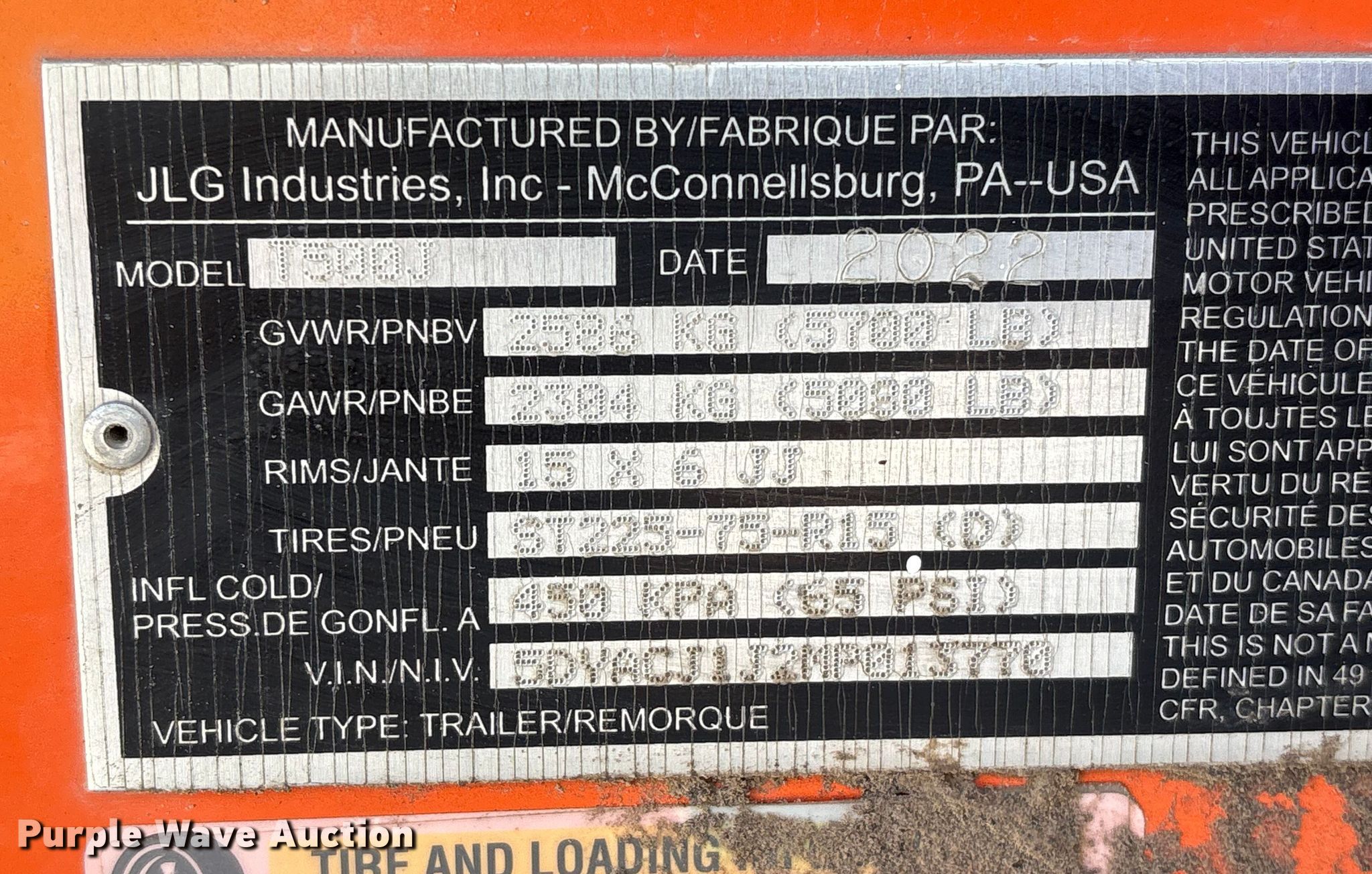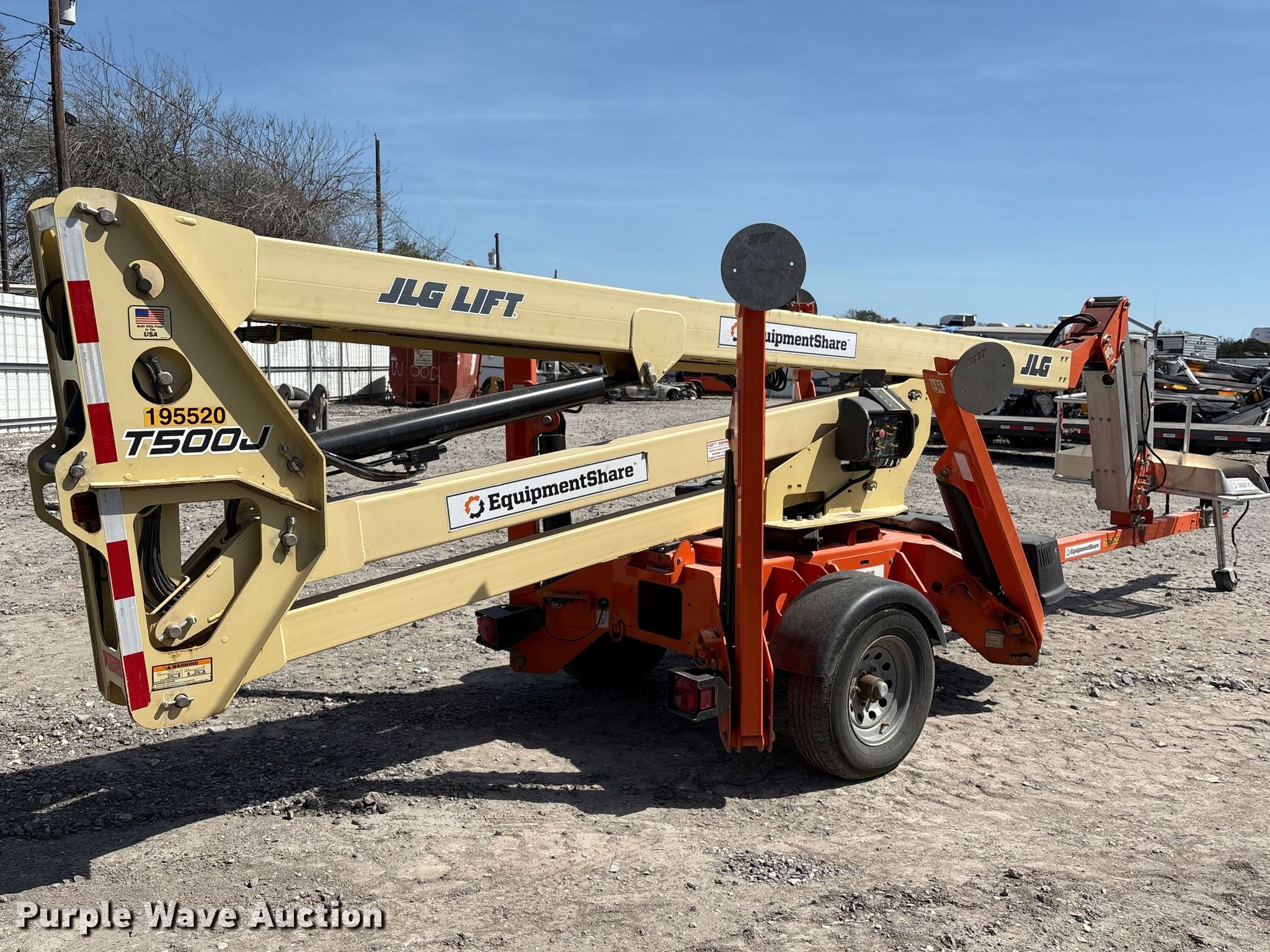 Purple Wave is selling a used Boom Lift in Texas. This item is a 2022 JLG T500J boom lift with the following: Hours: 459 on meter, VIN: 5DYACJ1J2MP013770, Serial: 0030013770, Unit #: 75579905