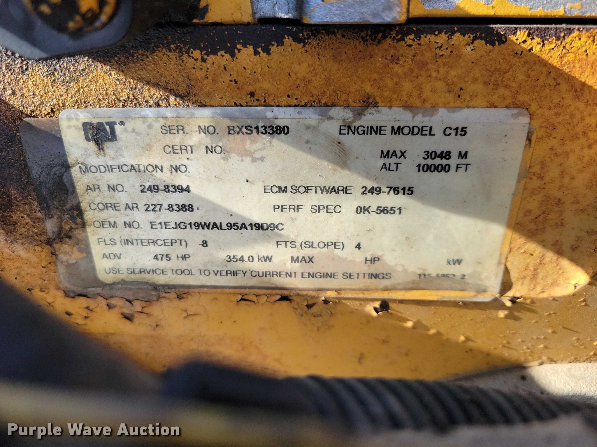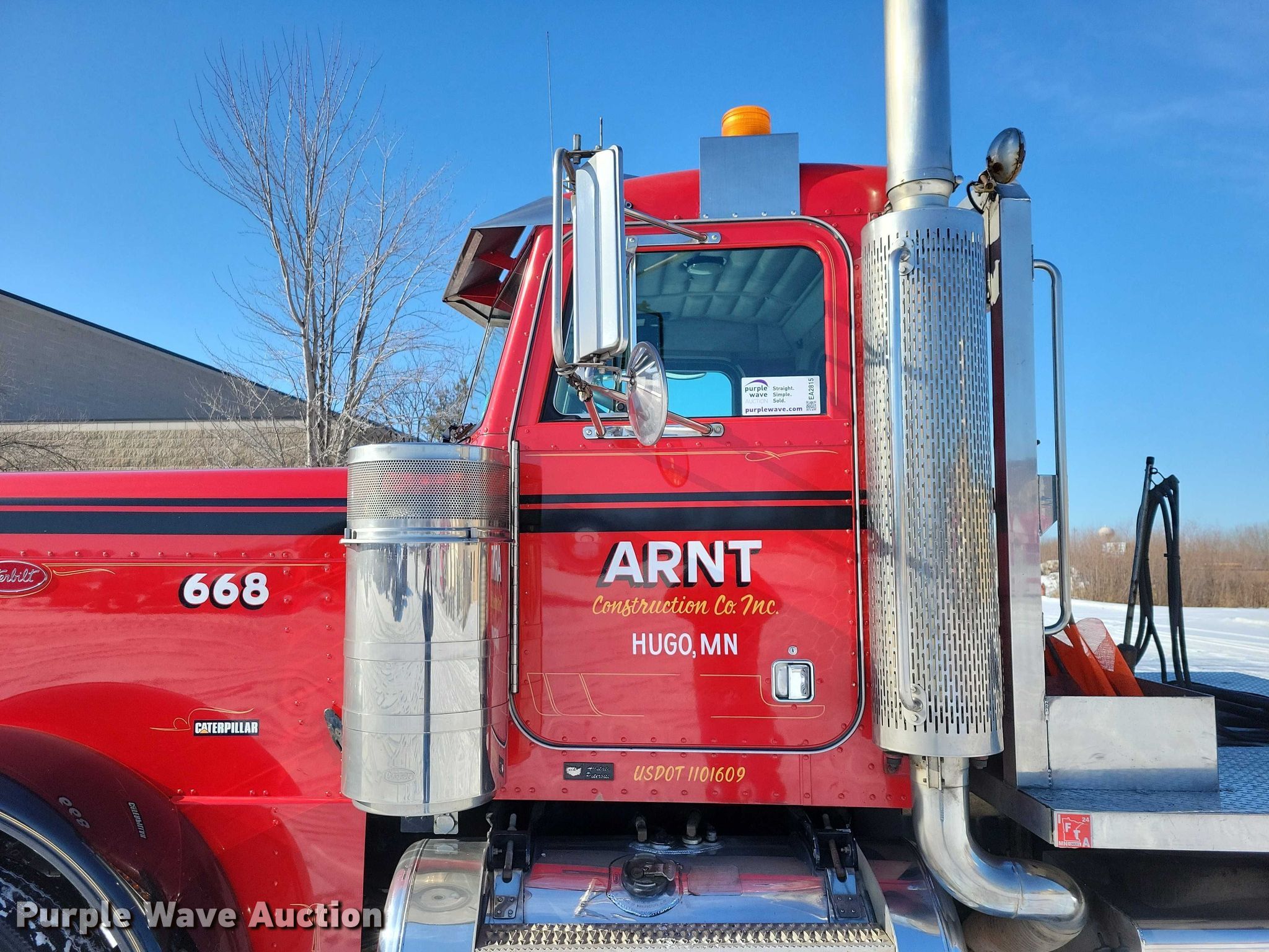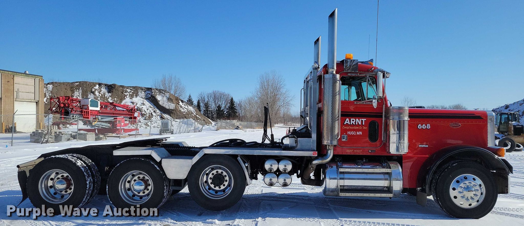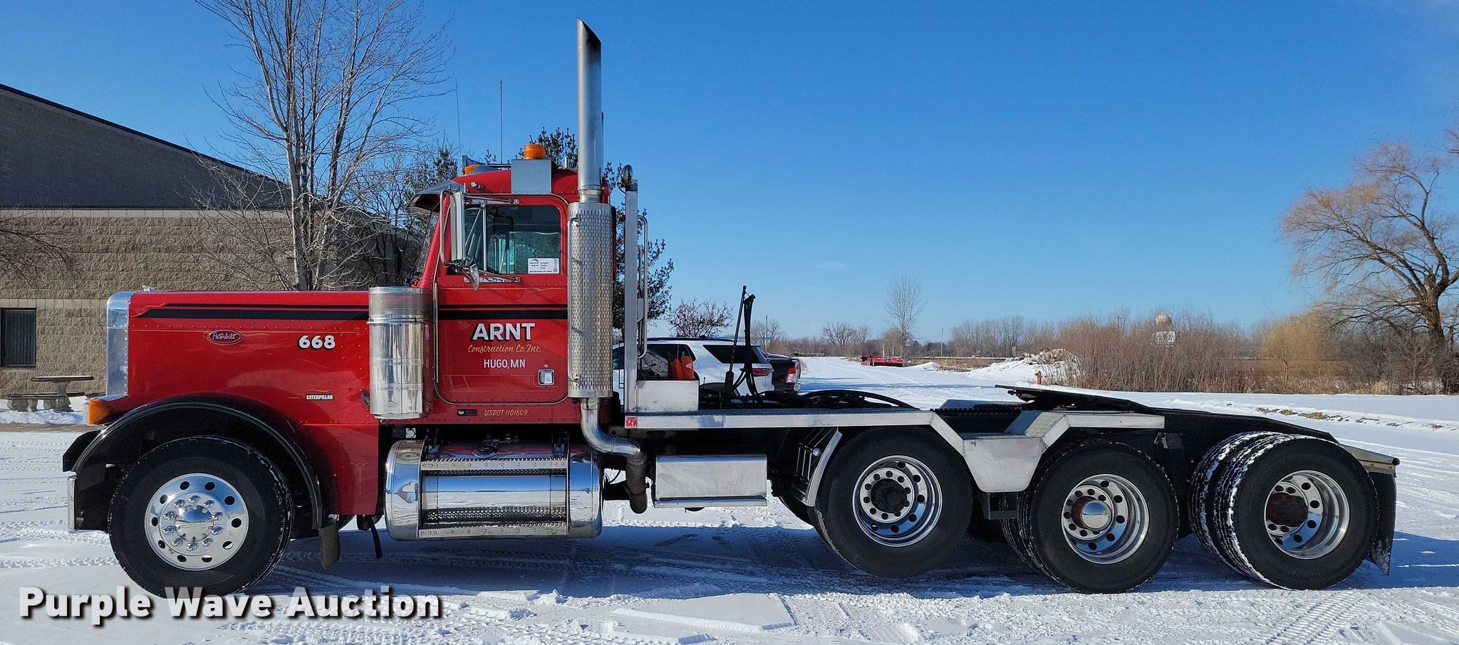 2005 Peterbilt 379 semi truck. Miles: 913,771 on odometer, VIN: 1XP5PBEX95D836617, Unit #: 668. Engine Caterpillar C15, Serial: BXS13380, Displacement: 15.2L, Cylinders: 6, Fuel type: Diesel, HP: 475, kW: 354, Engine brake. Transmission Eaton Fuller, Manual, Speed: 18. Chassis Axles: Triple, Pusher axle, Differential lock: Inter-axle, Suspension: Air Dump valves, Brakes: Air, PTO, GVWR: 72,000 lbs FAWR: 12,000 lbs, IAWR: 22,000 lbs, RAWR: 22,000 lbs, Lift axle GAWR: 17,000 lbs. Interior AC, Heat, Heated mirrors, Cruise control, Air ride cab. Features Deck plate: Aluminum, Fifth wheel type: Air operated, Sliding, Fuel tank: Dual. Tires Size: 11R22.5. Notes Dash warning indicator: ABS. Minnesota title. Title has a lien that will be released following the close of the auction. Title distribution may be delayed up to 30 days from verification of funds. Arnt Construction Retirement - Open House: March 26th and April 7th. Hugo, MN 55038