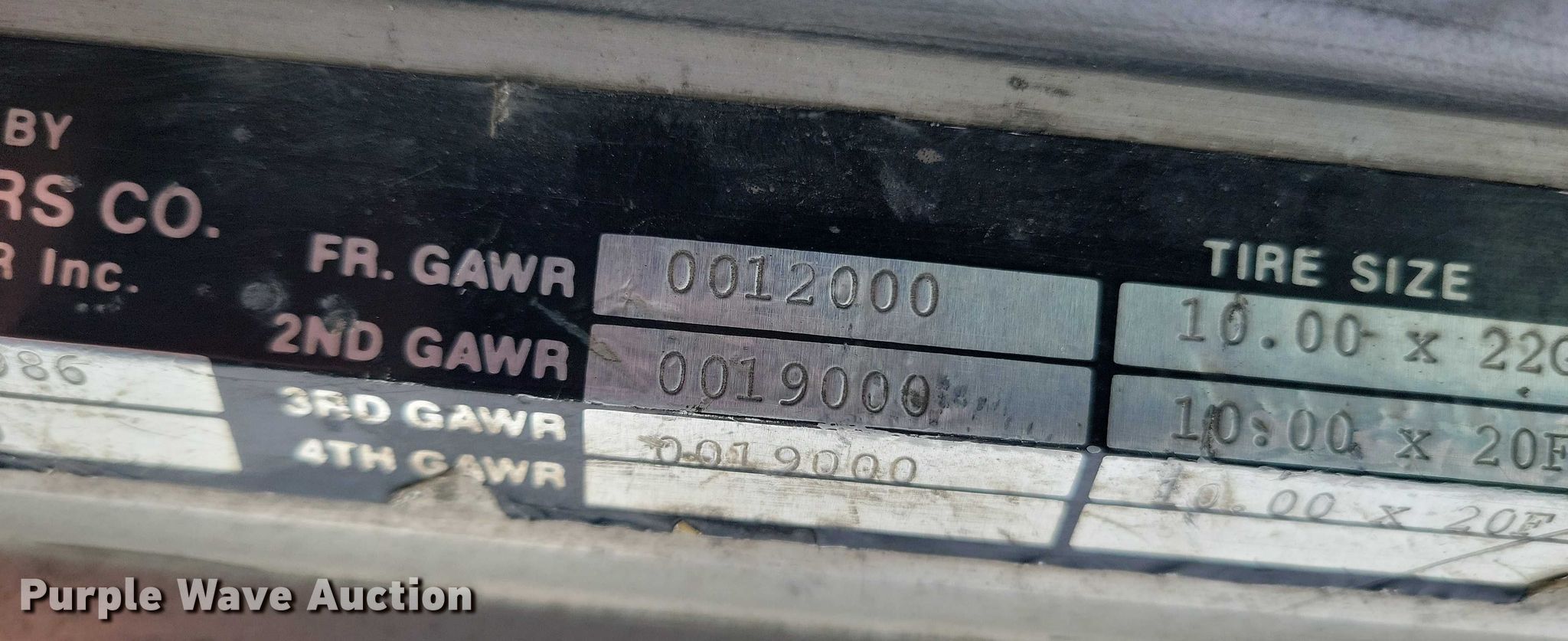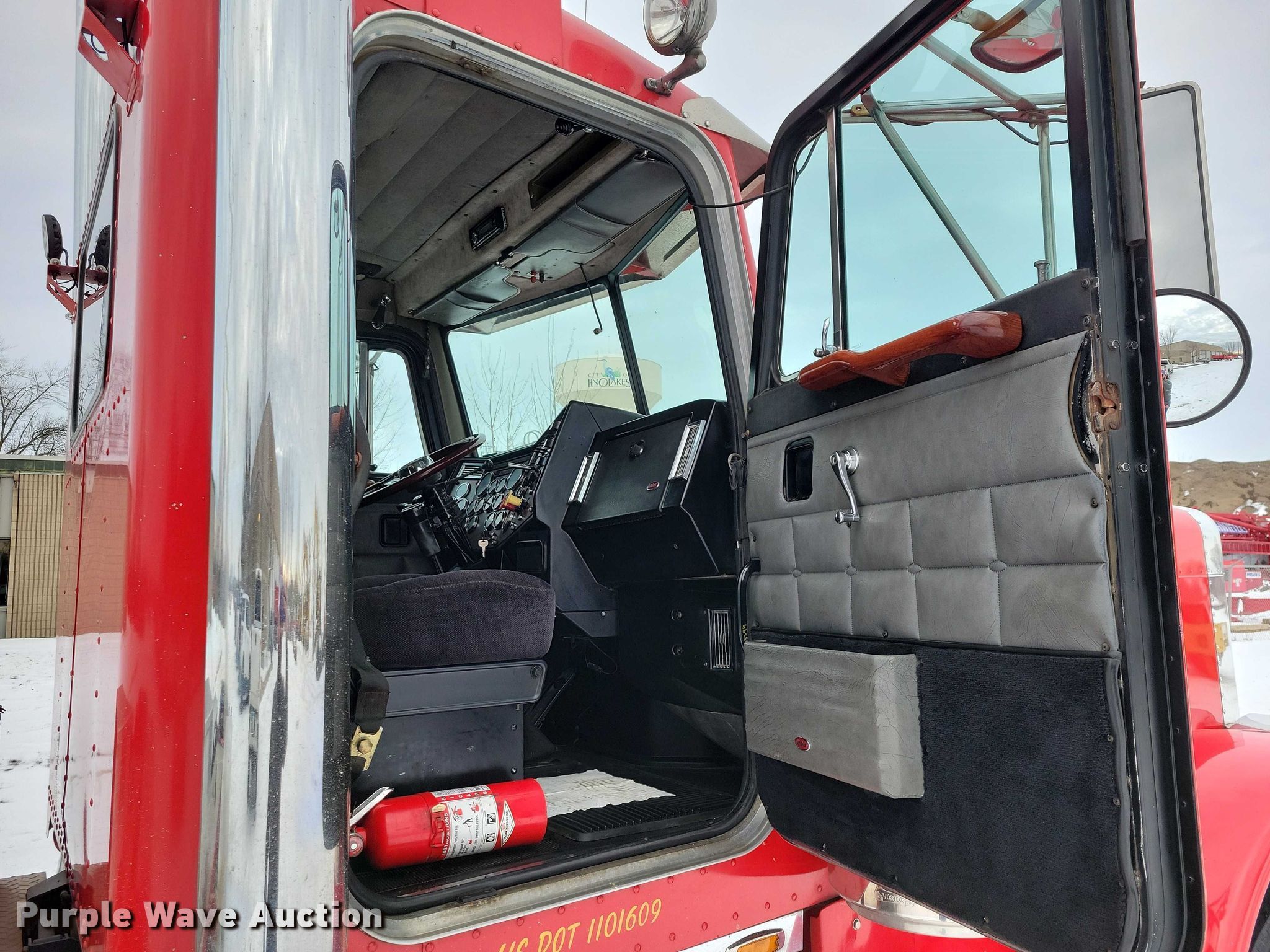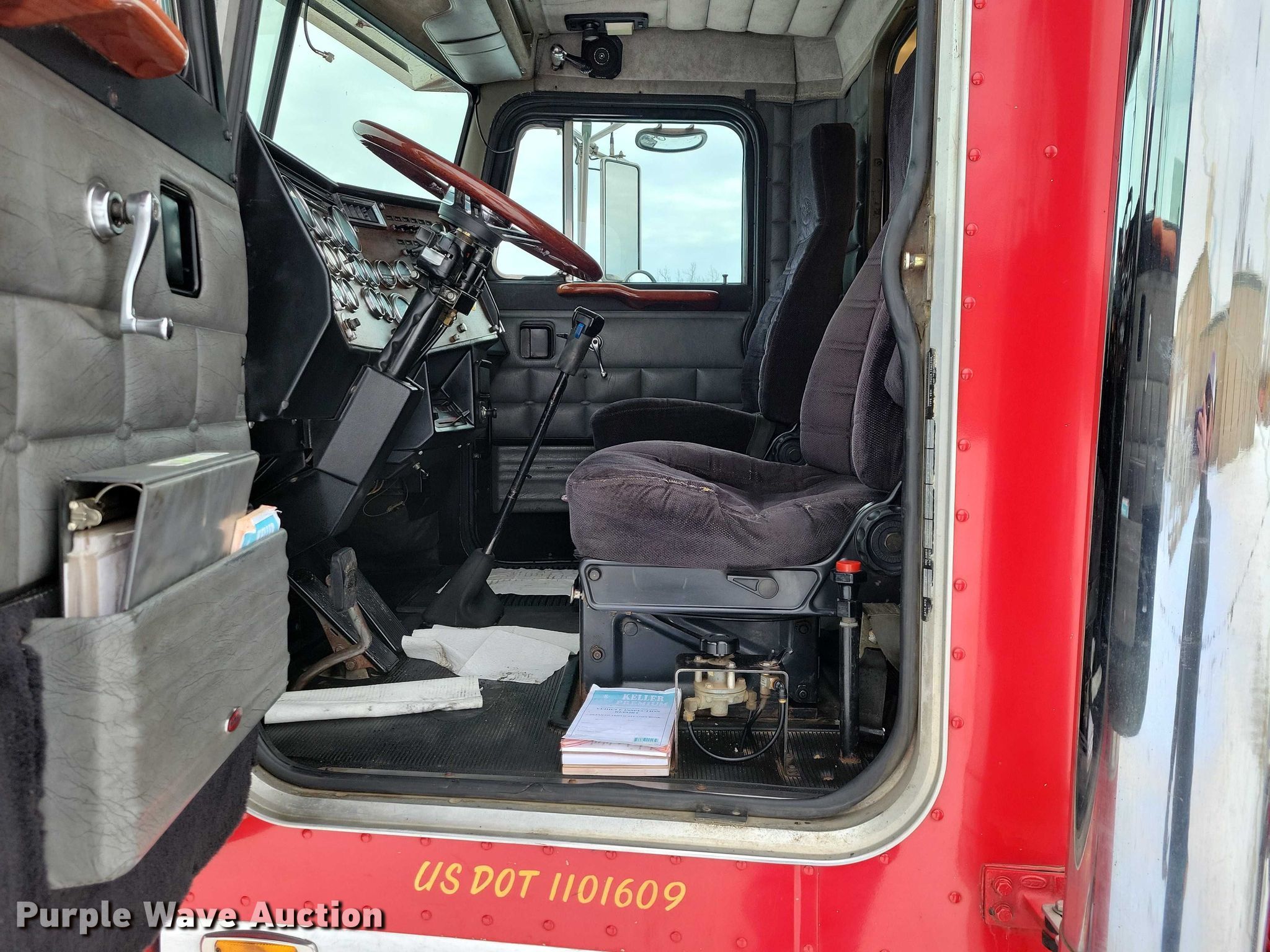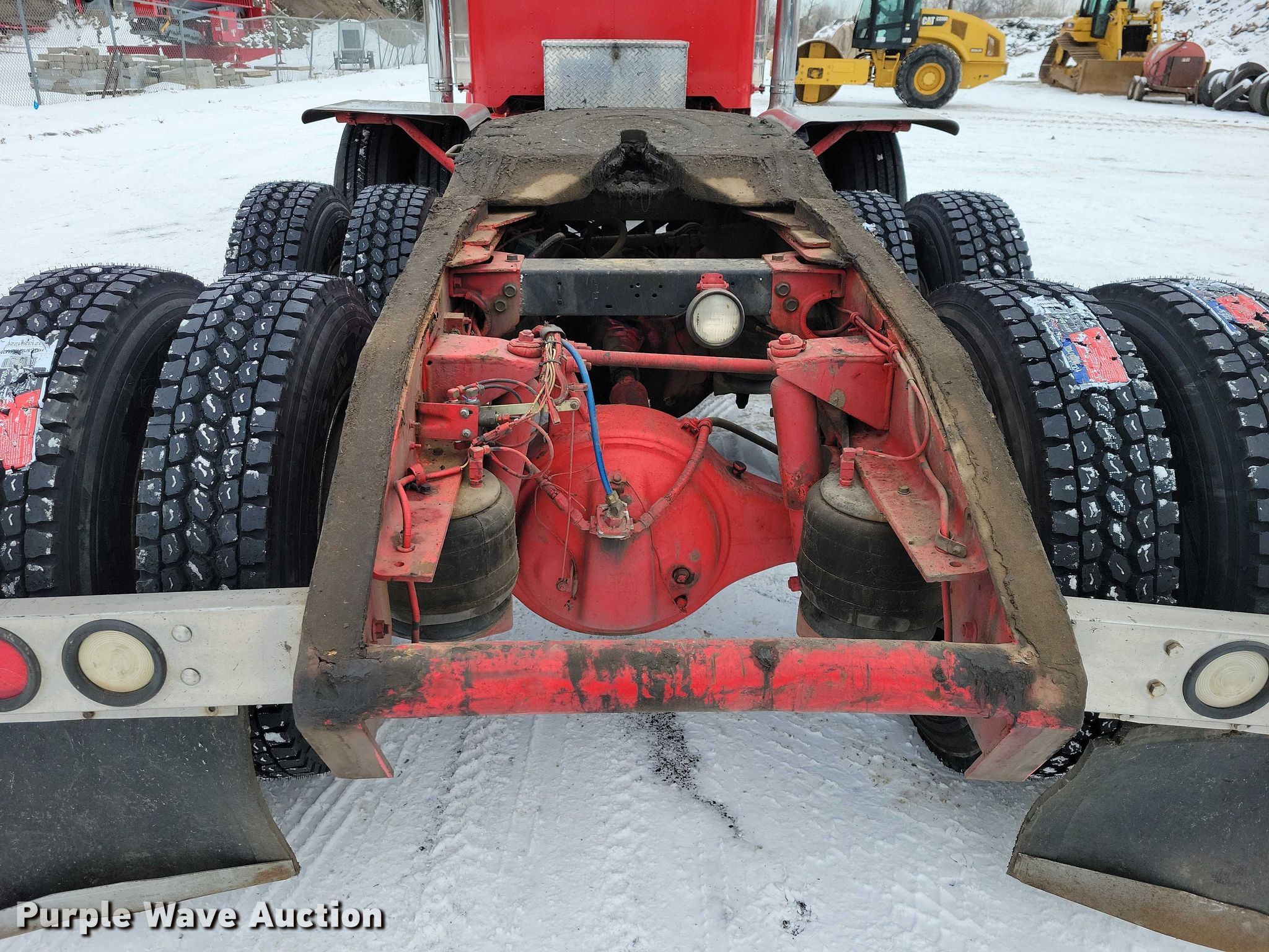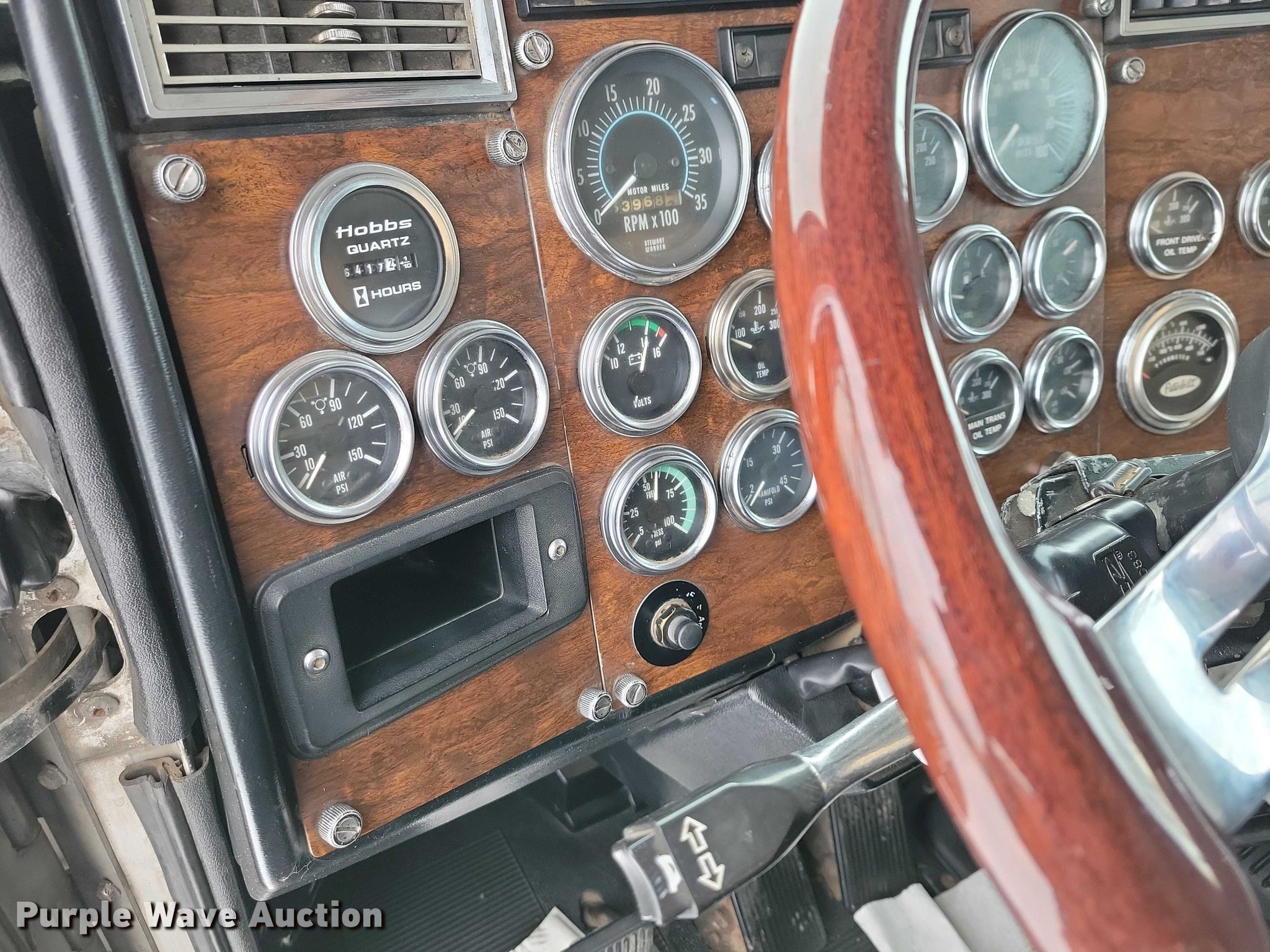 1987 Peterbilt 379 semi truck. Miles: 597,325 on odometer, Hours: 6,417 on meter, VIN: 1XP5DB9XXHN212200, Unit #: 641. Engine Caterpillar 3406B, Displacement: 14.6L, Cylinders: 6, Fuel type: Diesel. Transmission Eaton Fuller, Manual, Speed: 15. Chassis Axles: Triple, Pusher axle, Differential lock: Inter-axle, Suspension: Air Dump valves, Brakes: Air, GVWR: 50,000 lbs FAWR: 12,000 lbs, IAWR: 19,000 lbs, RAWR: 19,000 lbs. Interior AC, Heat, Heated mirrors, Air ride cab. Features Deck plate: Aluminum, Fifth wheel type: Air operated, Sliding, Fuel tank: Dual. Tires Size: 11R22.5. Notes Windshield chipped or cracked. Minnesota title. Title has a lien that will be released following the close of the auction. Title distribution may be delayed up to 30 days from verification of funds. Arnt Construction Retirement - Open House: March 26th and April 7th. Hugo, MN 55038