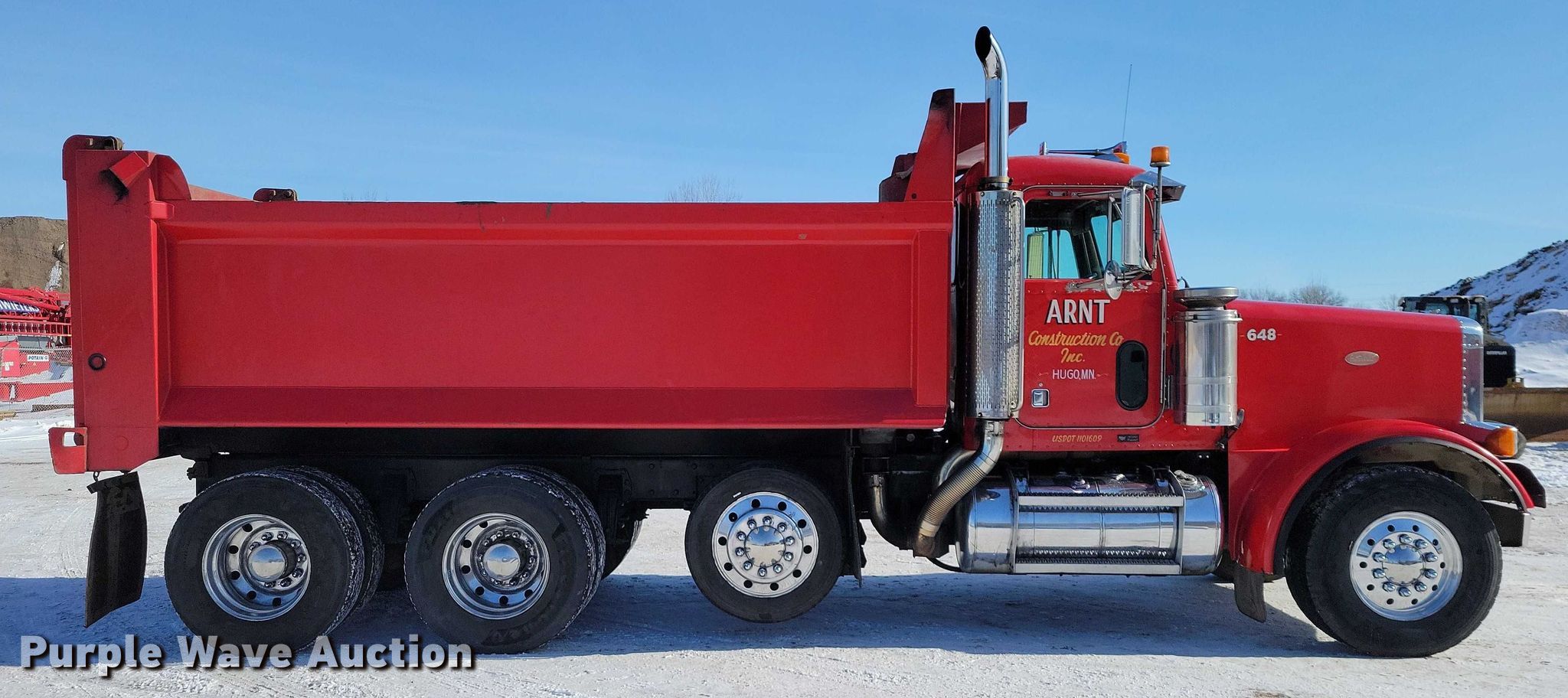 Purple Wave is selling a used Construction Dump Truck in Minnesota. This item is a 1995 Peterbilt 357 dump truck with the following: Miles: 968,955 on odometer, Hours: 6,216 on meter, VIN: 1XPALAOXXSN374148, Unit #: 648