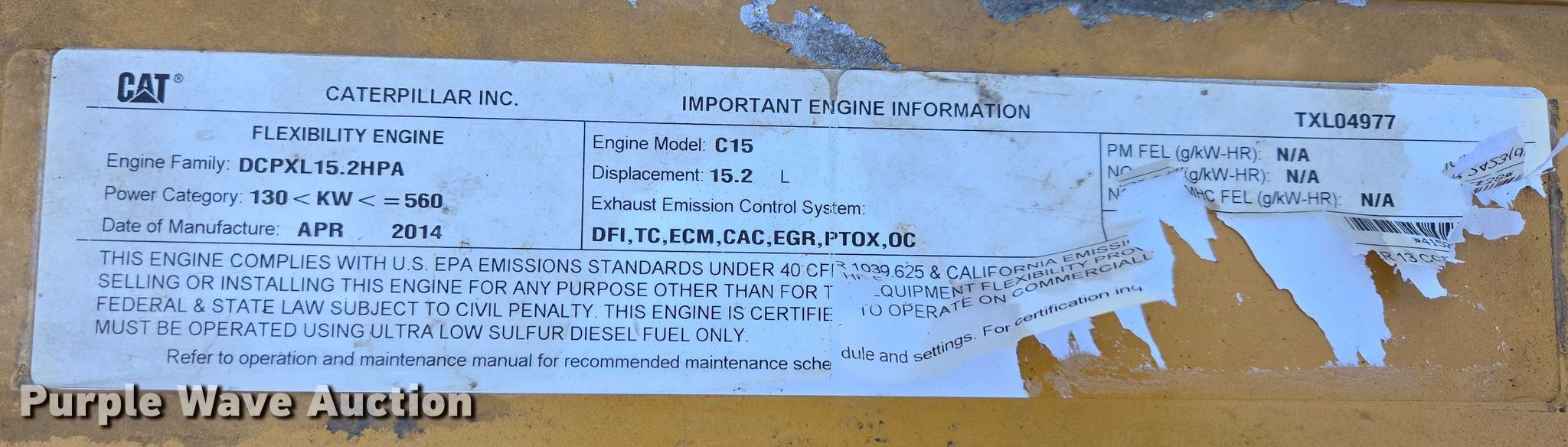 2014 Caterpillar 740B articulated haul truck. Hours: 14,901 on meter, Serial: CAT0740BCT4R02676, Unit #: T16. Engine Caterpillar C15, Displacement: 15.2L, Cylinders: 6, Fuel type: Diesel. Transmission Automatic, 4F - 1R. Chassis Six wheel drive. Interior AC, Heat, Retarder, Backup camera. Features Dump bed, Bed heater. Tires Size: 29.5R25. Arnt Construction Retirement - Open House: March 27th 8am-4pm and April 7th 8am-4pm. Hugo, MN 55038