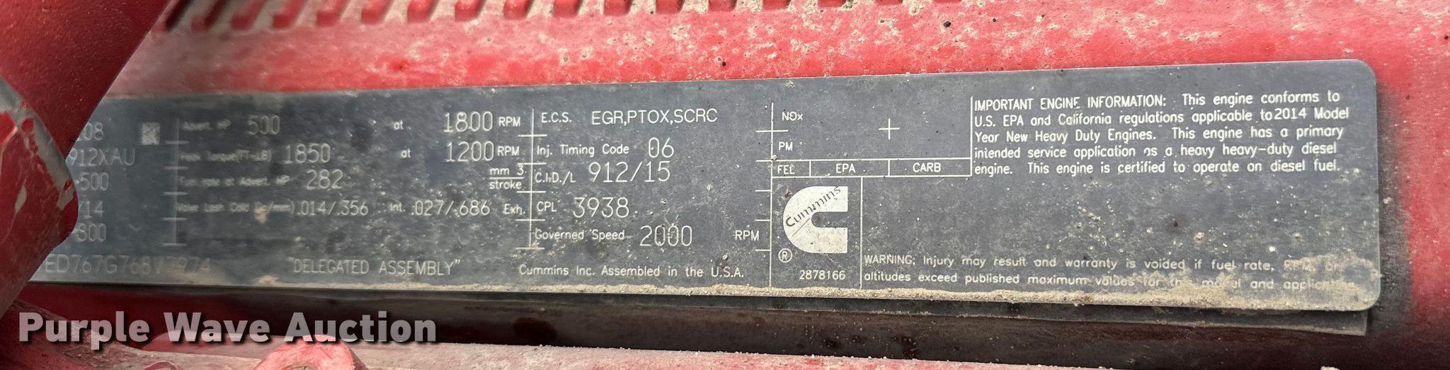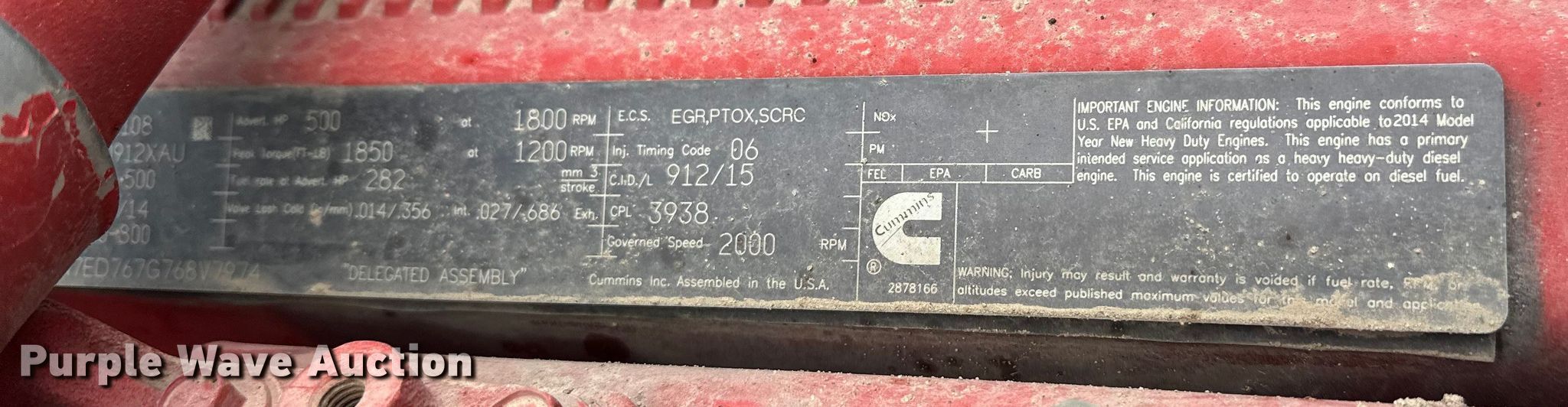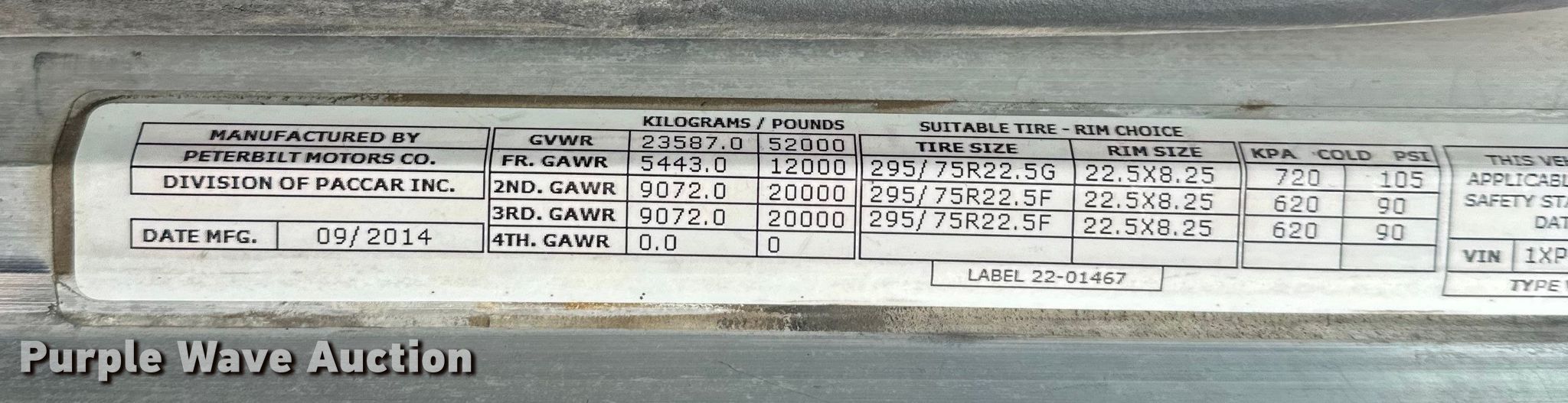 2015 Peterbilt 389 semi truck. Miles: 353,948 on odometer, Hours: 11,746 on meter, VIN: 1XPXD49X8FD283029. Engine Cummins ISX, Displacement: 15.0L, Cylinders: 6, Fuel type: Diesel, HP: 500. Transmission Eaton Fuller, Manual, Speed: 18. Chassis Axles: Tandem, Differential lock: Full, Suspension: Air, Brakes: Air, PTO, Wet kit, GVWR: 52,000 lbs FAWR: 12,000 lbs, IAWR: 20,000 lbs, RAWR: 20,000 lbs. Interior AC, Heat, Heated mirrors, Power windows, Power locks, Cruise control, Air ride cab, Auxiliary controls. Features Deck plate: Aluminum, Fifth wheel type: Air operated, Sliding, Fuel tank: Dual. Tires Size: 11R22.5. Minnesota title. Title has a lien that will be released following the close of the auction. Title distribution may be delayed up to 30 days from verification of funds. Arnt Construction Retirement - Open House: March 26th and April 7th. Hugo, MN 55038