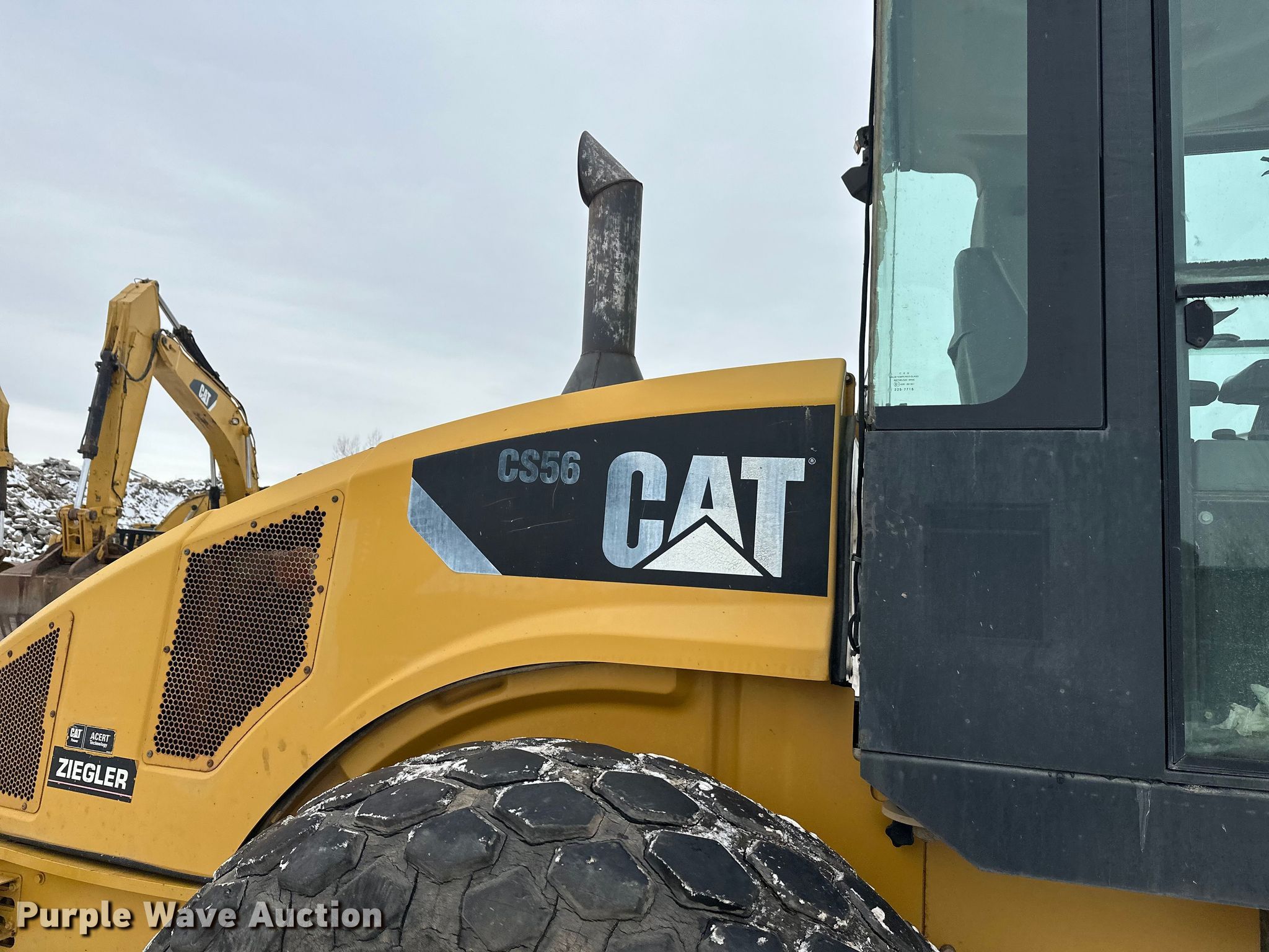 Purple Wave is selling a used Single Drum Roller Compactor in Minnesota. This item is a 2008 Caterpillar CS56 single drum vibratory roller with the following: Hours: 11,083 on meter, Serial: CAT0CS56HFCS00120