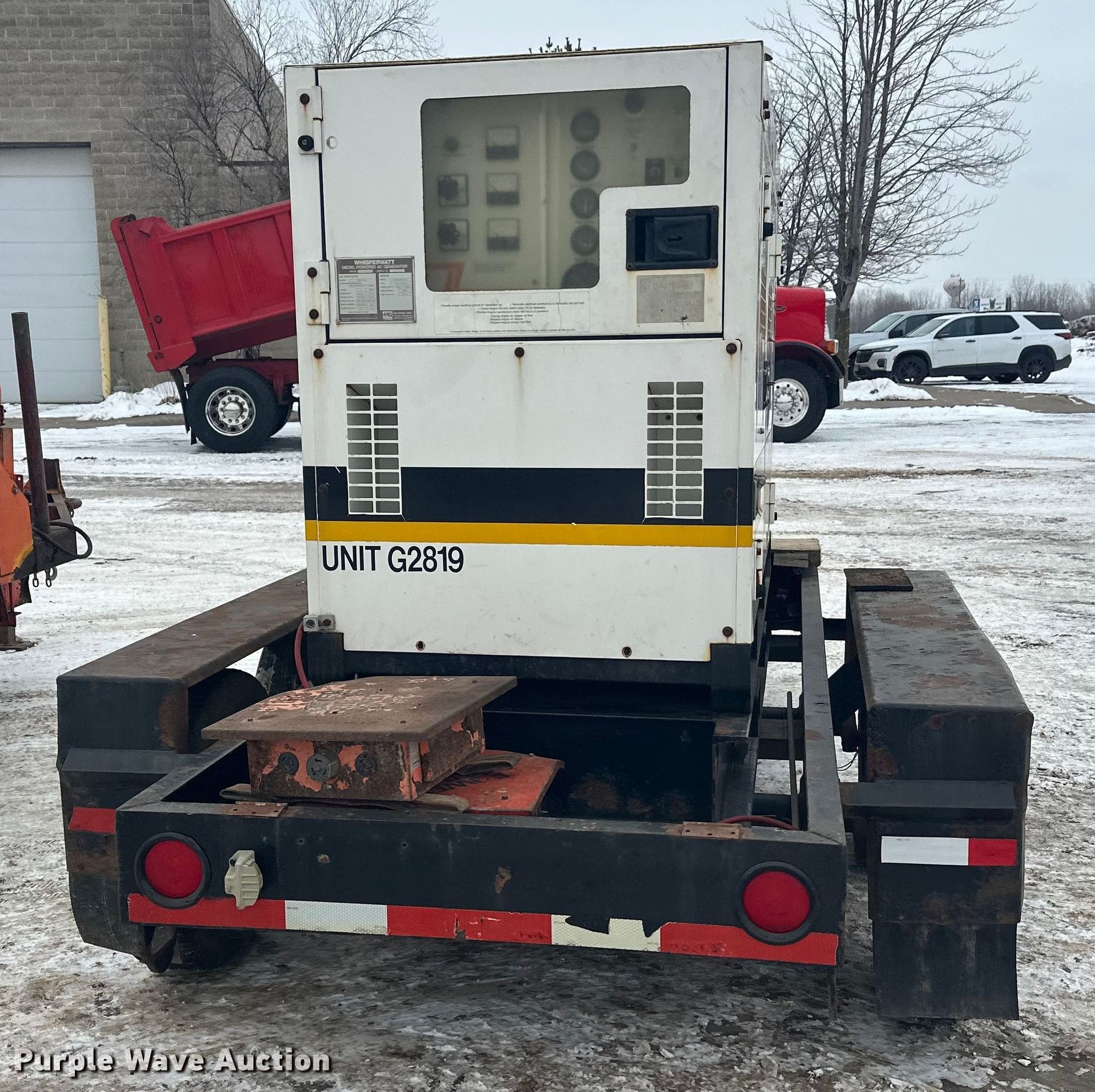 Multi quip DCA45SSIU3 generator. Hours: 11,597 on meter, Serial: 7203515. Engine Isuzu BB4JG1T, Cylinders: 4, Fuel type: Diesel. Features Generator Denyo DB-0501L2, Watts: 480, kVA: 46, kW: 26, Phase: Single, Three, Backup start, Fuel tank. Trailer 15' L x 75" W, Ball hitch size: 2 5/16", Suspension: Torsion, Brakes: Electric, Axles: Tandem, Tire size: 205/75R15, GVWR: 2,000 lbs. Transfer of ownership documentation will be a bill of sale. Arnt Construction Retirement - Open House: March 27th 8am-4pm and April 7th 8am-4pm. Hugo, MN 55038