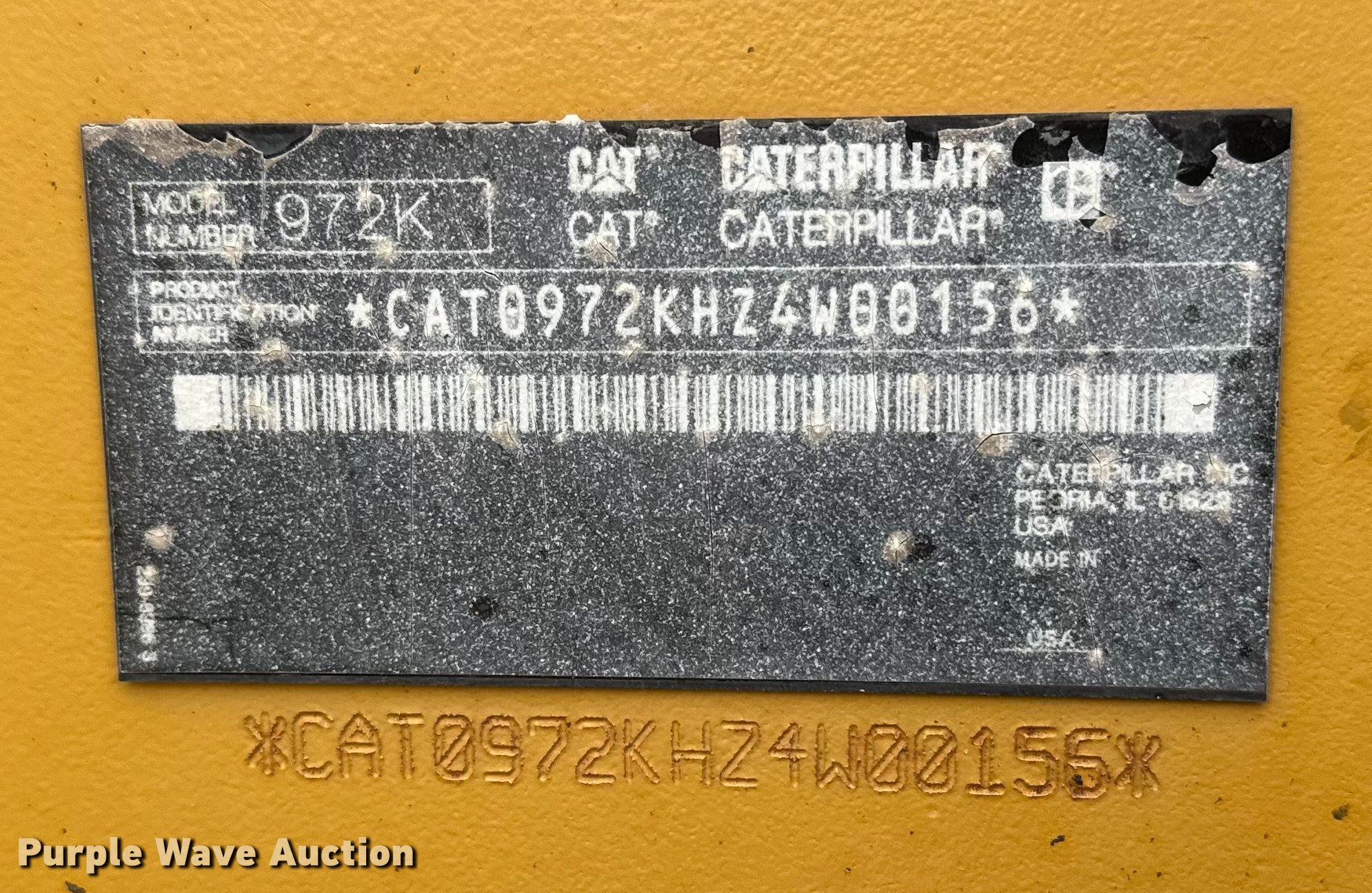 Purple Wave is selling a used Wheel Loader in Minnesota. This item is a 2011 Caterpillar 972K wheel loader with the following: Hours: 15,074 on meter, Serial: CAT0972KHK4W00156