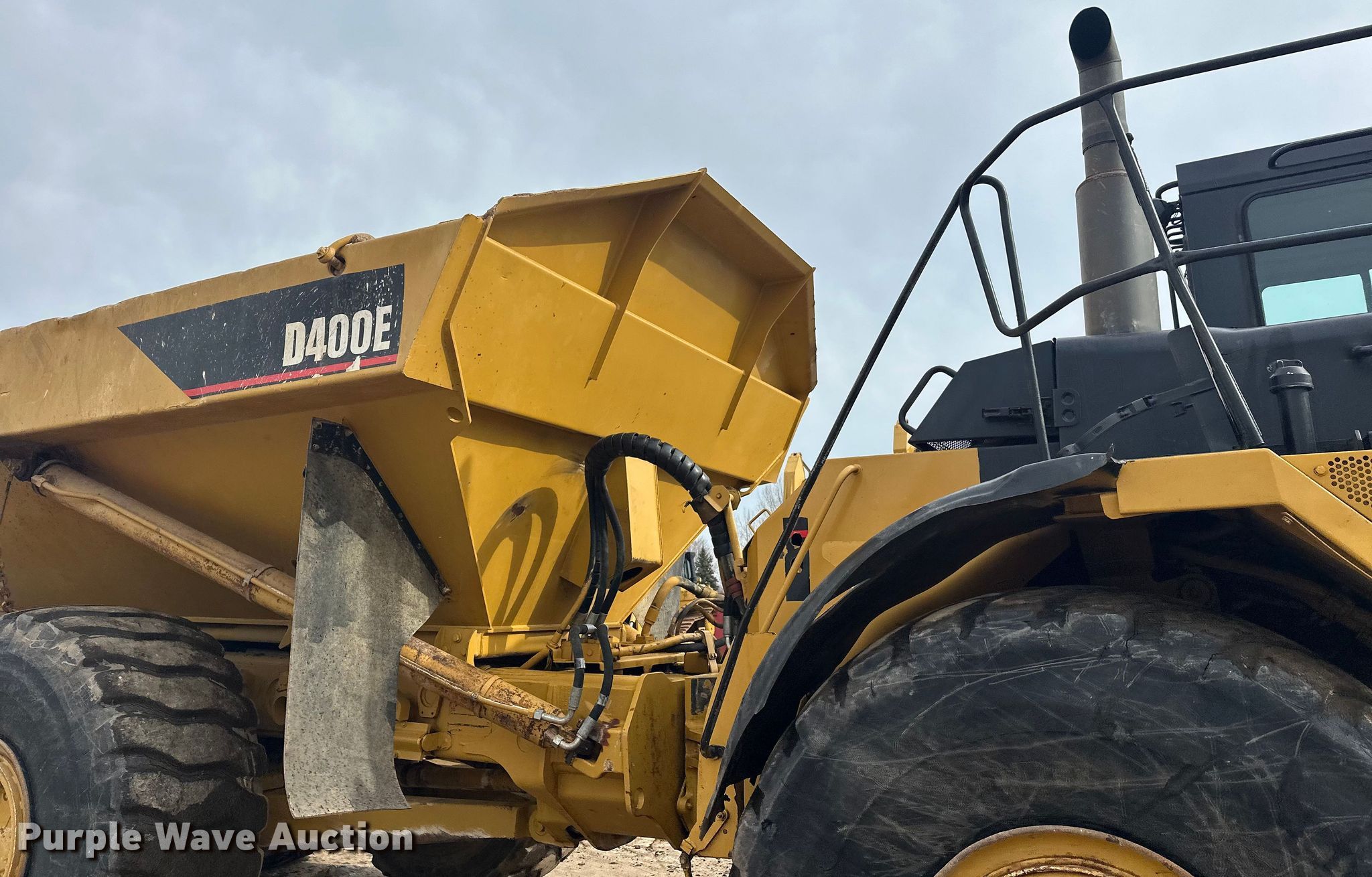 1998 Caterpillar D400 E Series II articulated haul truck. Hours: 30,768 on meter, Serial: 8PS00288. Engine Caterpillar 3406, Displacement: 14.6, Cylinders: 6, Fuel type: Diesel, HP: 405, kW: 302. Transmission Automatic. Chassis Six wheel drive. Interior AC, Heat. Tires Size: 29.5R25. Arnt Construction Retirement - Open House: March 26th and April 7th. Hugo, MN 55038