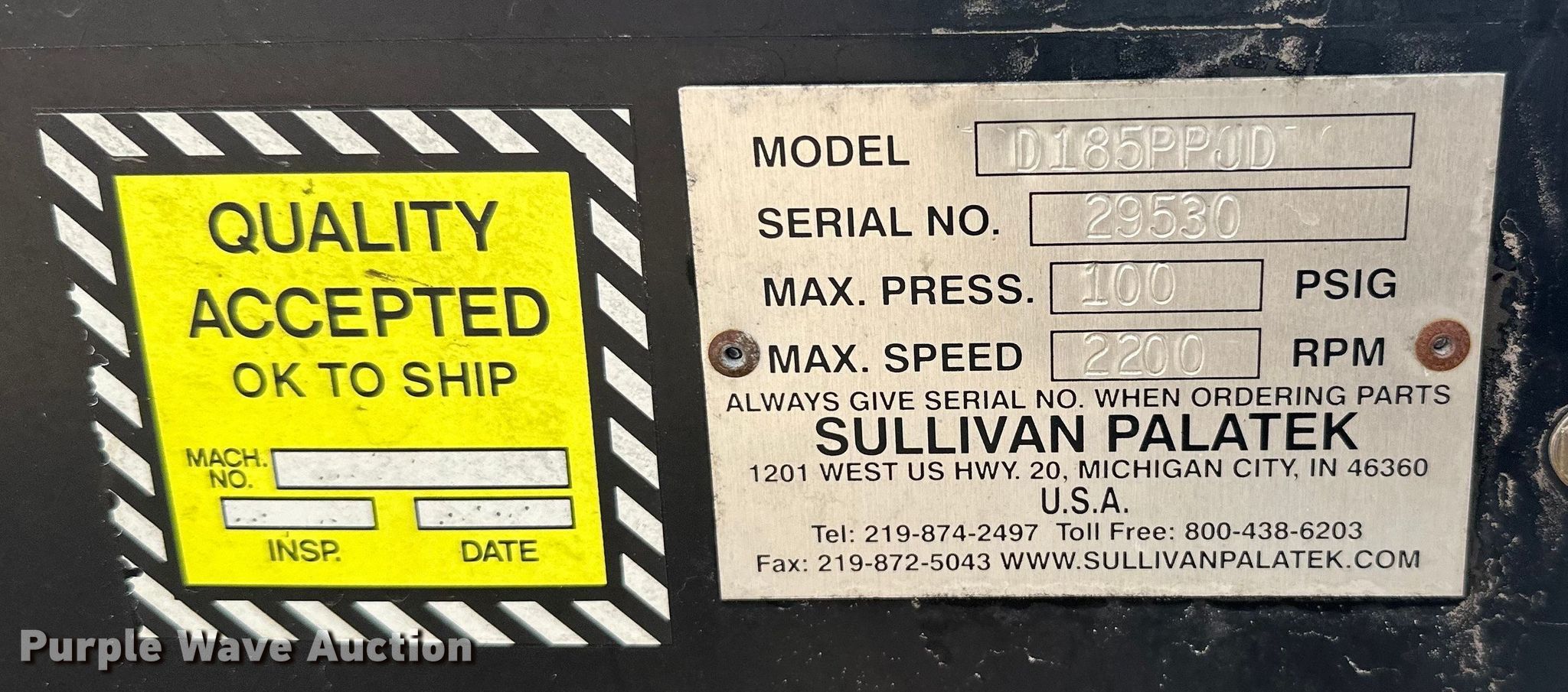 - Sullivan palatek D185 air compressor