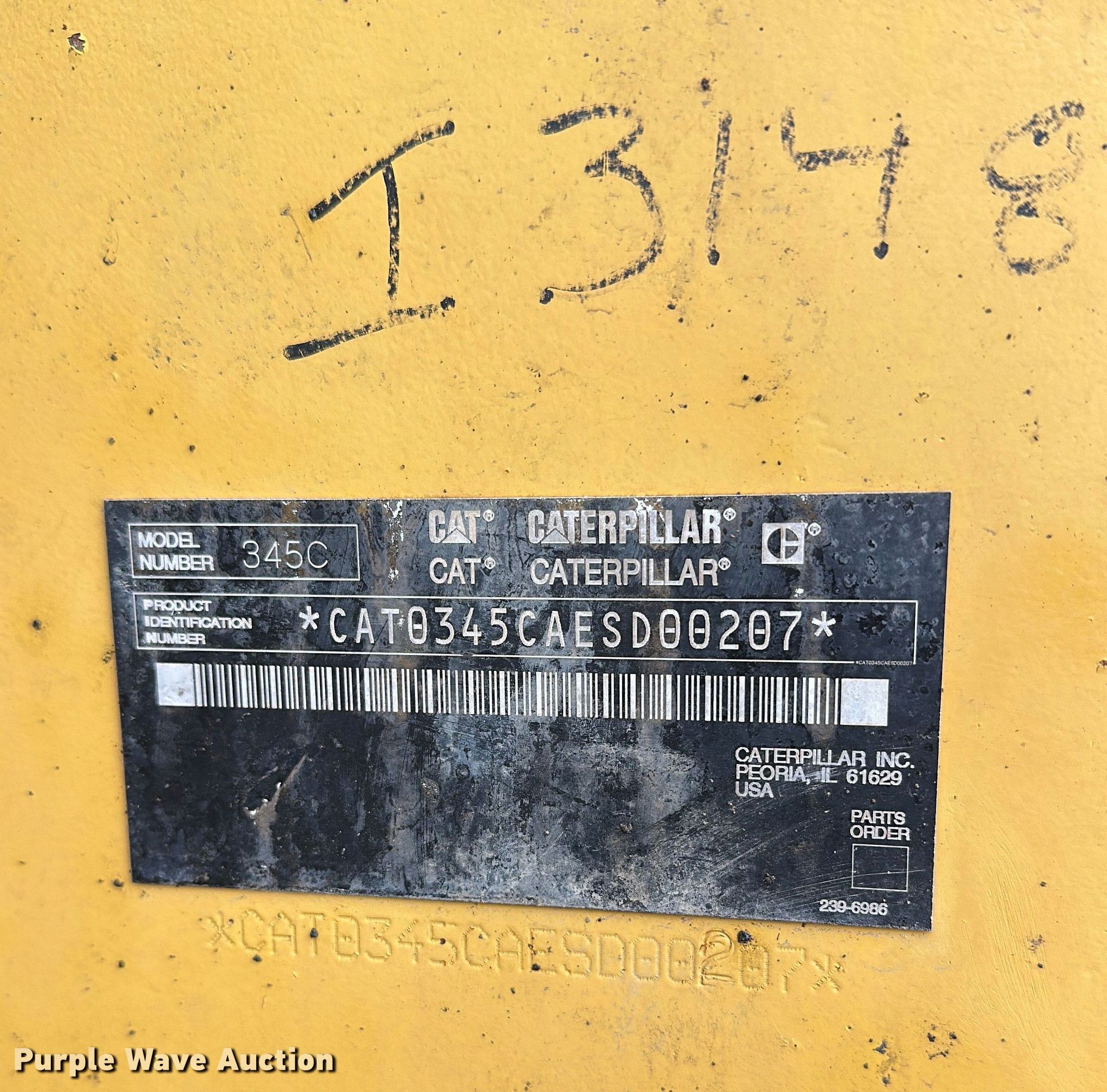 Purple Wave is selling a used Hydraulic Excavator in Minnesota. This item is a 2007 Caterpillar 345C L excavator with the following: Hours: 21,438 on meter, Serial: CAT0345CAESD00207