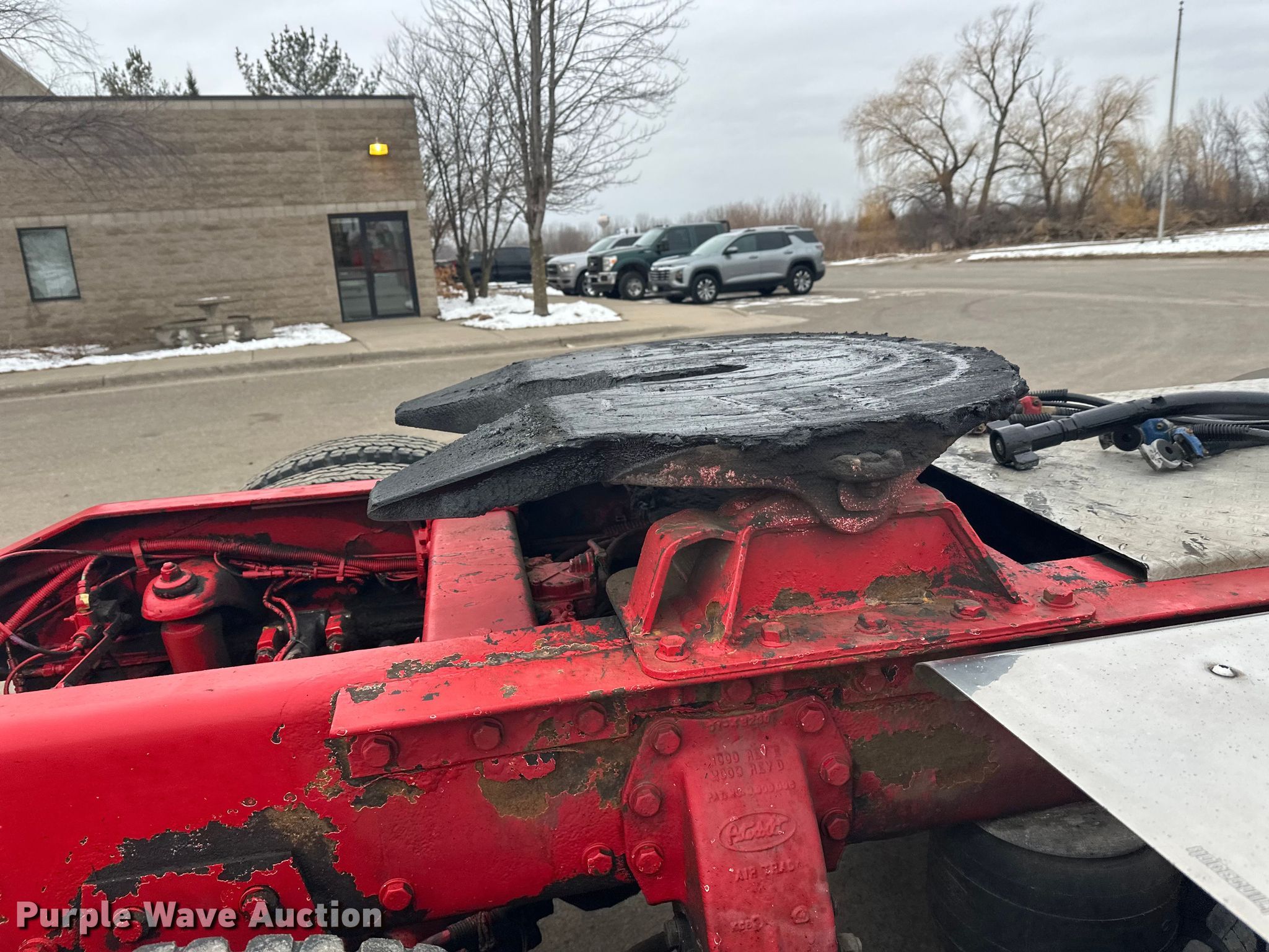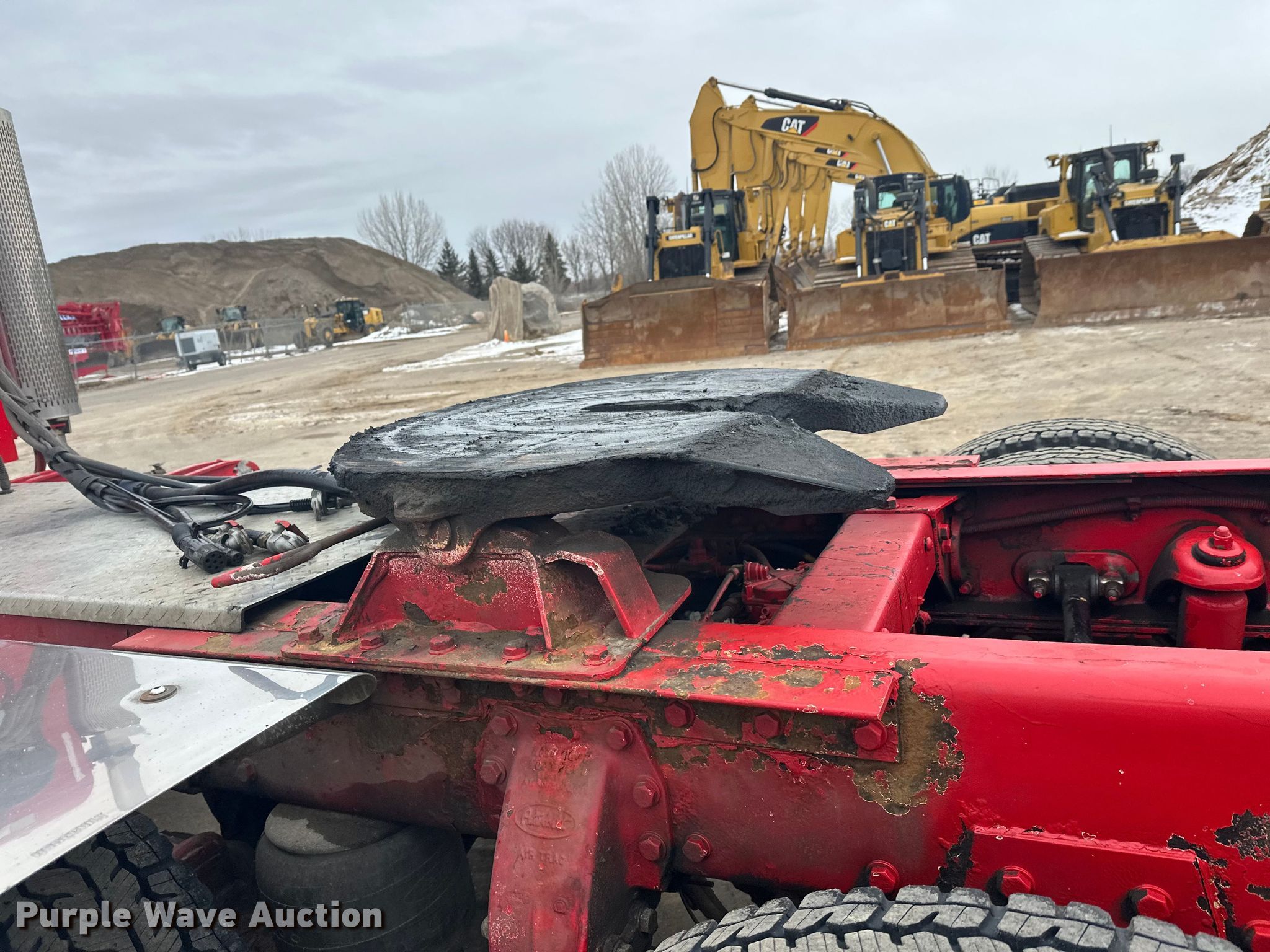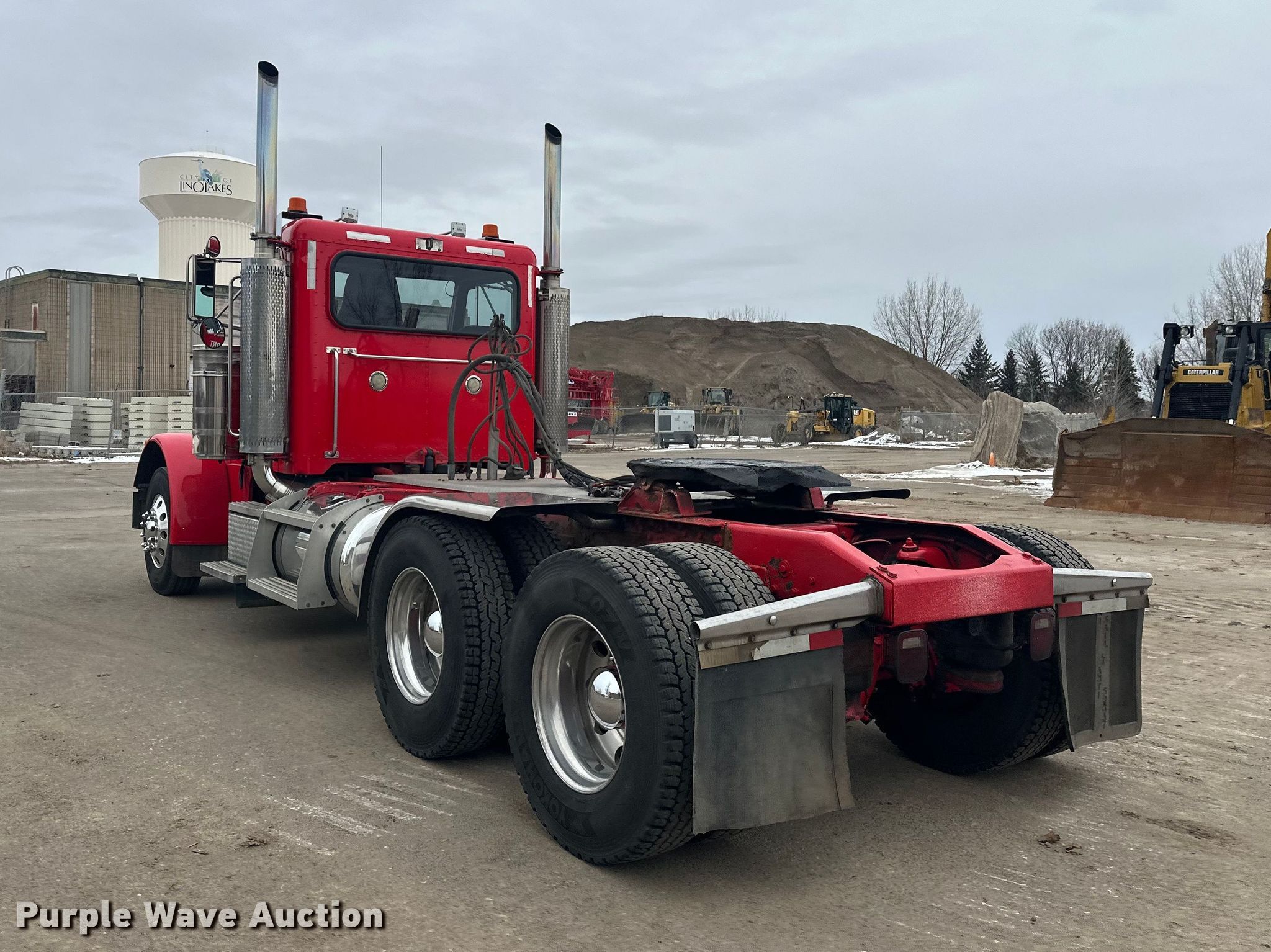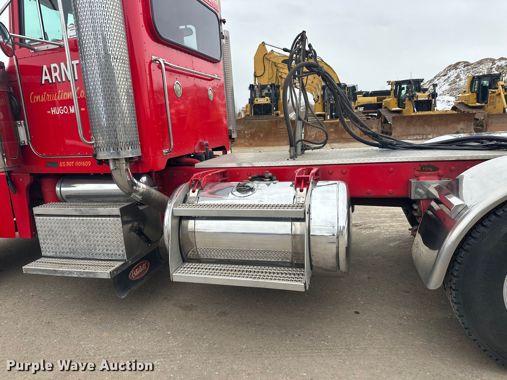 2003 Peterbilt 379 semi truck. Miles: 123,866 on odometer, Hours: 562 on meter, VIN: 1XP5DU9X53D588099. Engine Caterpillar C12, Cylinders: 6, Fuel type: Diesel, Engine brake. Transmission Eaton Fuller, Manual, Speed: 10. Chassis Axles: Tandem, Differential lock: Full, Suspension: Air, Brakes: Air, PTO, Wet kit, GVWR: 52,000 lbs FAWR: 12,000 lbs, IAWR: 20,000 lbs, RAWR: 20,000 lbs. Interior AC, Heat, Heated mirrors, Cruise control, Air ride cab. Features Deck plate: Aluminum, Fifth wheel type: Air operated, Sliding, Fuel tank: Dual. Tires Size: 11R22.5. Notes Windshield chipped or cracked, Non-operational passenger door. Minnesota title. Title has a lien that will be released following the close of the auction. Title distribution may be delayed up to 30 days from verification of funds. Arnt Construction Retirement - Open House: March 26th and April 7th. Hugo, MN 55038