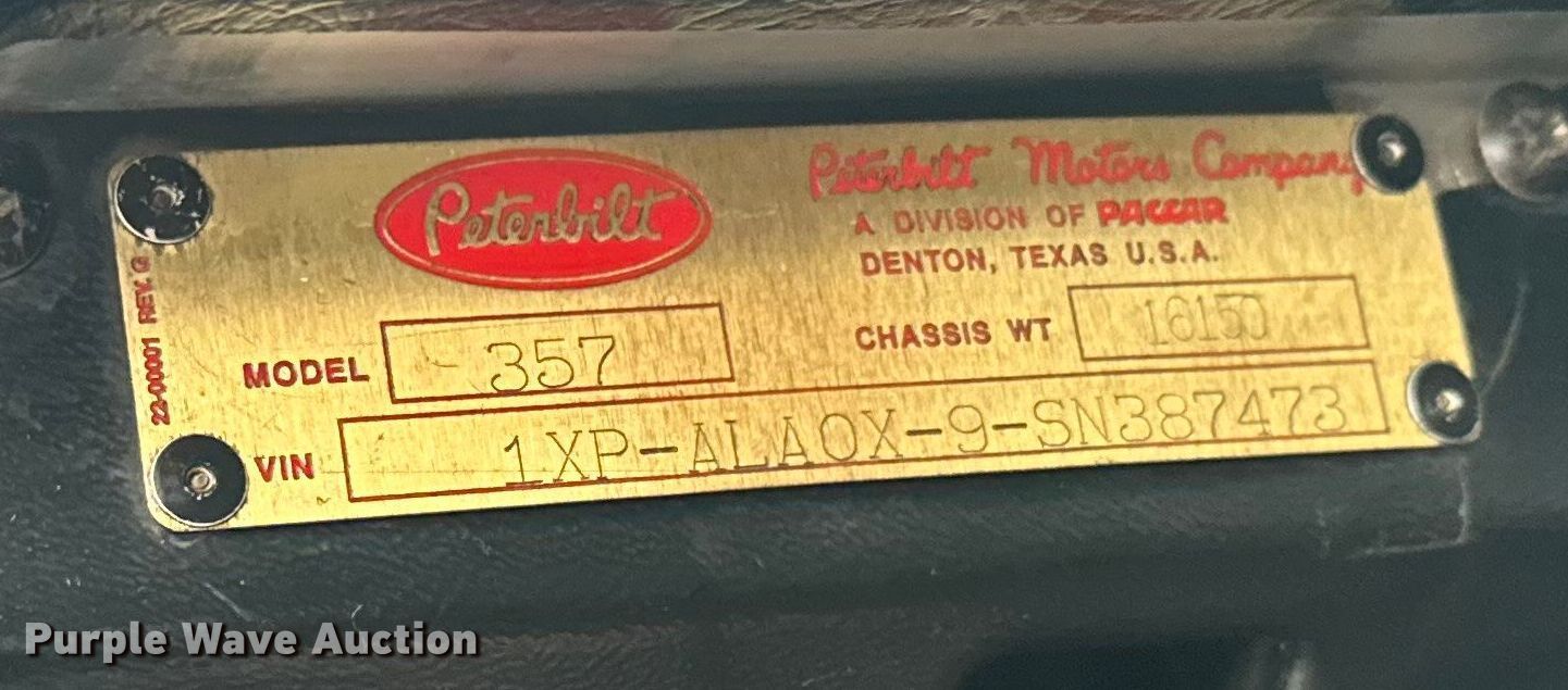 1995 Peterbilt 357 dump truck. Miles: 1,251,744 on odometer, Hours: 6,478 on meter, VIN: 1XPALA0X9SN387473. Engine Caterpillar 3306, Displacement: 10.5L, Cylinders: 6, Fuel type: Diesel. Transmission Eaton Fuller, Manual, Speed: 10. Chassis Axles: Triple, Pusher axle Steerable, Differential lock: Inter-axle, Suspension: Air, Brakes: Air, PTO, Front mount PTO, GVWR: 60,400 lbs FAWR: 18,000 lbs, IAWR: 21,200 lbs, RAWR: 21,200 lbs. Interior AC, Heat, Heated mirrors, Cruise control. Features Bed Dump bed, Length: 16' 6", Width: 8' 2", Bed type: Steel, Ram: Single, End gate: Air operated. Tires Front: 385/65R22.5, Rear: 11R22.5, Lift axle: 255/70R22.5. Minnesota title. Title has a lien that will be released following the close of the auction. Title distribution may be delayed up to 30 days from verification of funds. Arnt Construction Retirement - Open House: March 26th and April 7th. Hugo, MN 55038