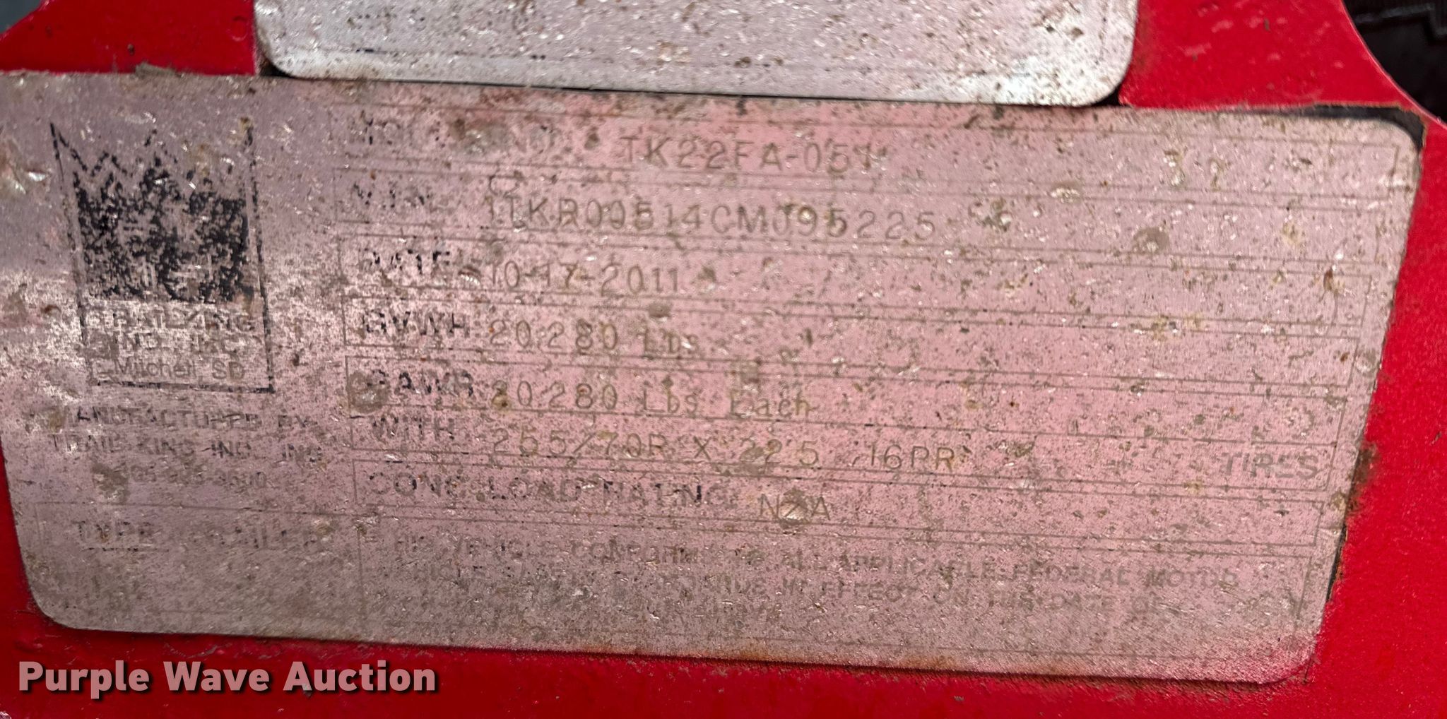 Purple Wave is selling a used Equip. Trailer in Minnesota. This item is a 2012 Trail King Industries TK110HDGH533 lowboy equipment trailer with the following: VIN: 1TKJ05334CM095224