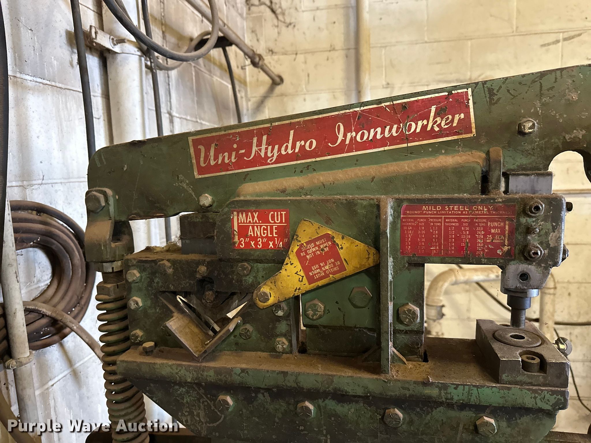 Purple Wave is selling a used Tools in Minnesota. This item is a Uni-Hydro U1P914 punch machine with the following: Sheer, Punch capacity: 25 tons, Phase: Single, Volts: 240