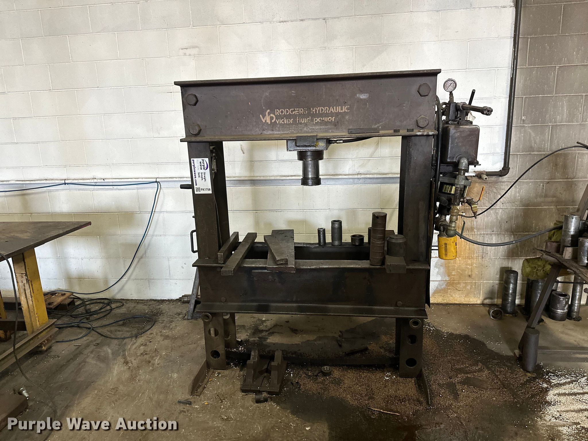 Purple Wave is selling a used Tools in Minnesota. This item is a Rogers hydraulic press with the following: Dies included
