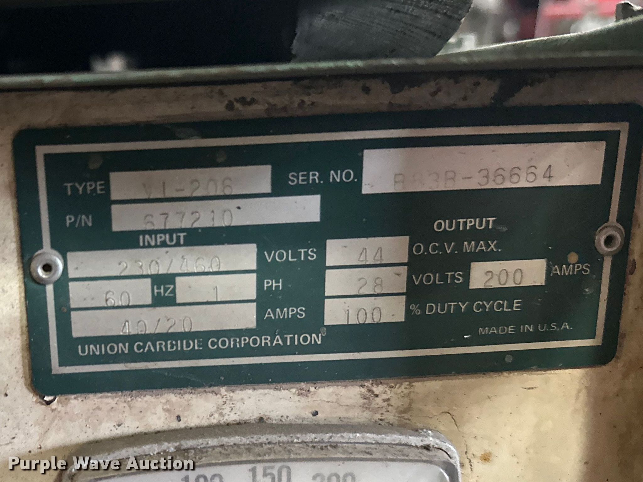 Purple Wave is selling a used Welder (Manual) in Minnesota. This item is a Linde VI-206 welder with the following: VIN: R83B-36664