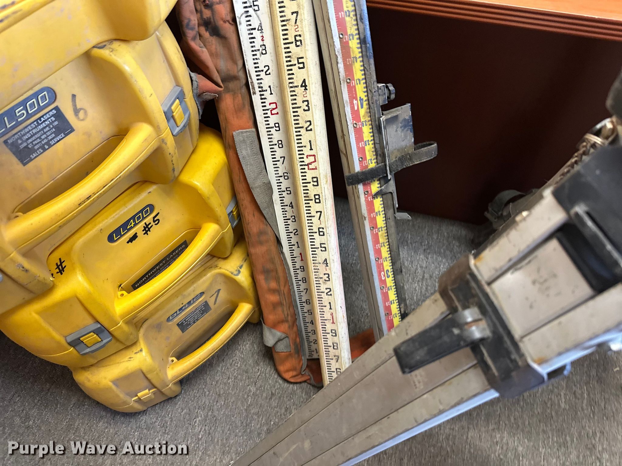 Surveying equipment. (4) Spectra Precision laser levels (2) LL500, GL412, LL300S, (3) tripods, (4) story poles. Arnt Construction Retirement - Open Inspection March 26th and April 7th. Hugo, MN 55038