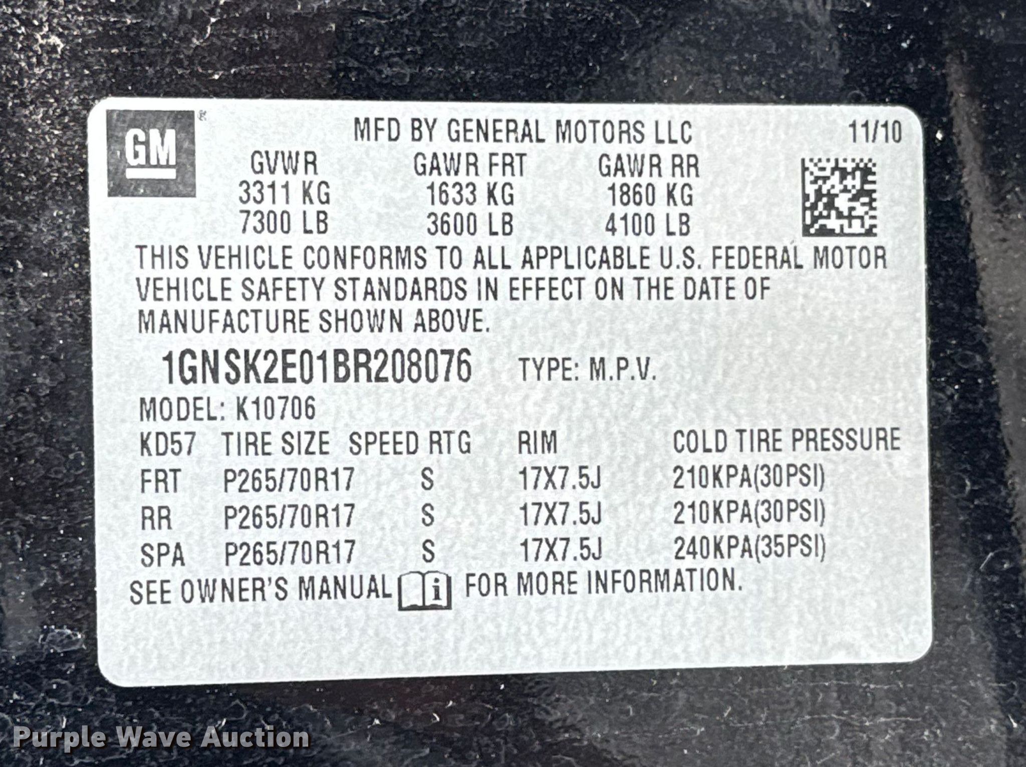 Purple Wave is selling a used Passenger Vehicle in Oklahoma. This item is a 2011 Chevrolet Tahoe Police SUV with the following: Miles: 93,424 on odometer, VIN: 1GNSK2E01BR208076, Unit #: 2114371
