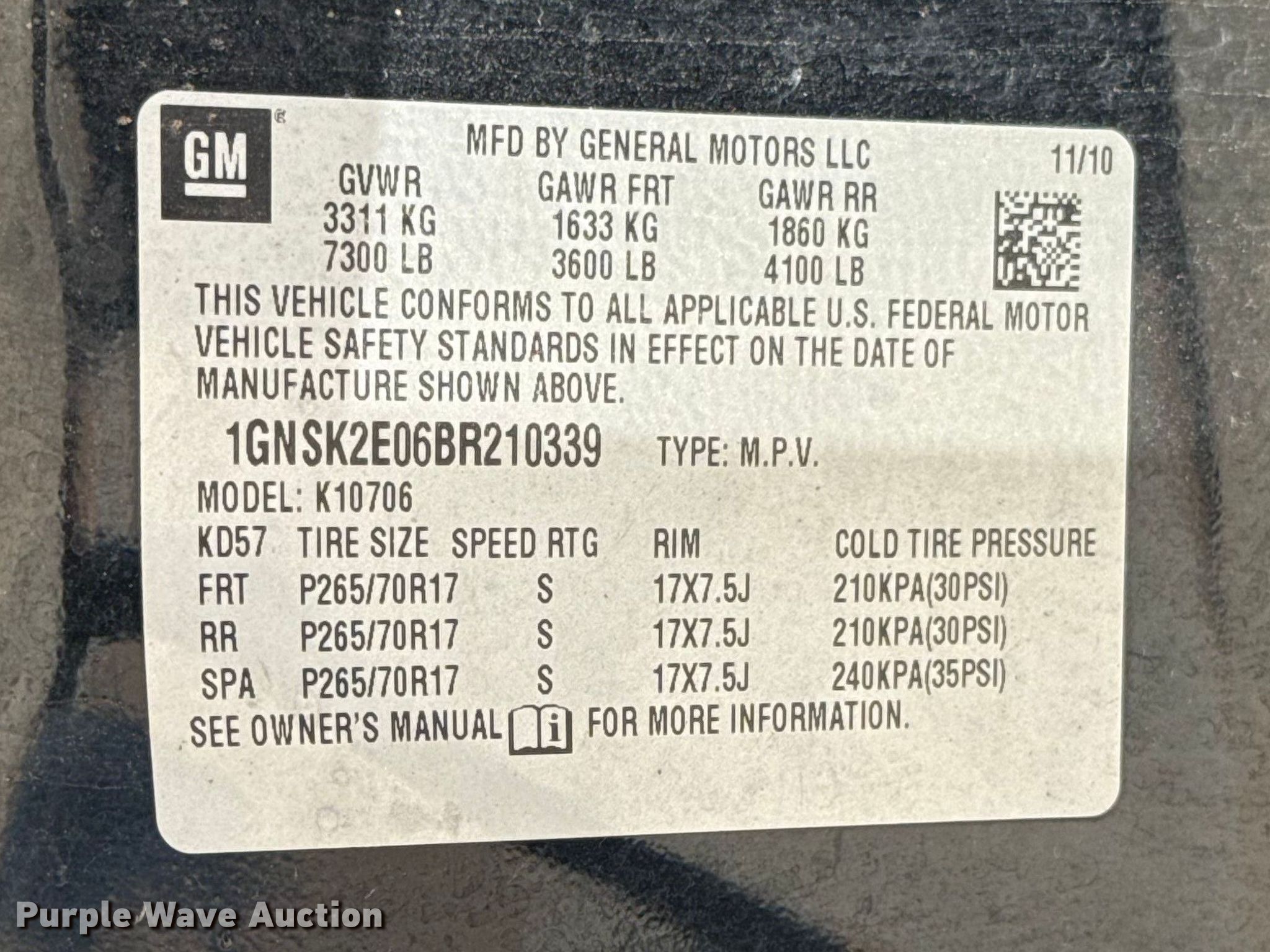 - VIN: 1GNSK2E06BR210339