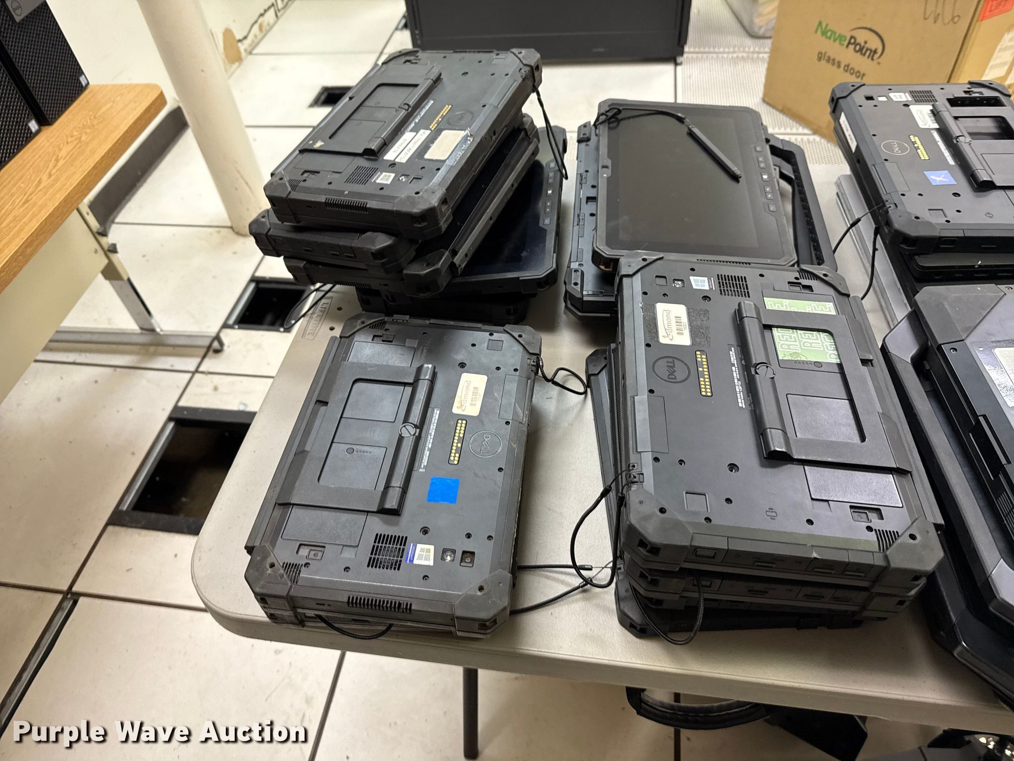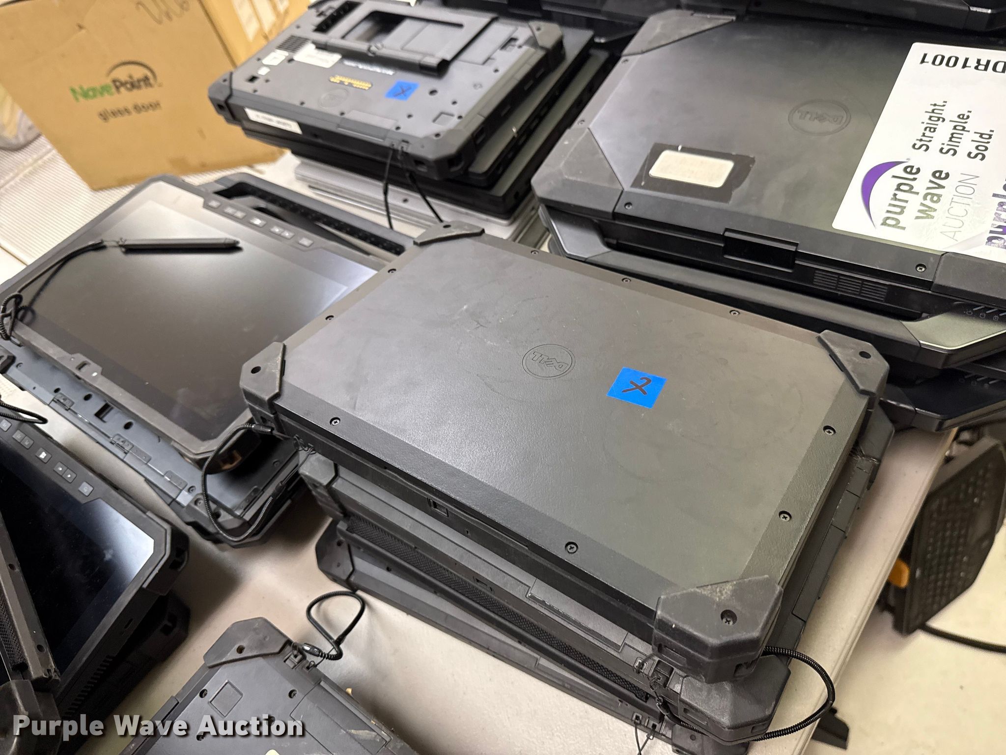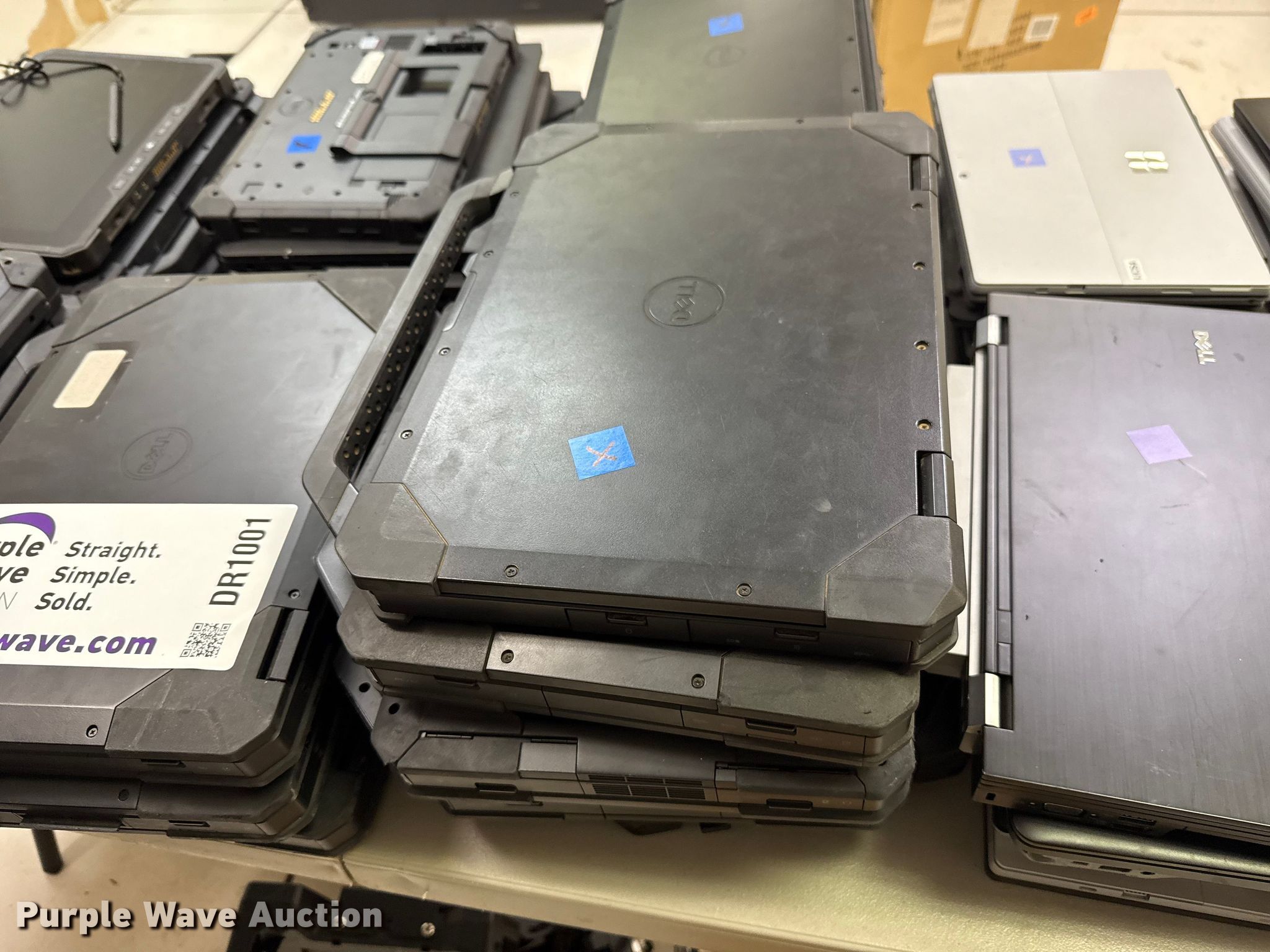 Purple Wave is selling a used Computers in Oklahoma. This item is a Computers with the following: (40) Dell laptops, (19) Microsoft Surface Pro laptops, (4) Havis vehicle computer mounts