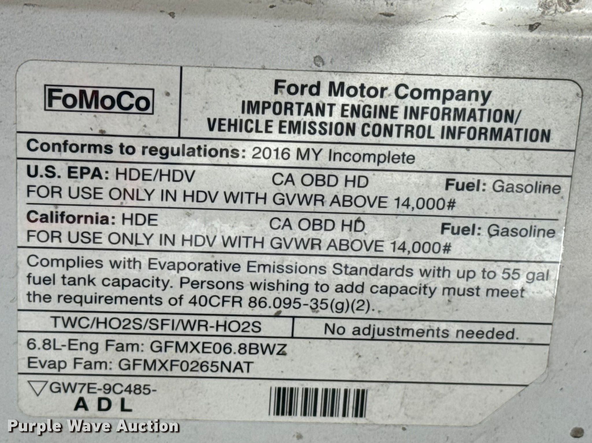 2016 Ford E450 shuttle bus. Miles: 208,043 on odometer, VIN: 1FDXE4FS2GDC03308, Unit #: 1502. Engine Displacement: 6.8L, Cylinders: 10, Fuel type: Gas. Transmission Automatic. Chassis Axles: Single, Suspension: Spring, Brakes: Hydraulic, GVWR: 14,500 lbs, Wheelbase: 158". Interior AC, Heat, Heated mirrors, Cruise control, Backup camera, Passengers: 18, Wheelchair lift. Tires Size: LT225/75R16. Notes Dash warning indicator: Check engine, Jump start required during on-site data collection. Oklahoma title. Seller is a government entity who will be assigning and distributing the title. Please contact the seller for distribution questions. City of Edmond. Edmond, OK 73034