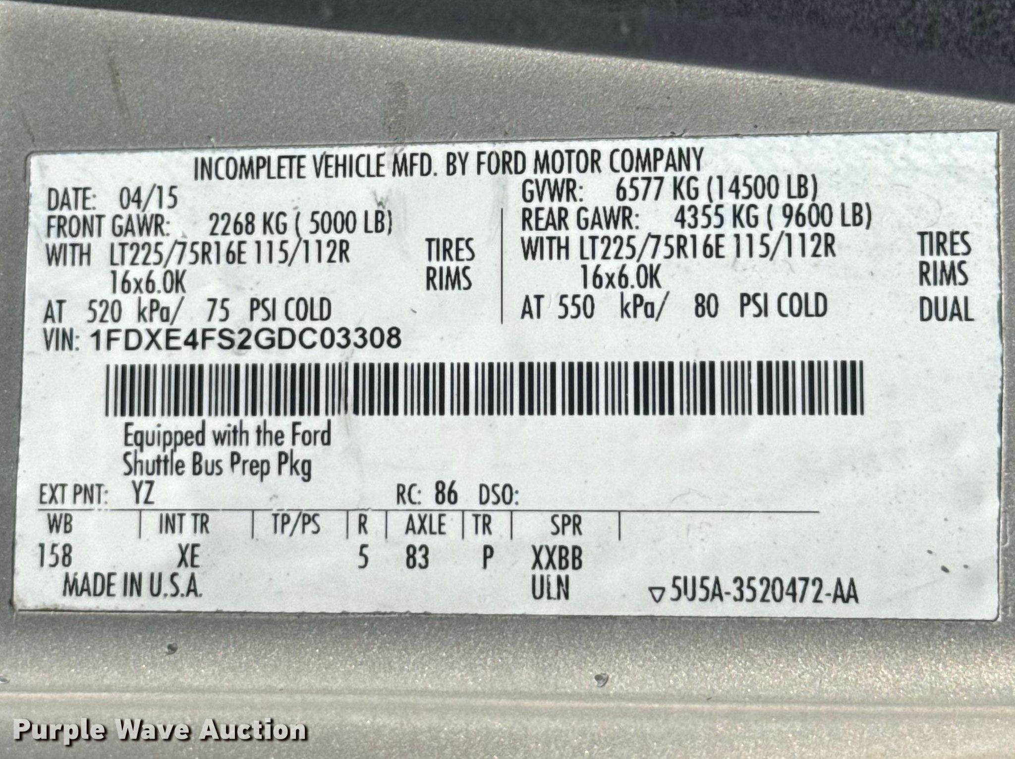 - VIN: 1FDXE4FS2GDC03308
